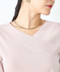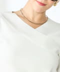 《手洗い可能》カシュクール風5分袖プルオーバーニット