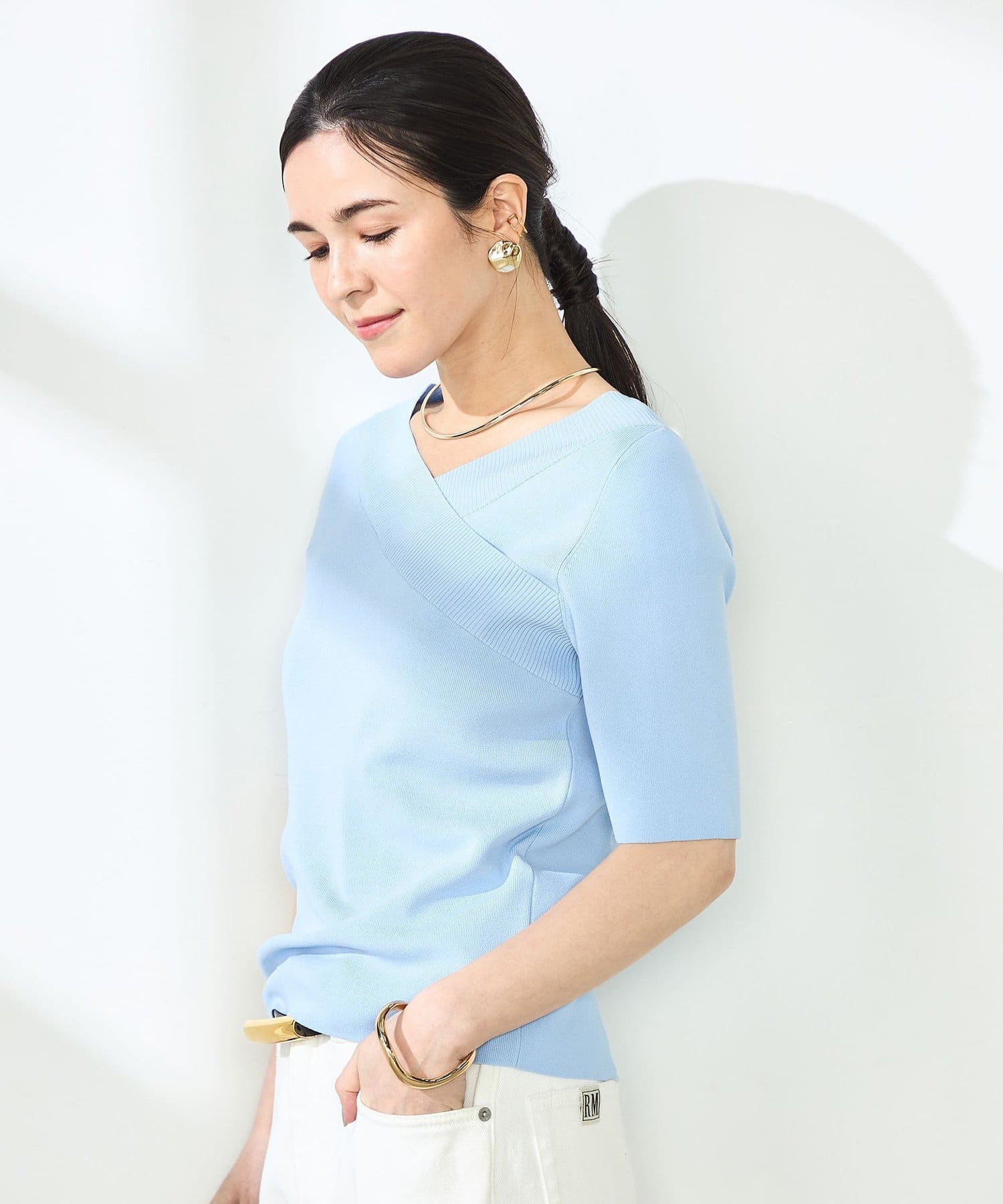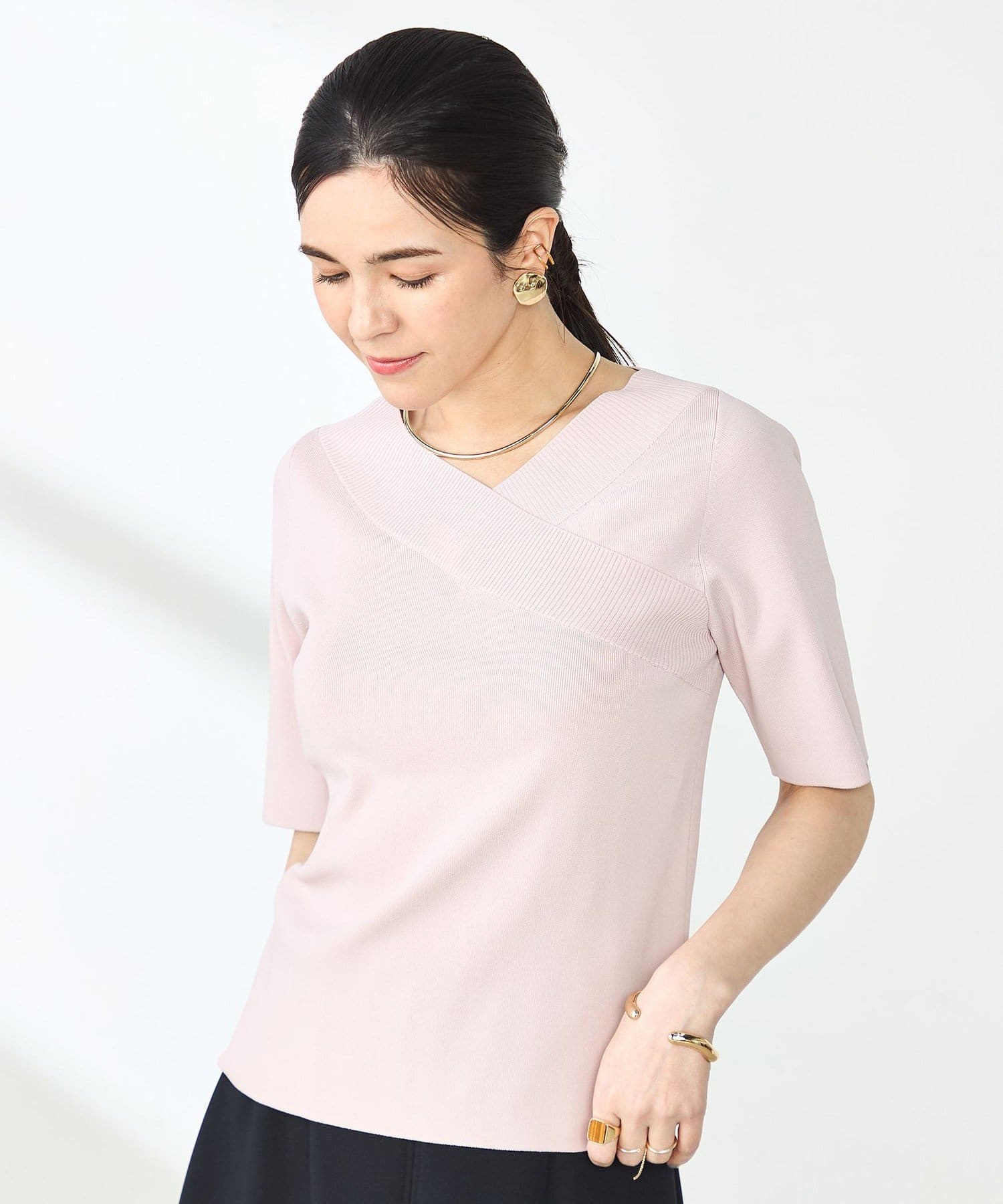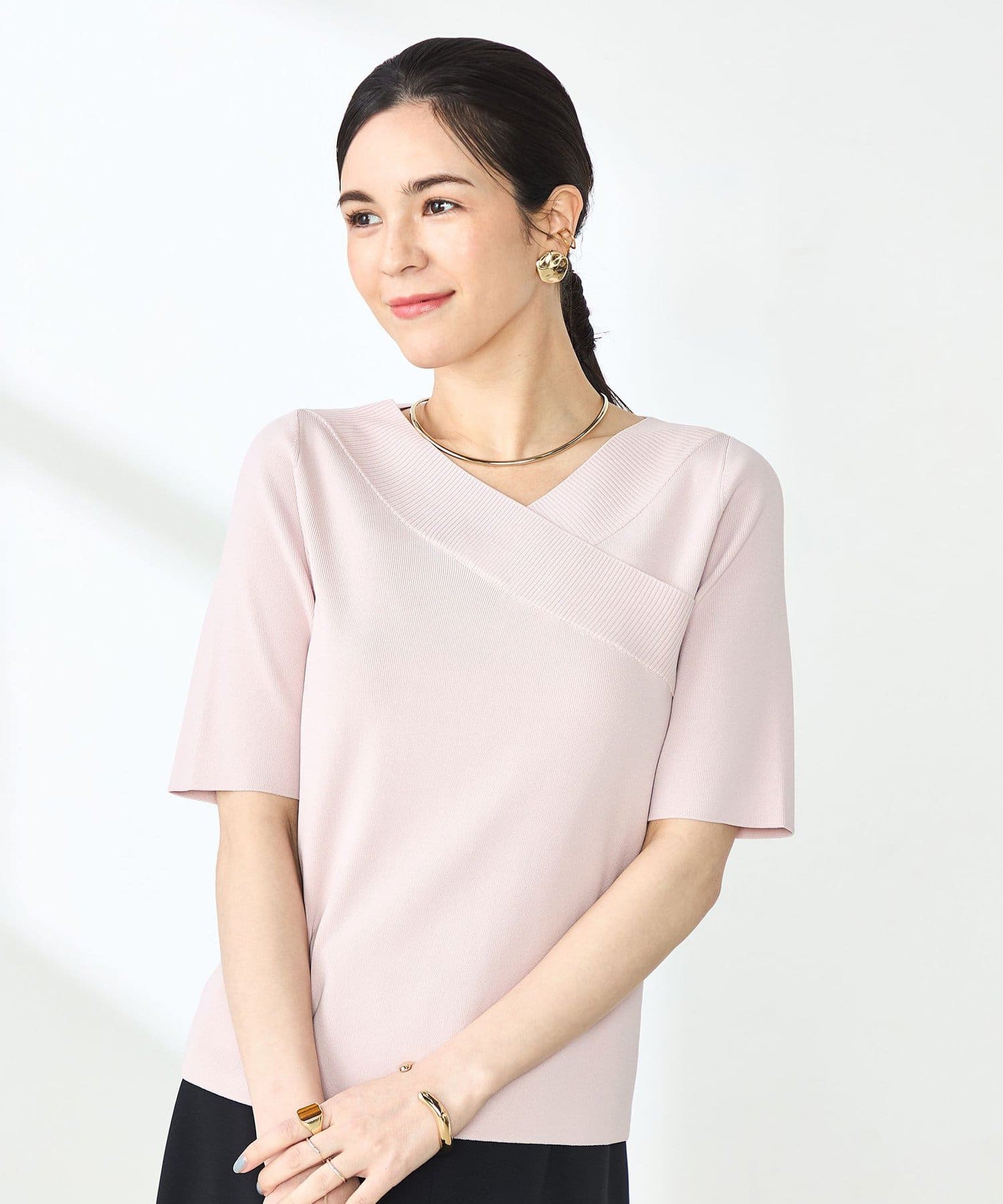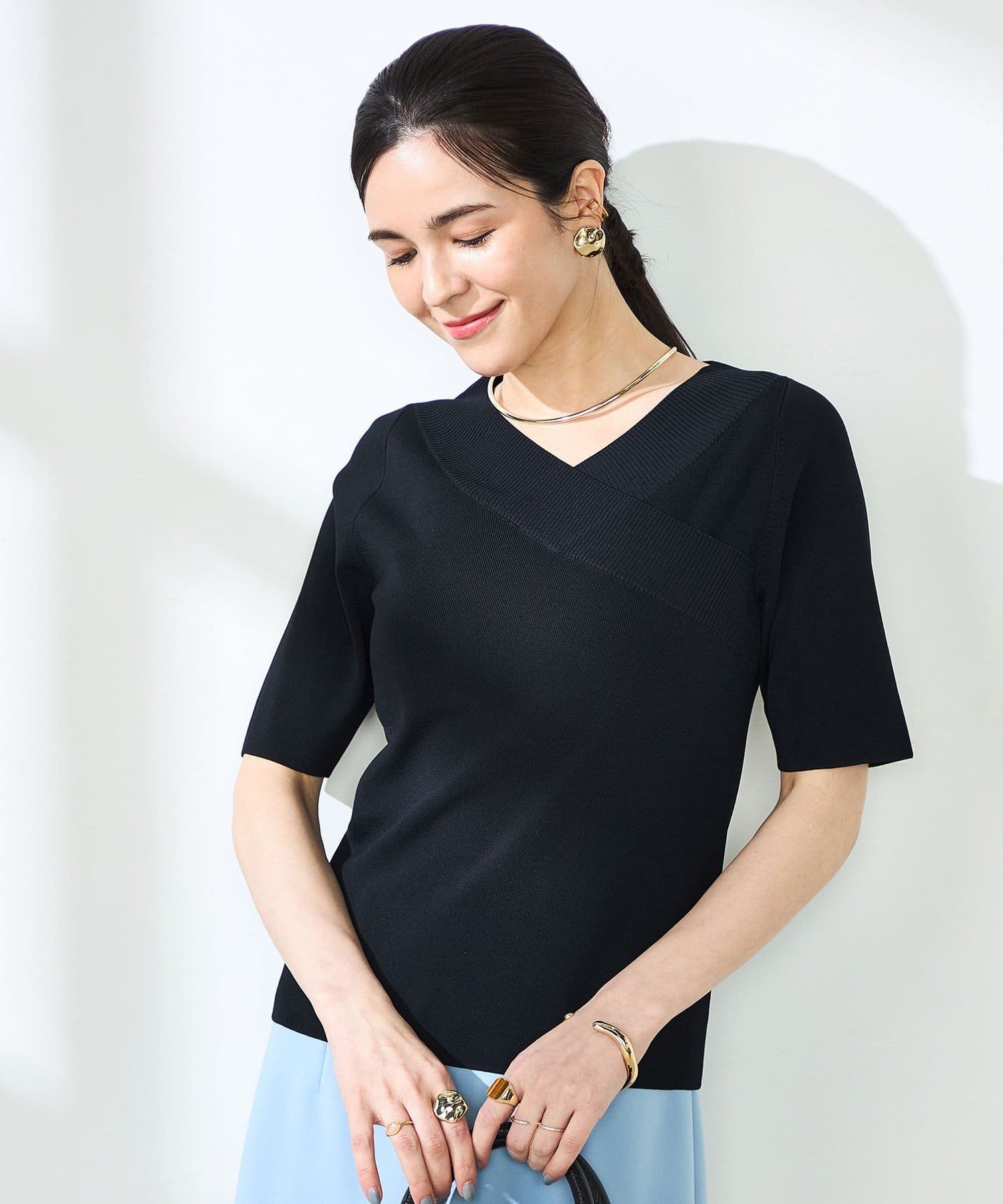 TOP > NOLLEY'S > レディース > トップス > ニット/セーター > 《手洗い可能》カシュクール風5分袖プルオーバーニット
