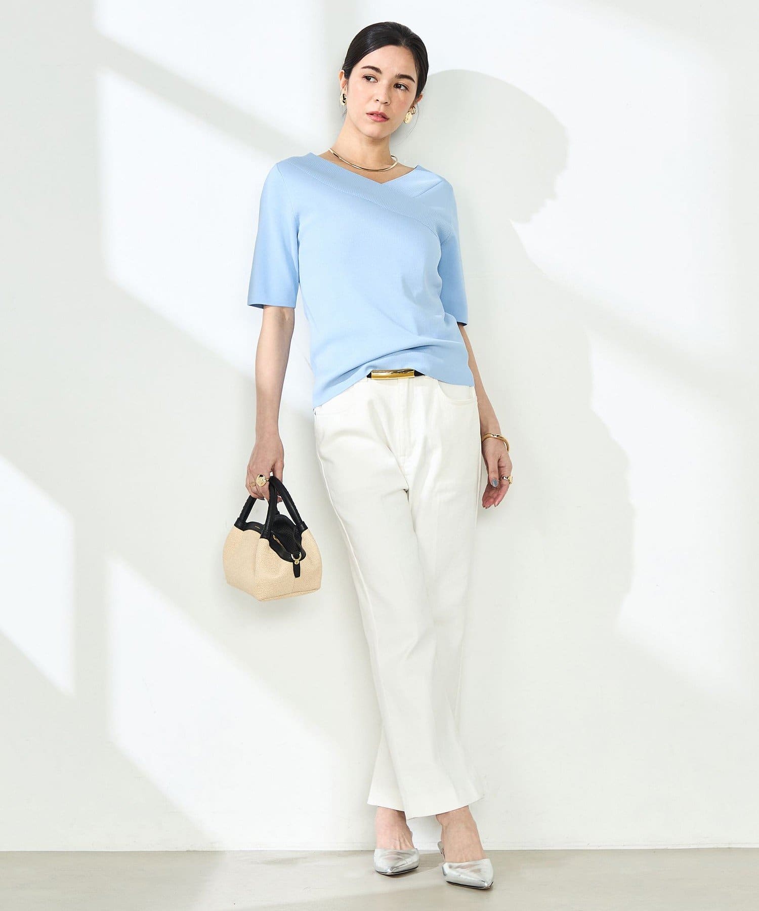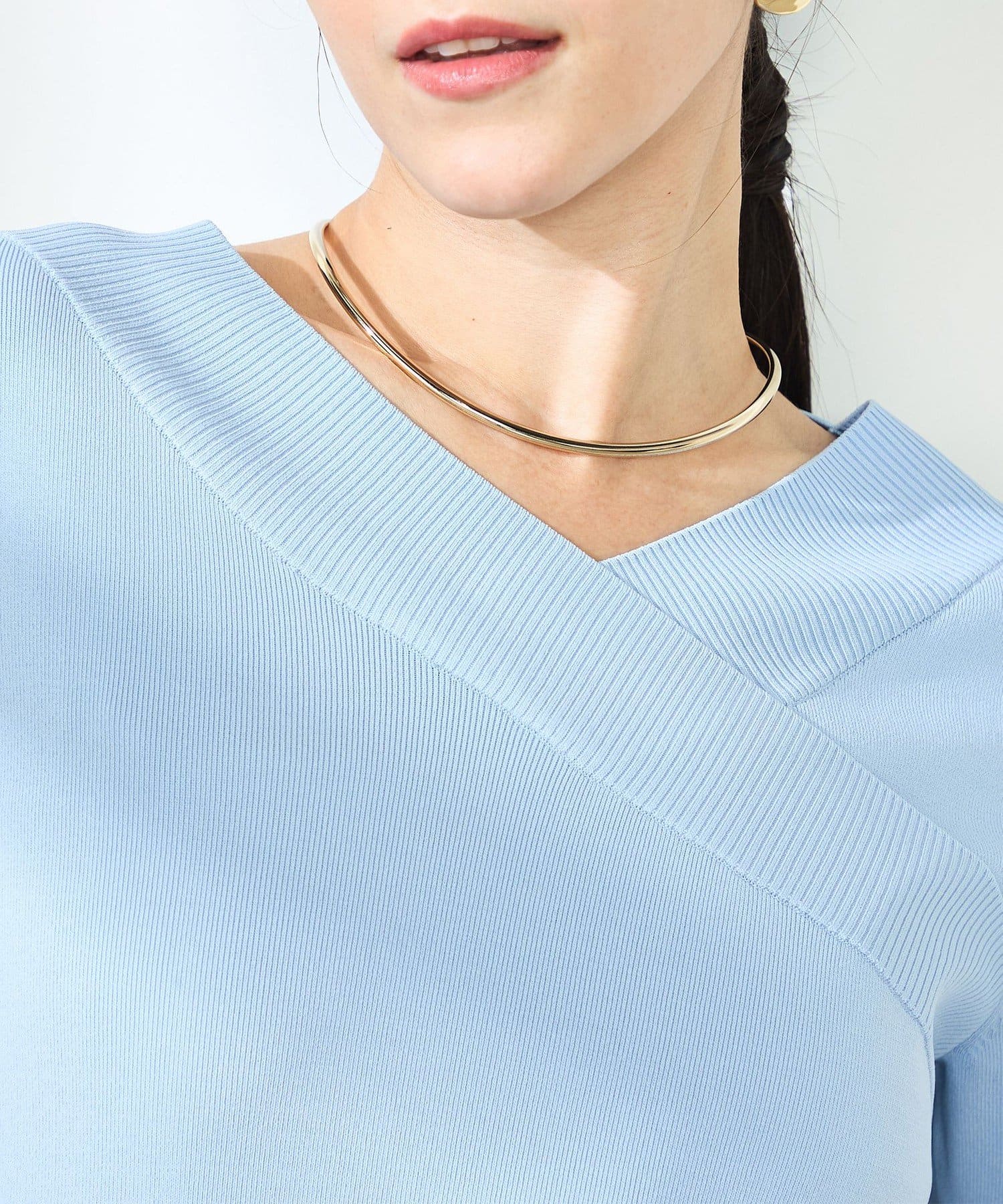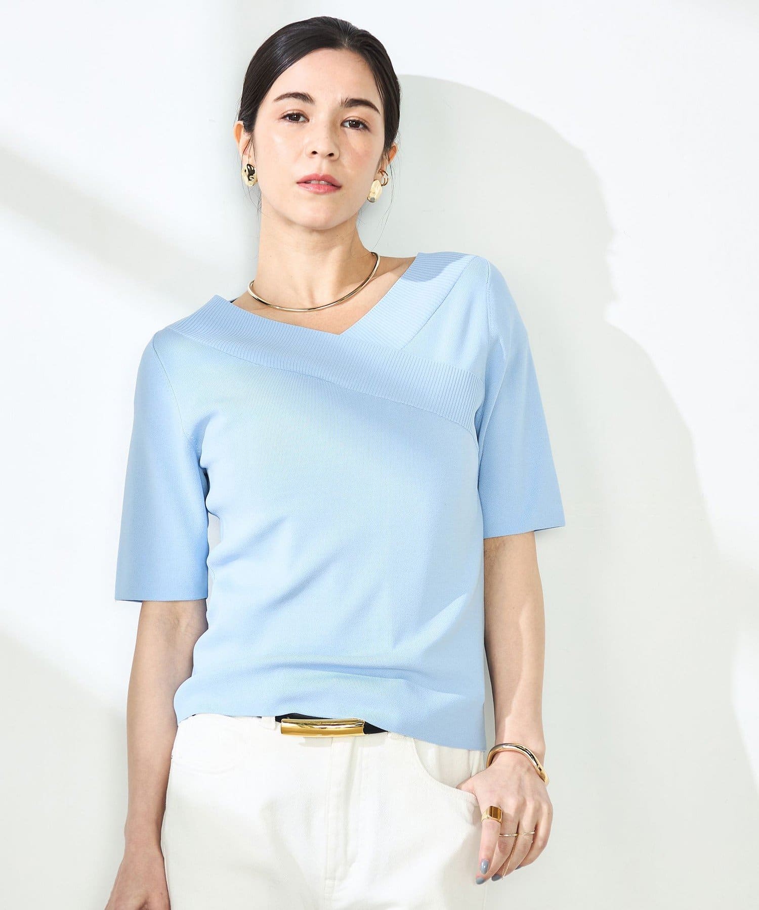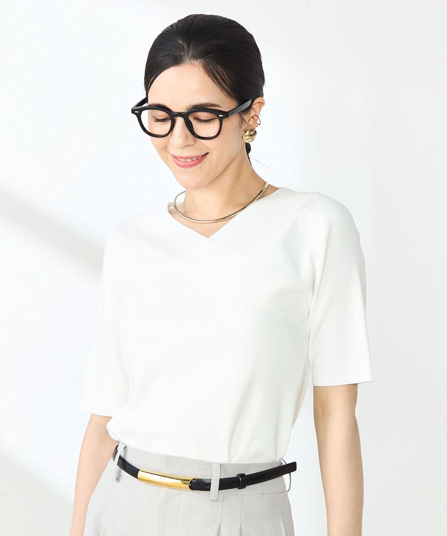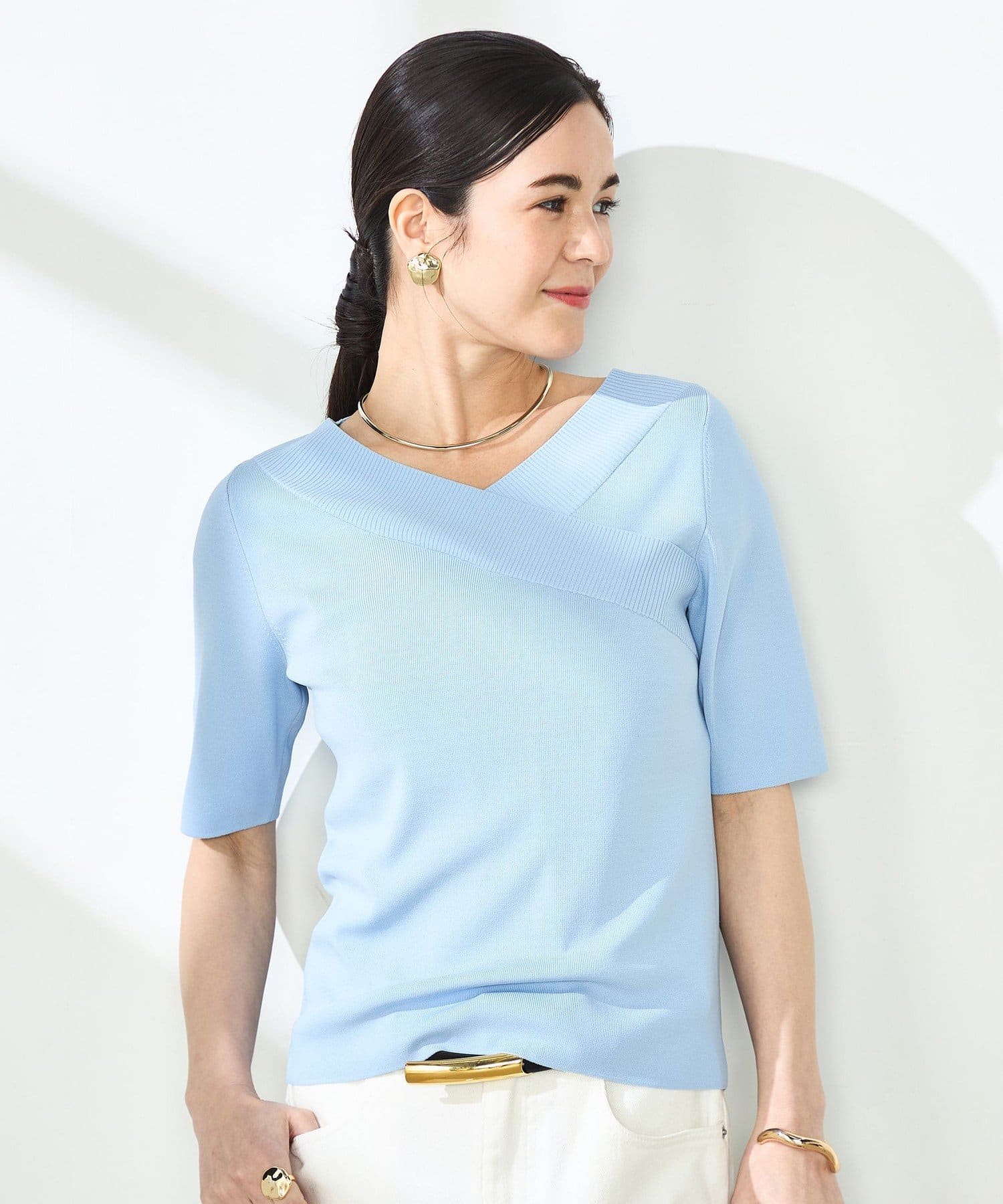 TOP > NOLLEY'S > レディース > トップス > ニット/セーター > 《手洗い可能》カシュクール風5分袖プルオーバーニット