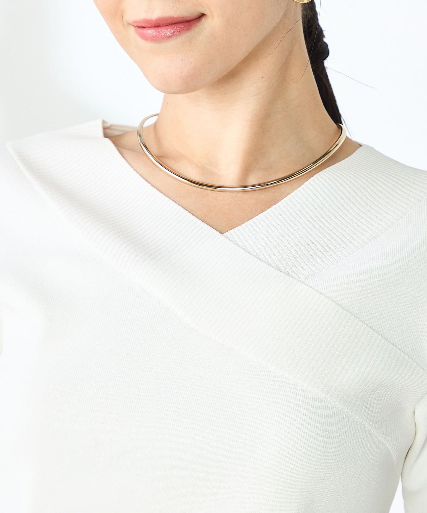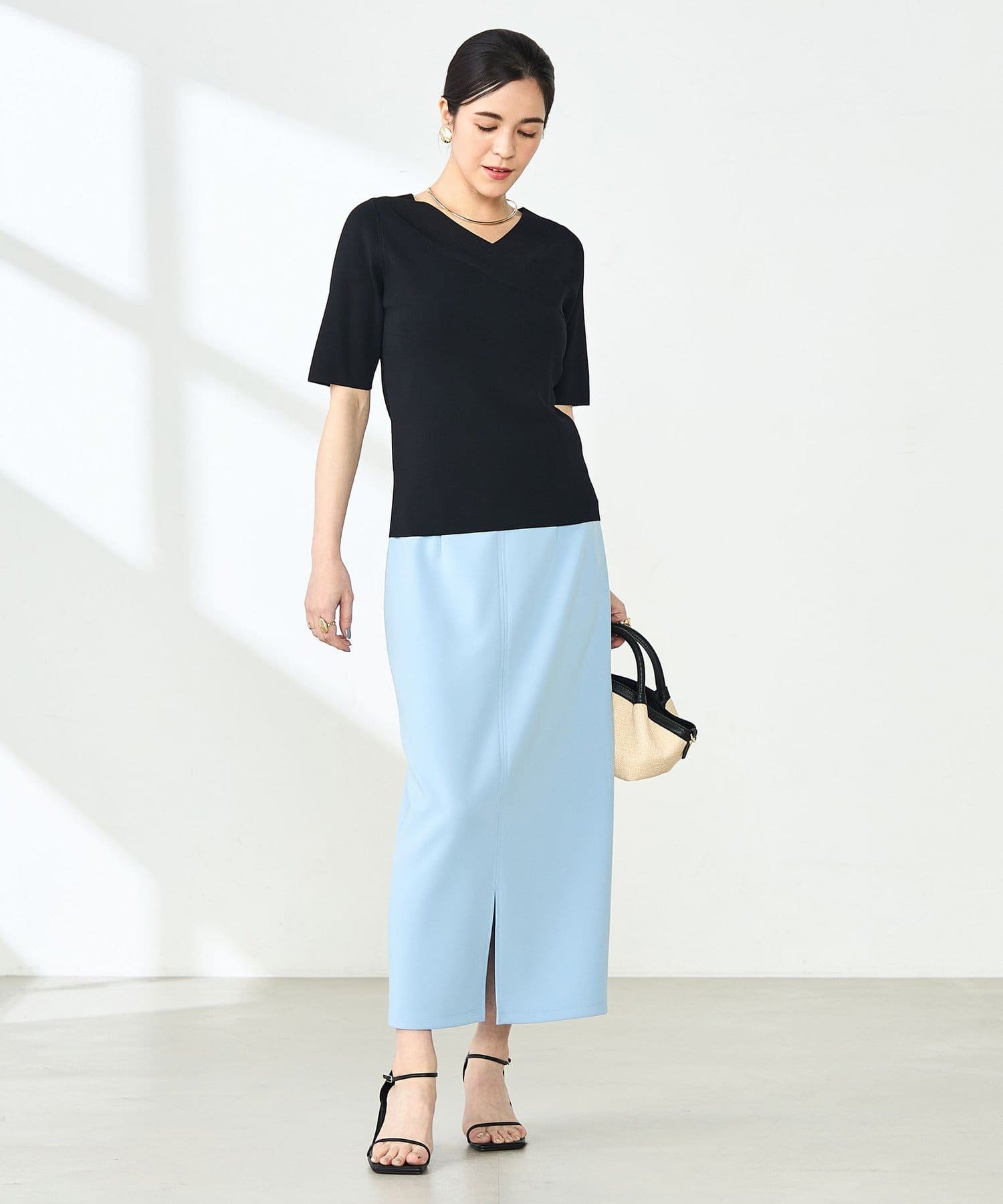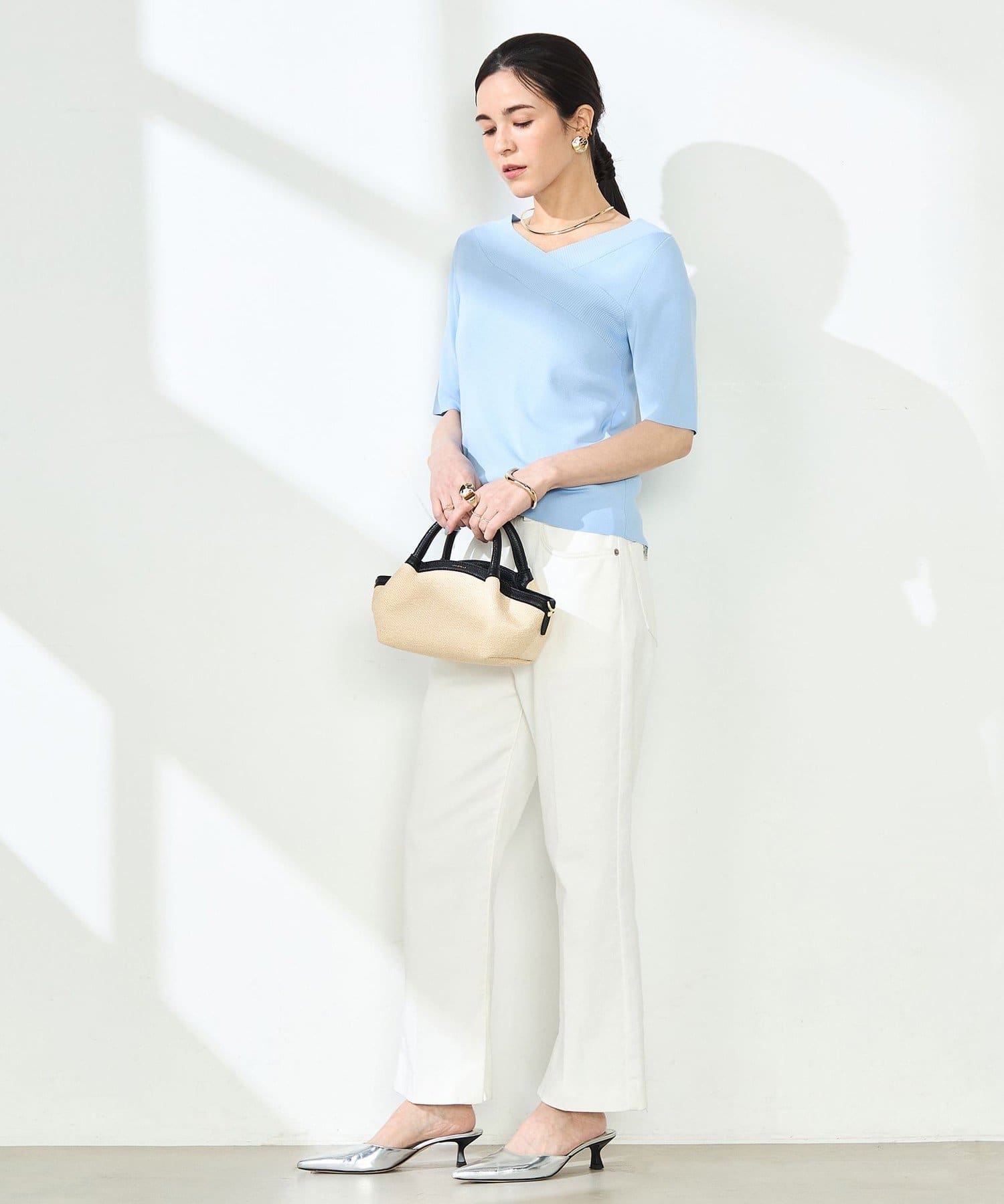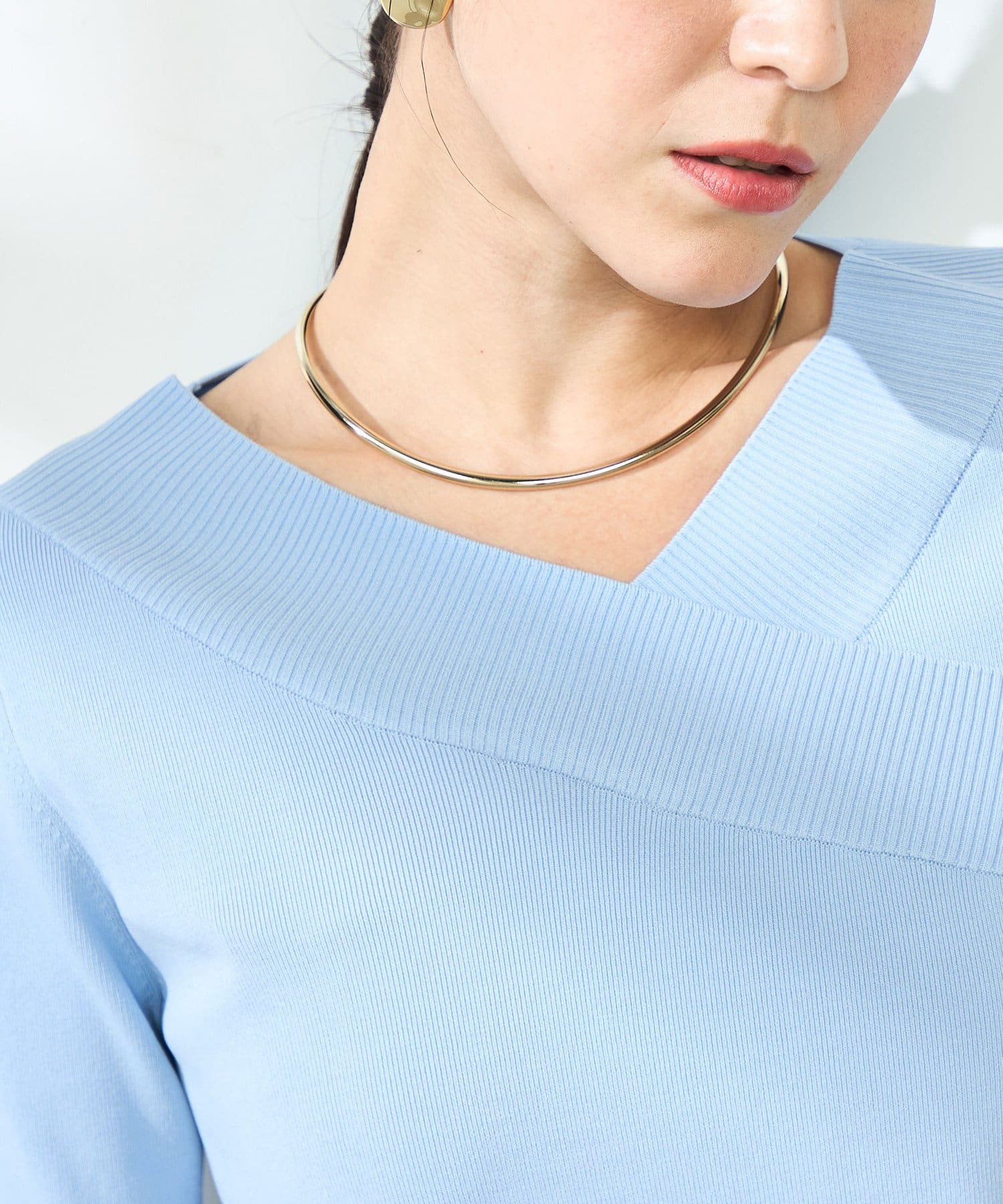 TOP > NOLLEY'S > レディース > トップス > ニット/セーター > 《手洗い可能》カシュクール風5分袖プルオーバーニット