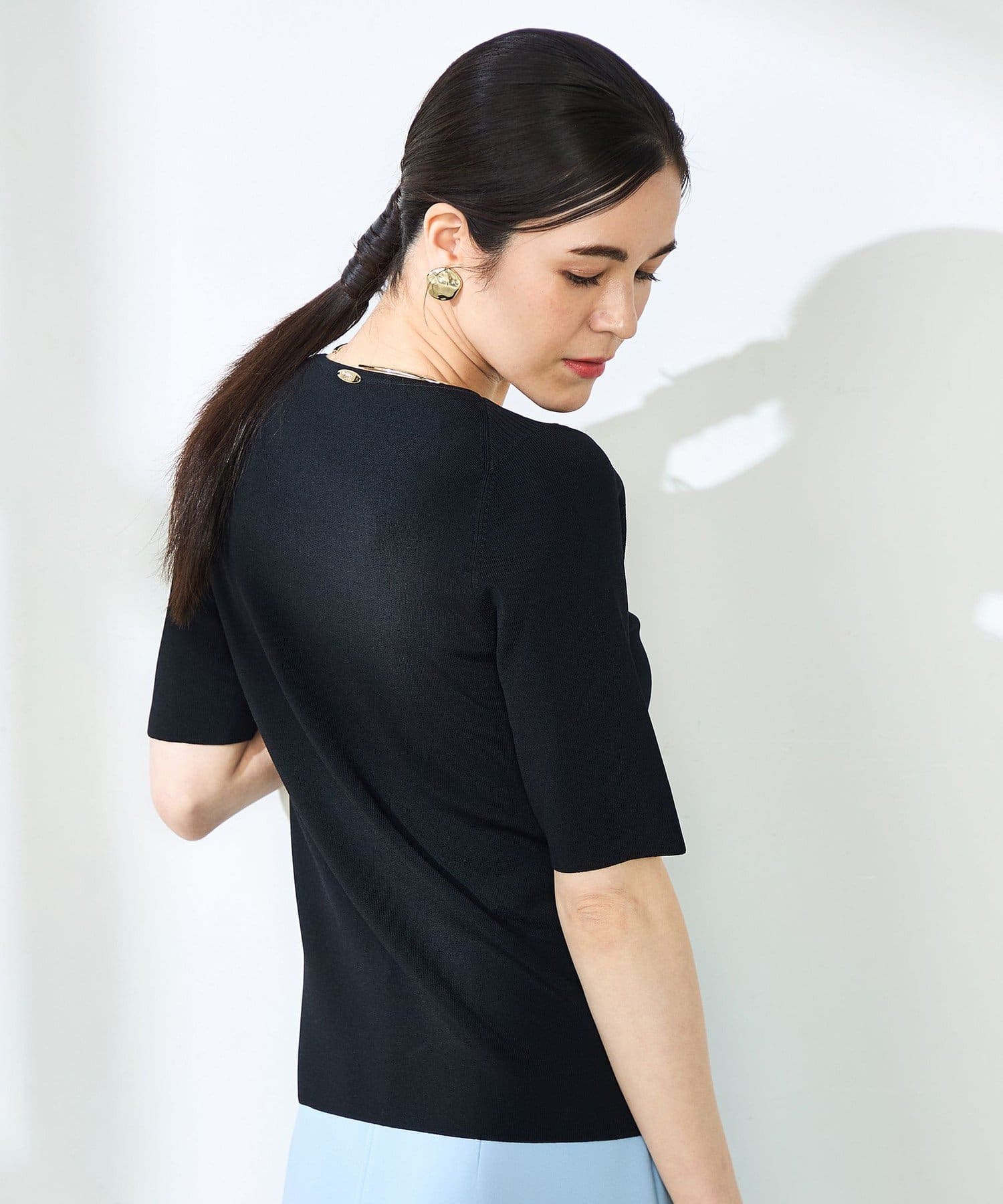 NOLLEY'S(ノーリーズ) 《手洗い可能》カシュクール風5分袖プルオーバーニット