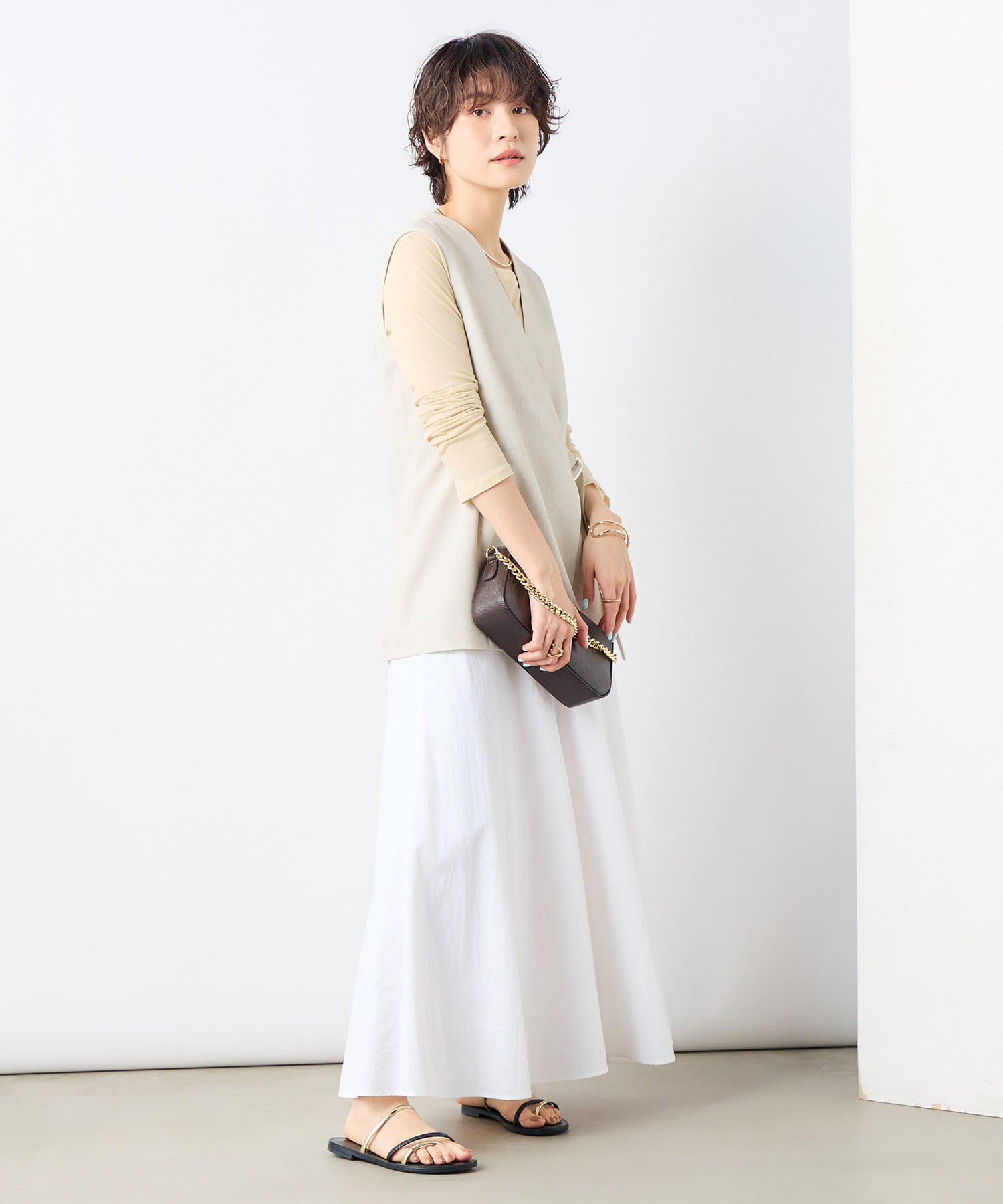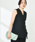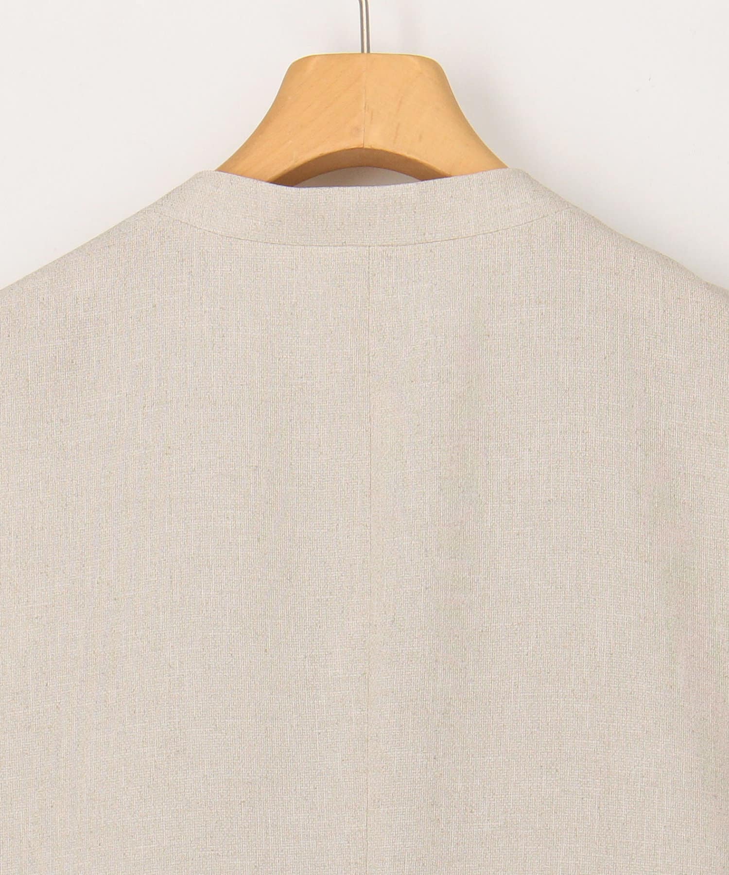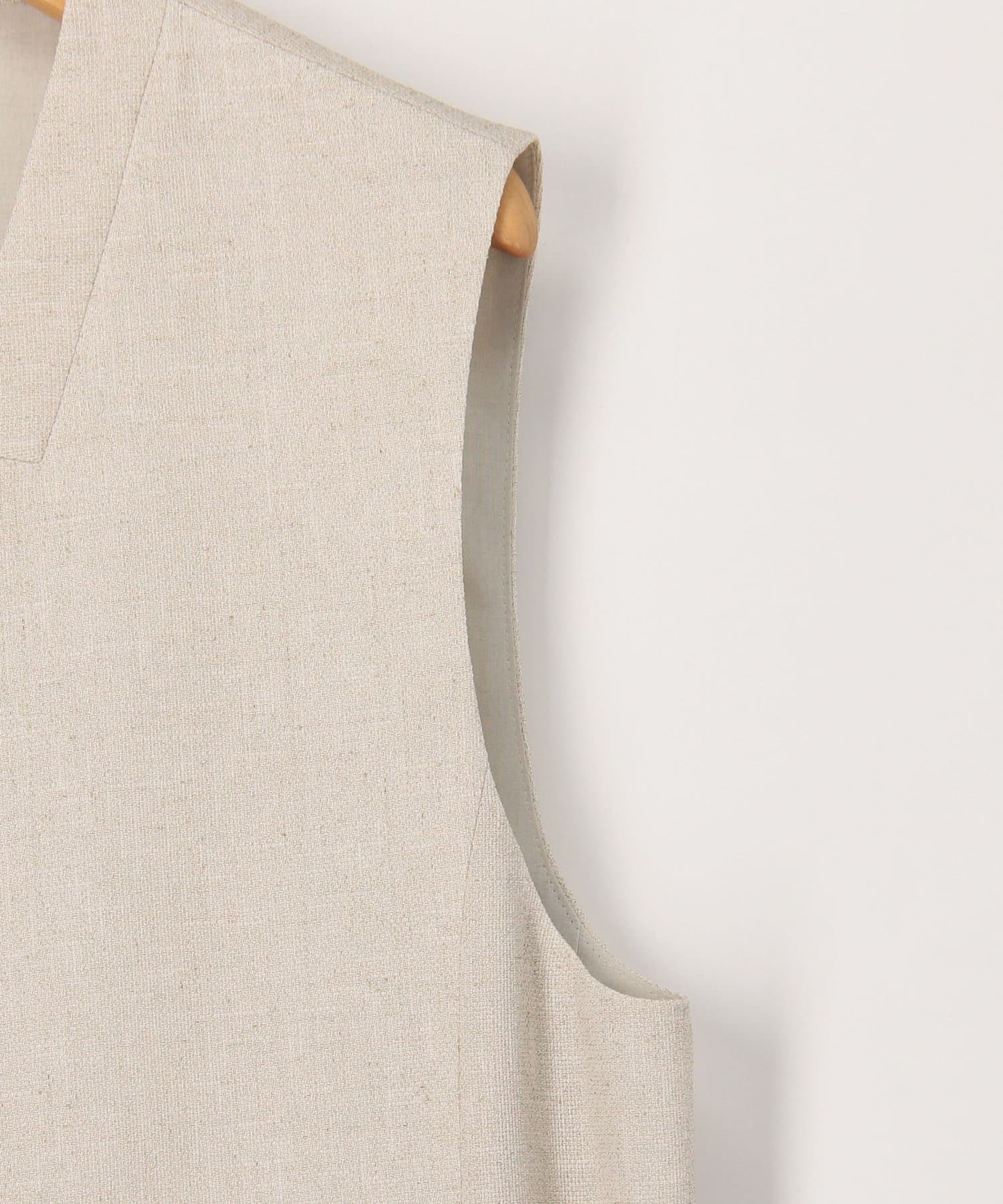 ・ドライタッチなスラブメッシュ素材を使用したノーカラーVネックジレ