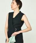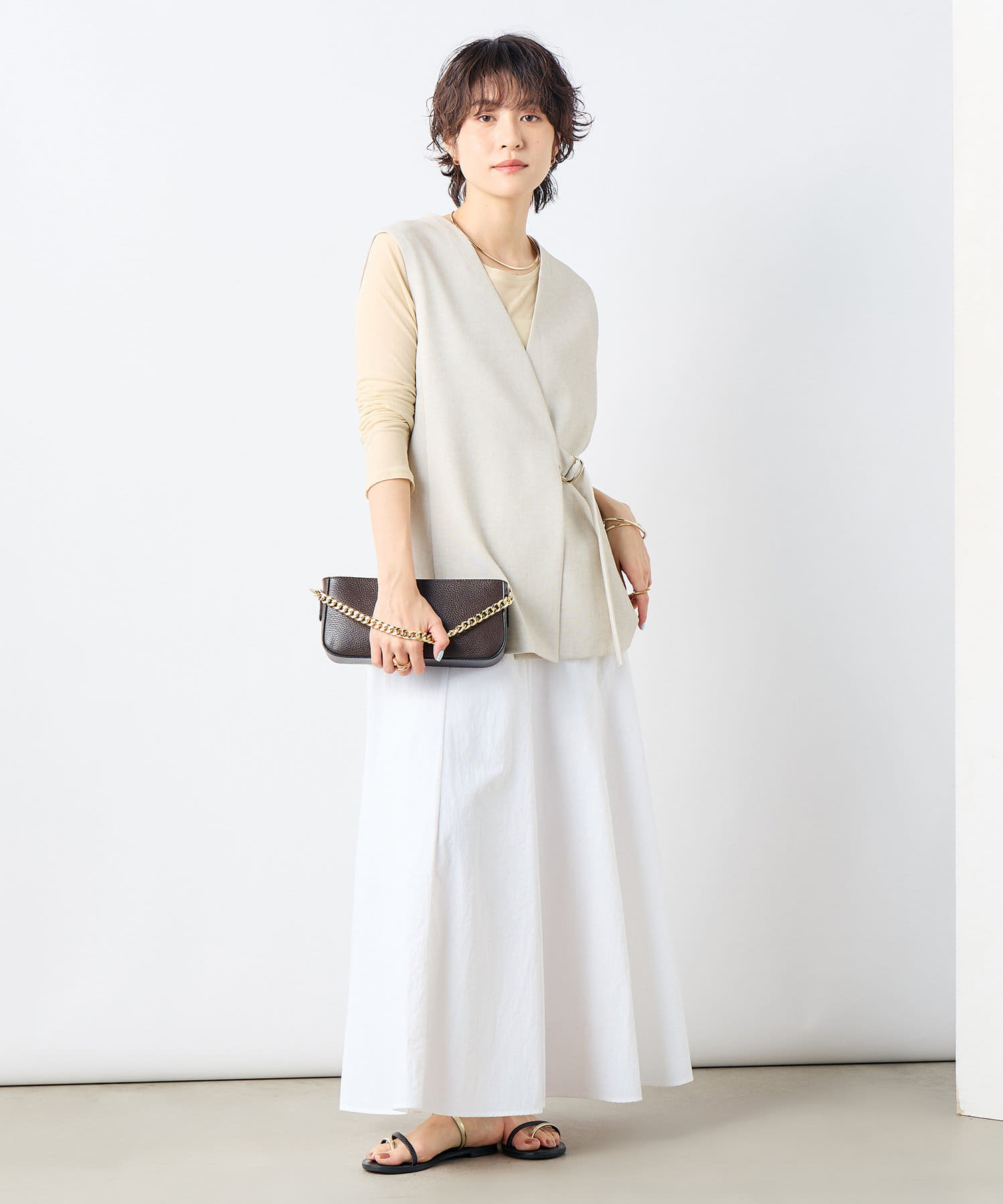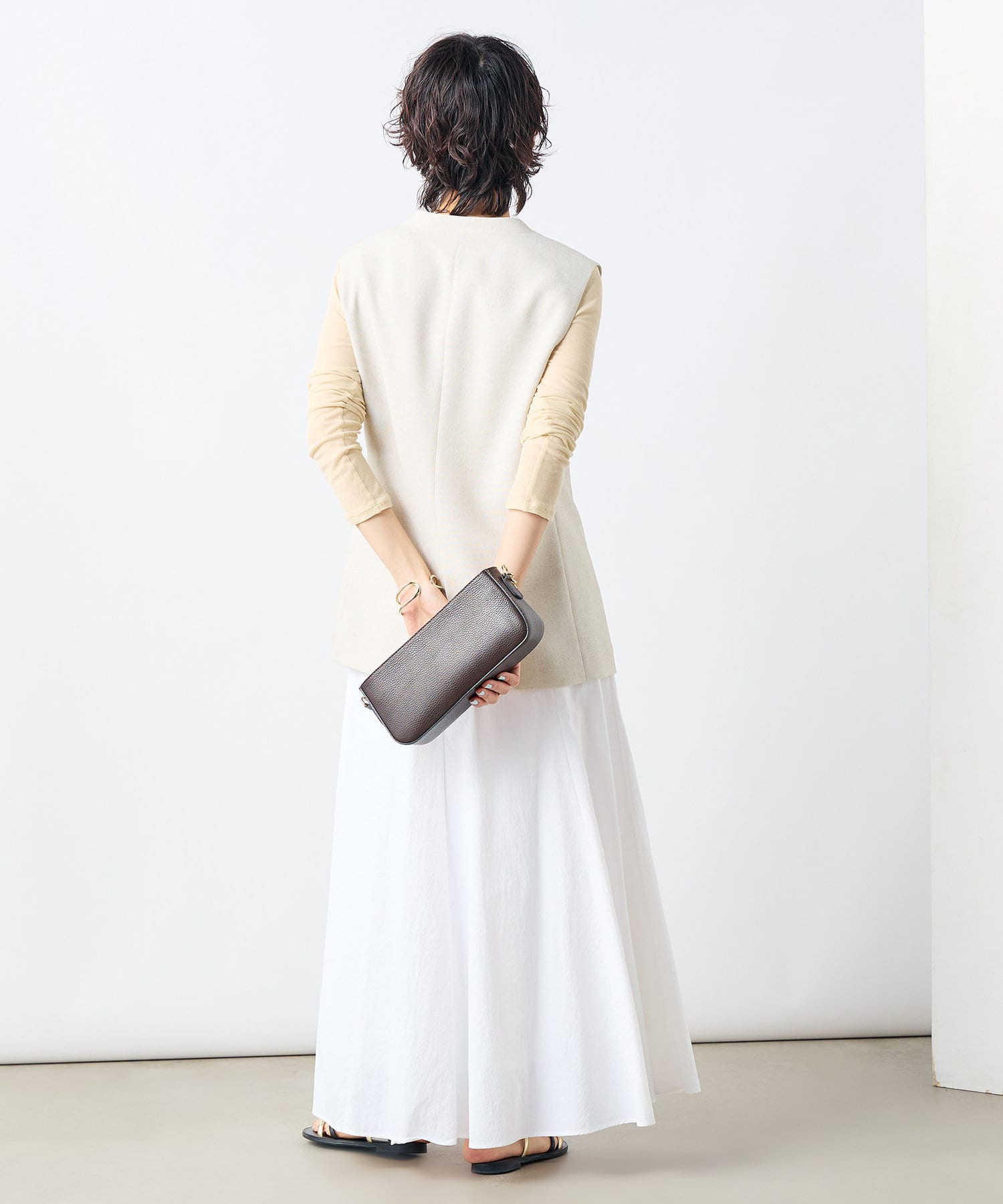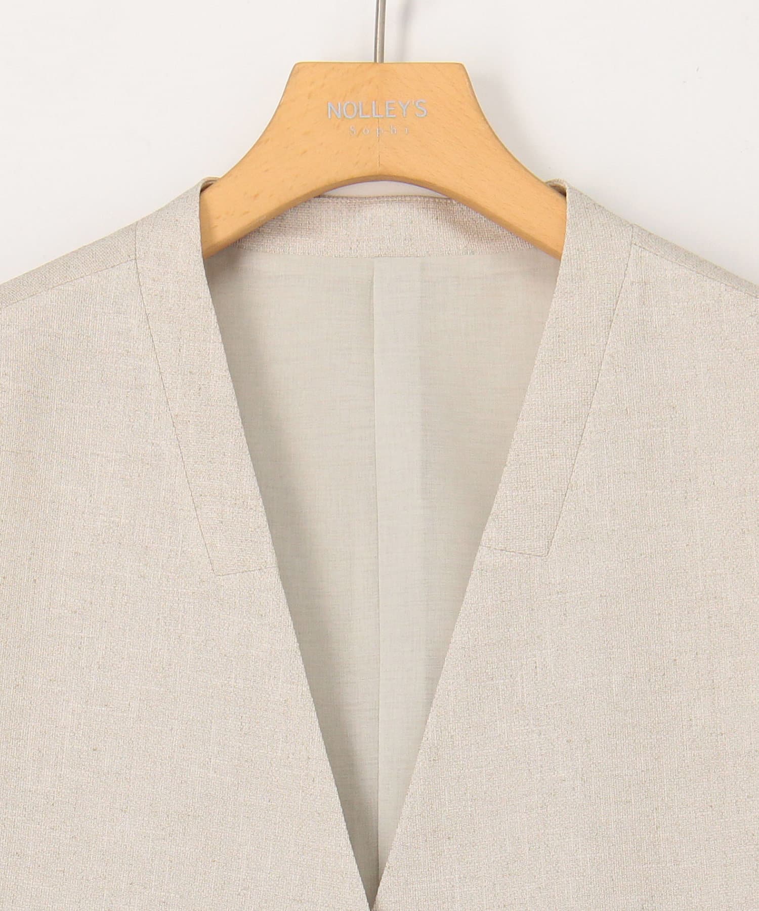 ・ドライタッチなスラブメッシュ素材を使用したノーカラーVネックジレ