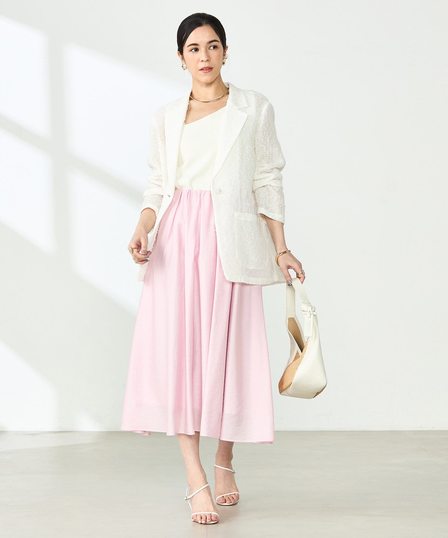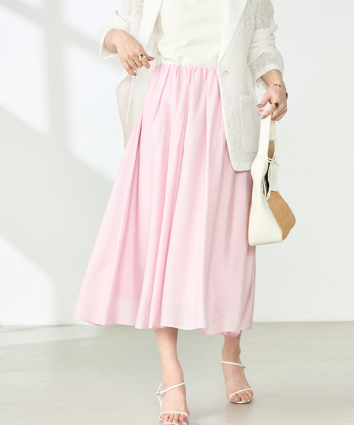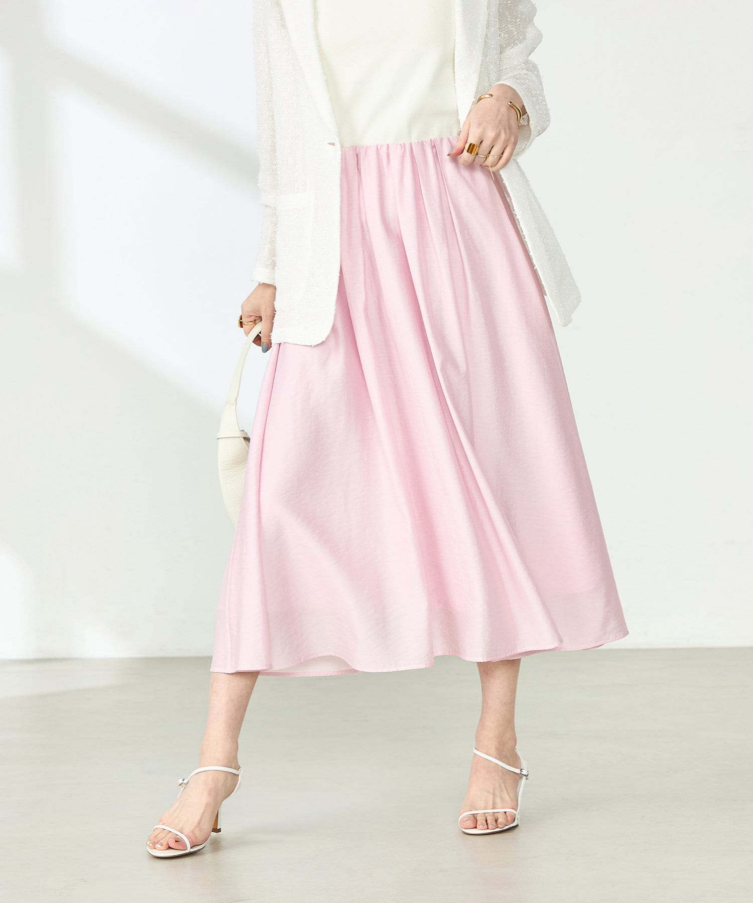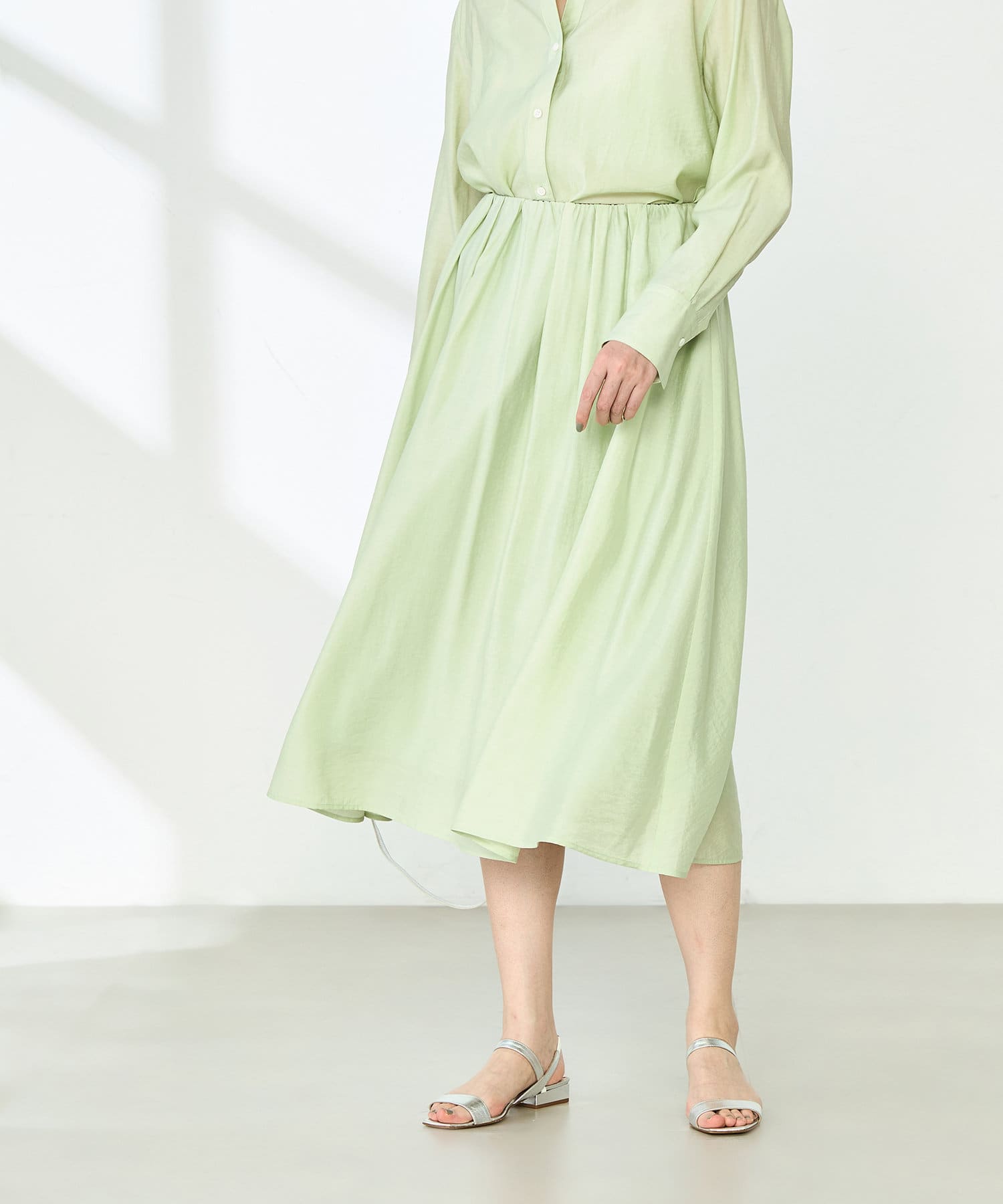 《セットアップ対応》ウォッシャブルシアーローンインゴムギャザースカート
