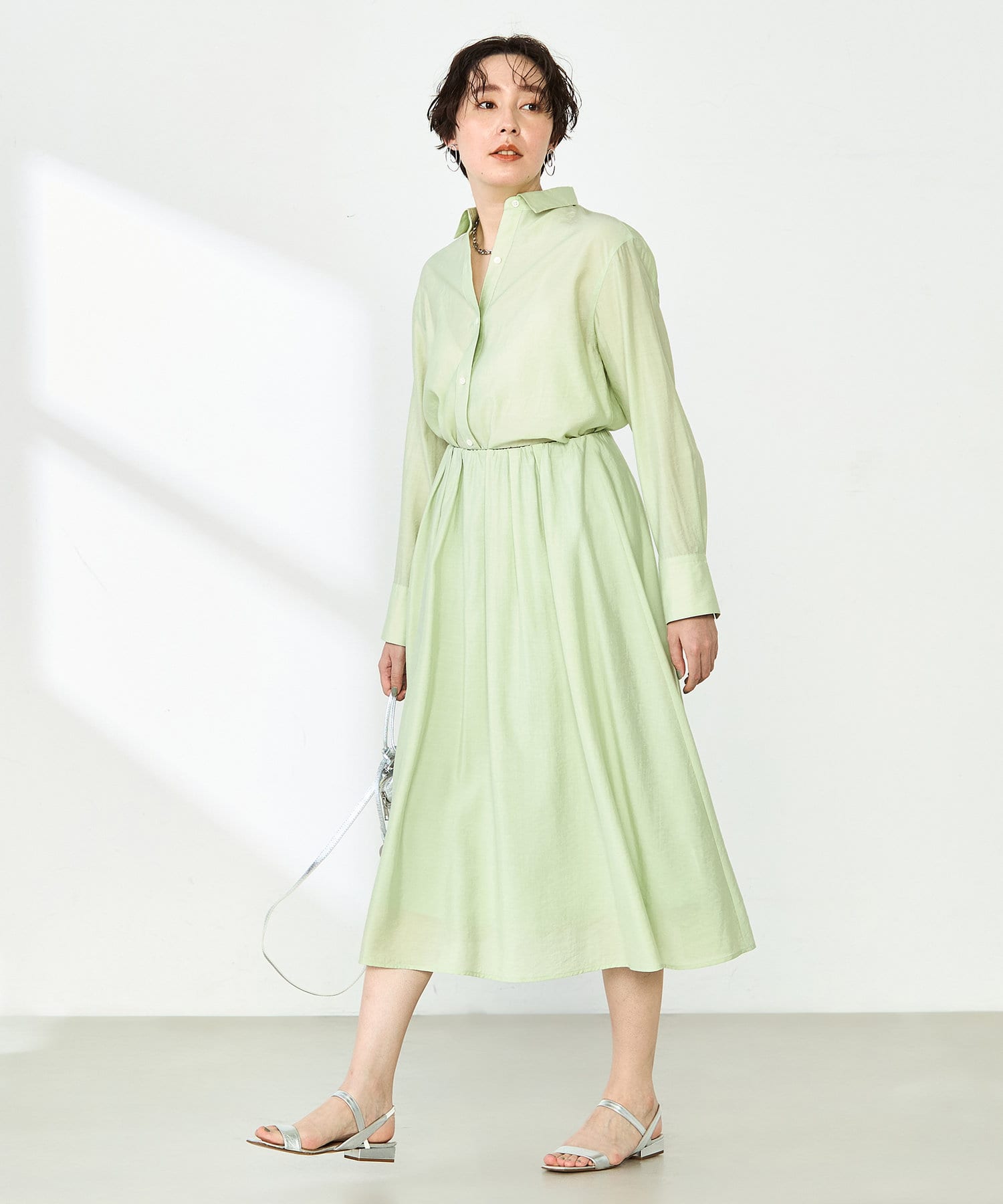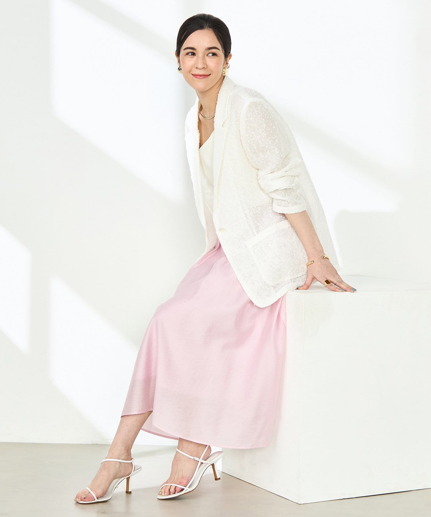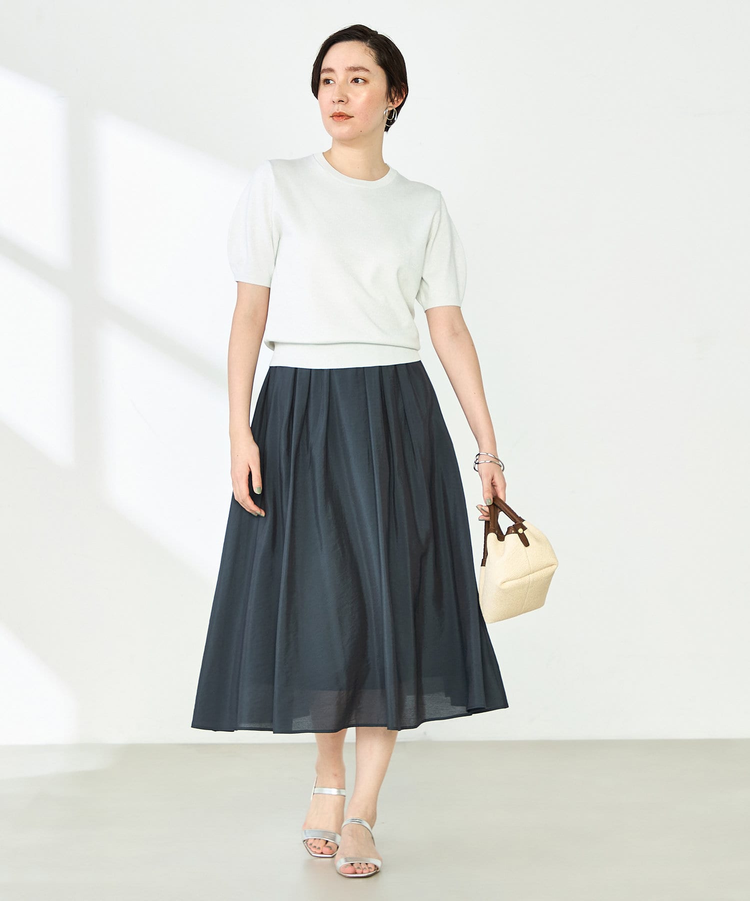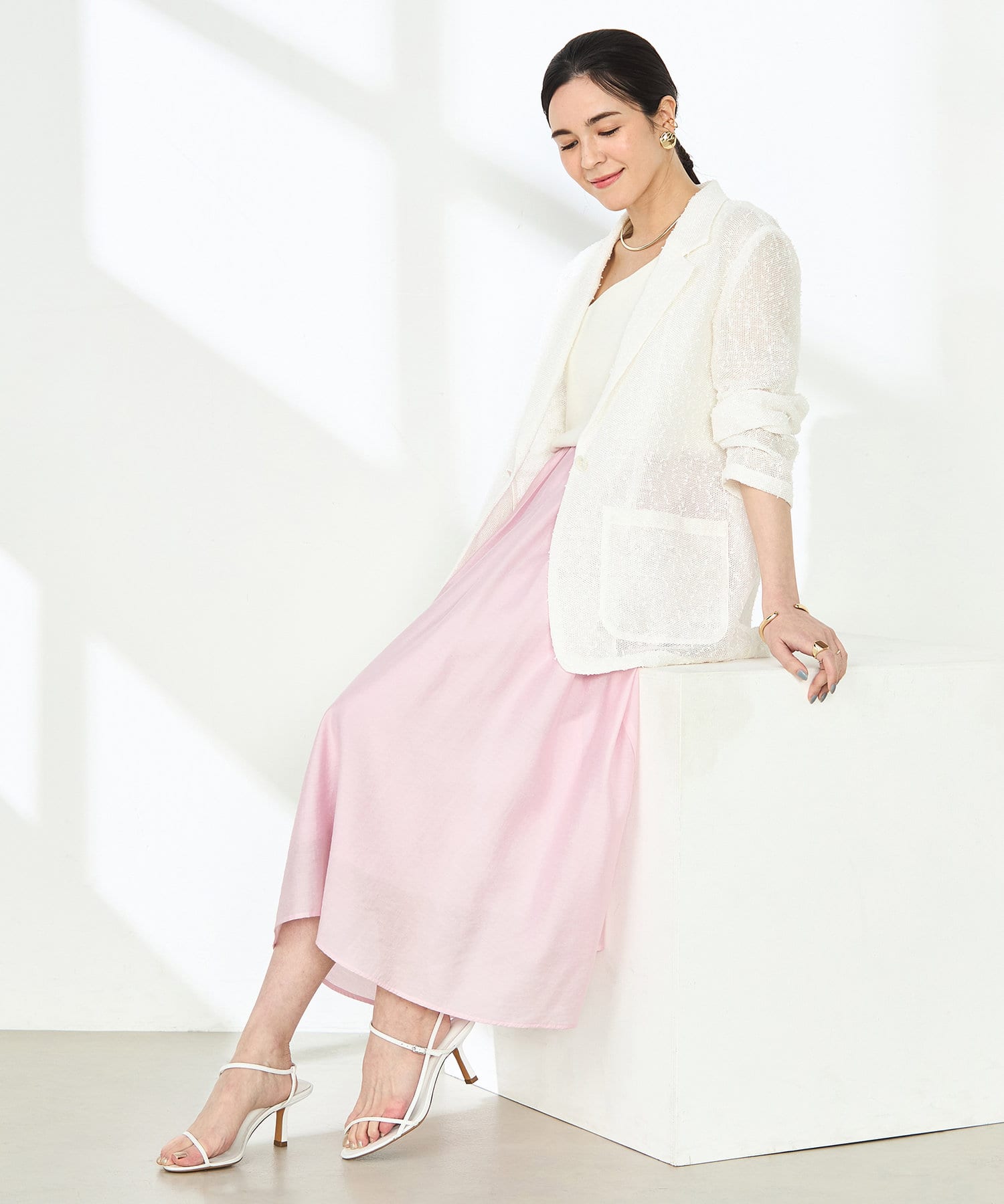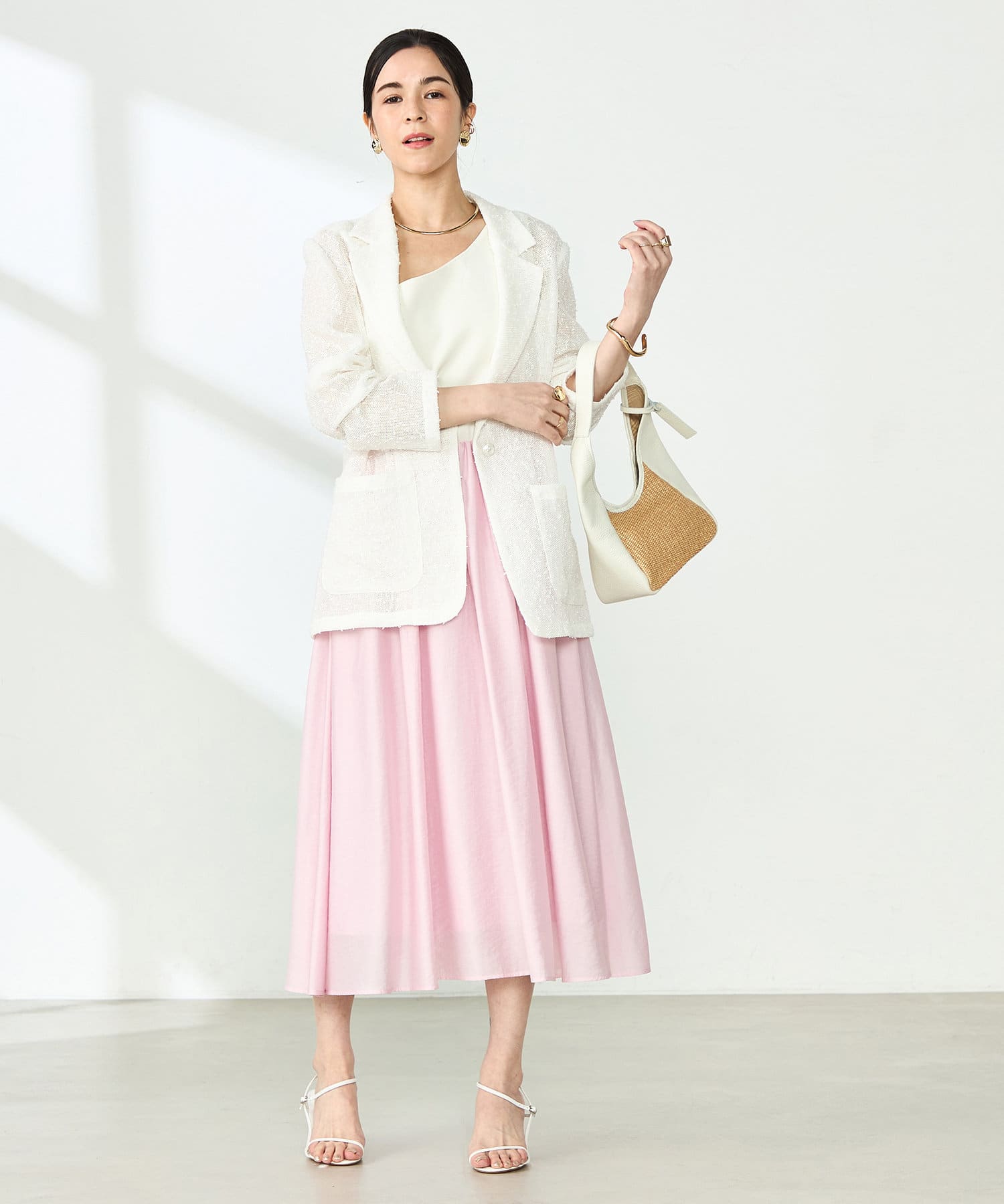 《セットアップ対応》ウォッシャブルシアーローンインゴムギャザースカート