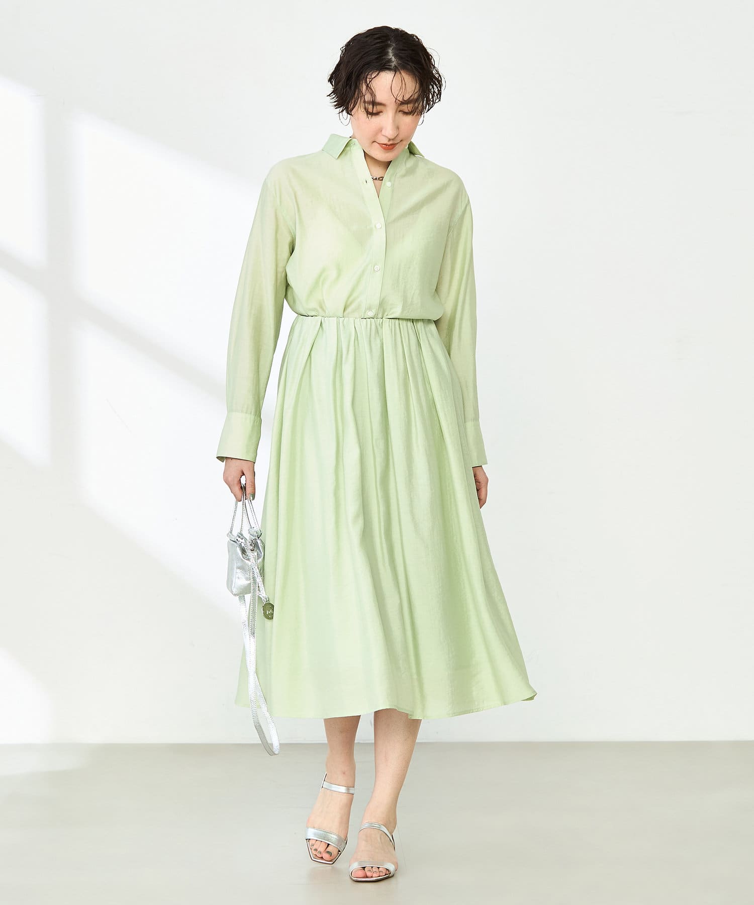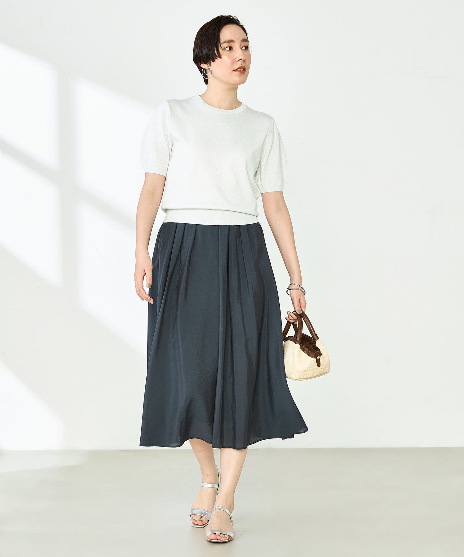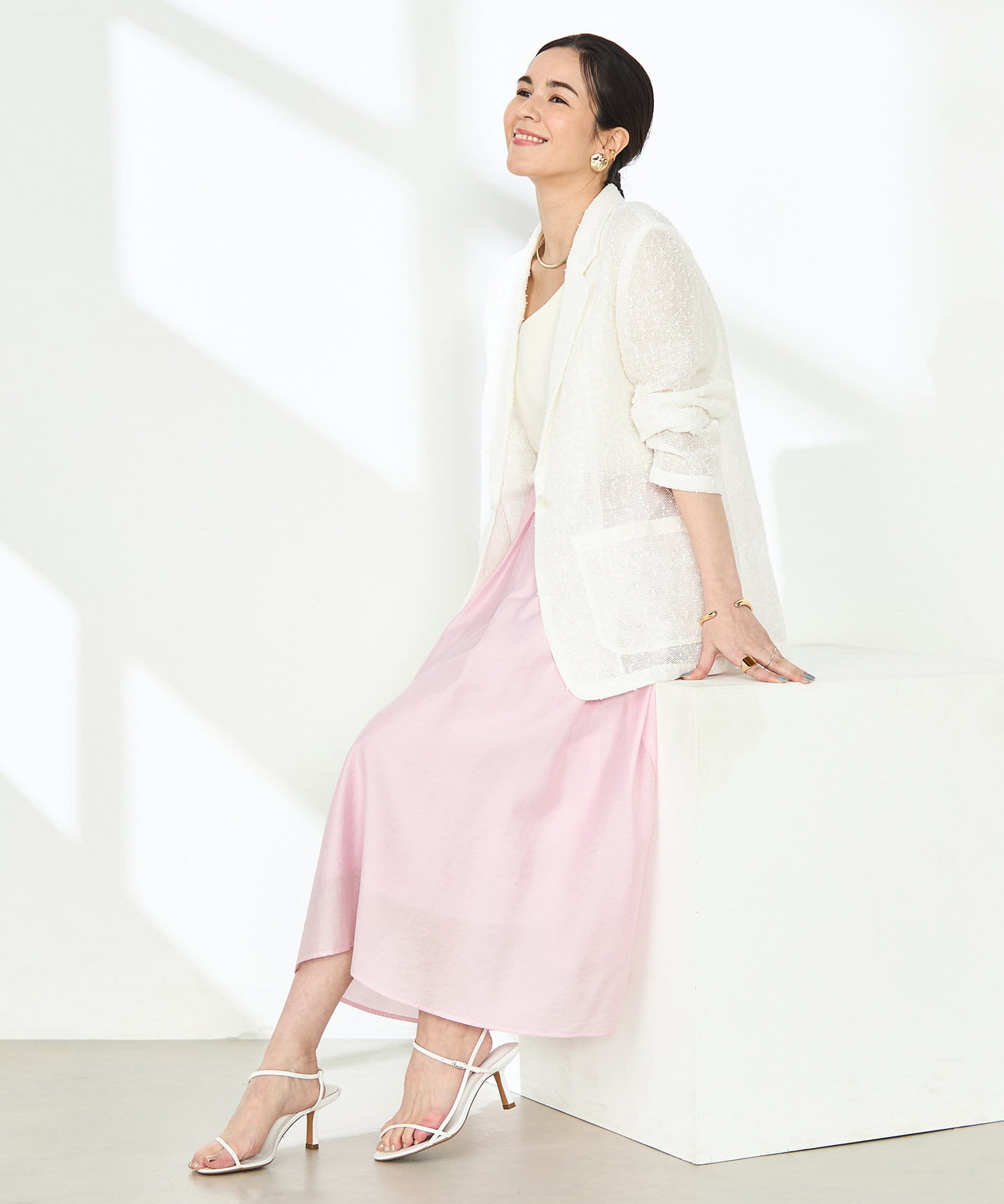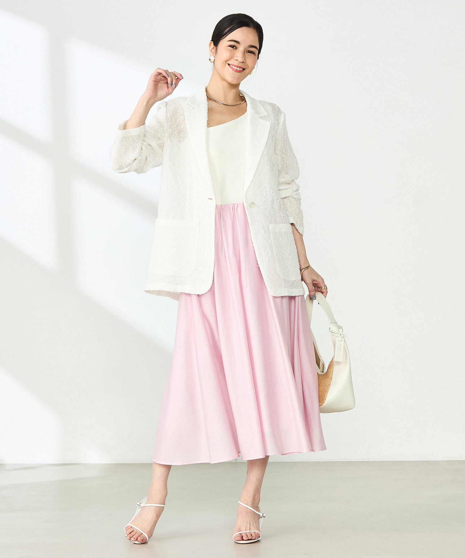 《セットアップ対応》ウォッシャブルシアーローンインゴムギャザースカート