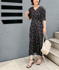 ミモザプリントチューリップスリーブワンピース