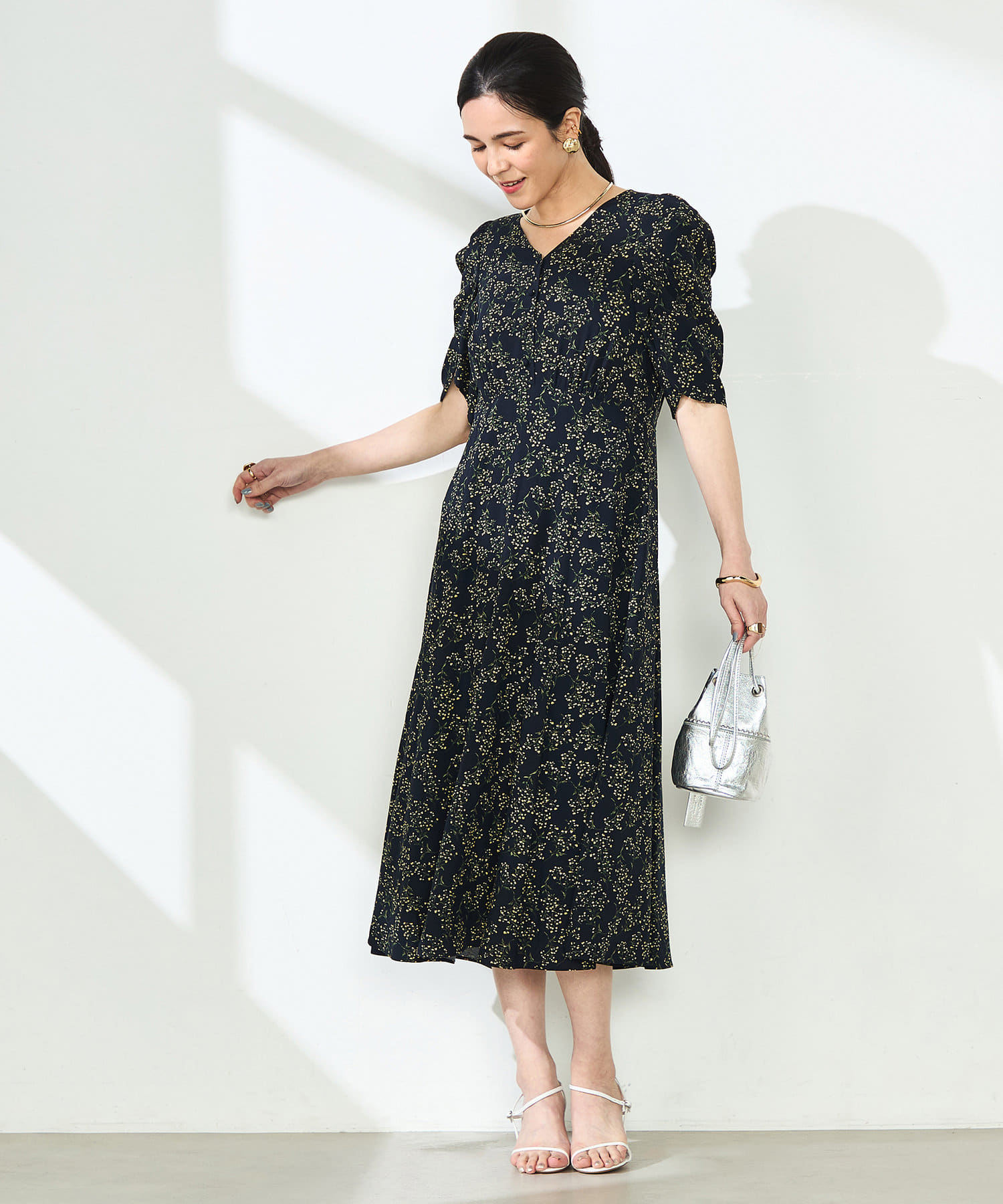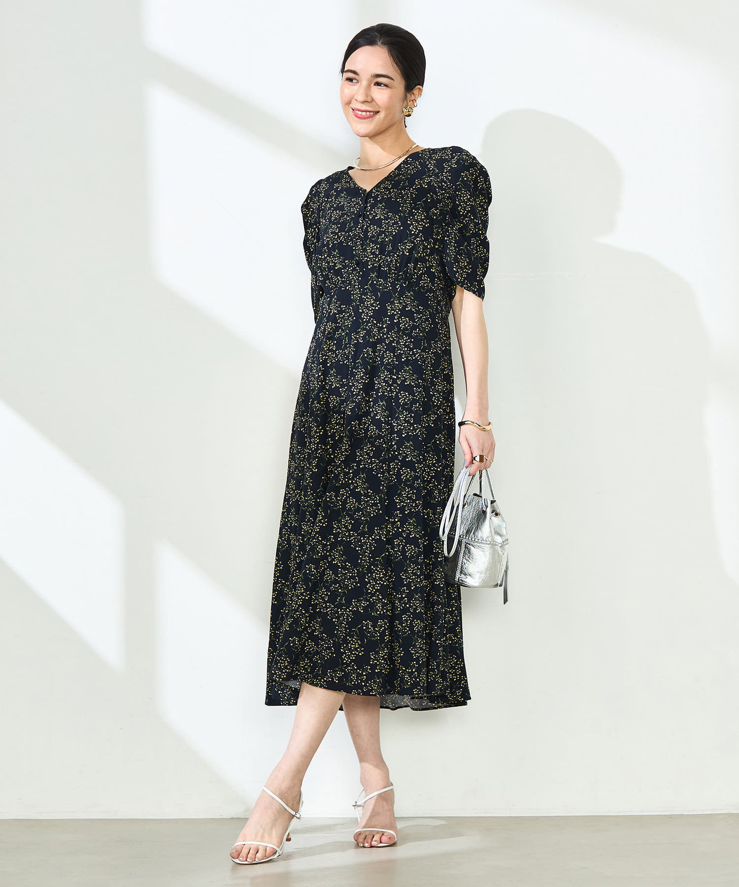 • NOLLEY'S(ノーリーズ) ミモザプリントチューリップスリーブワンピース