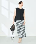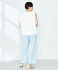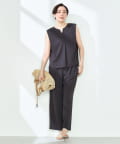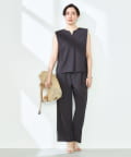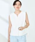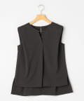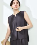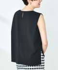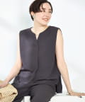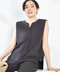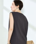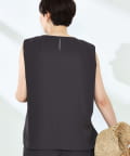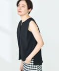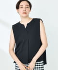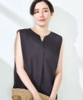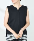 ・梳毛調合繊素材を使用したタック入りキーネックのノースリーブブブラウス
