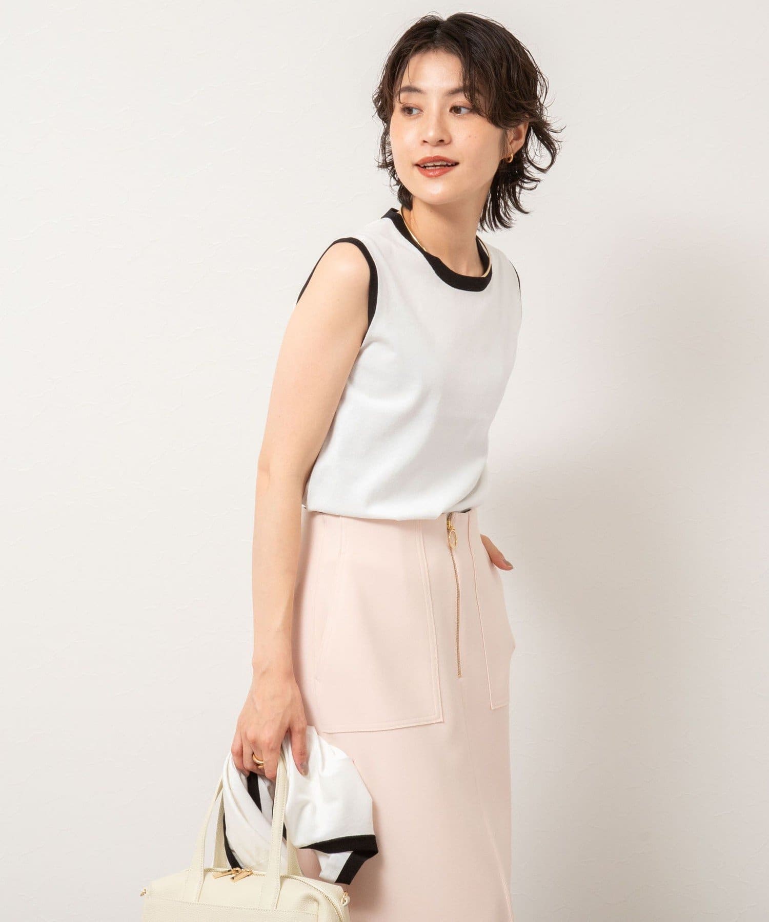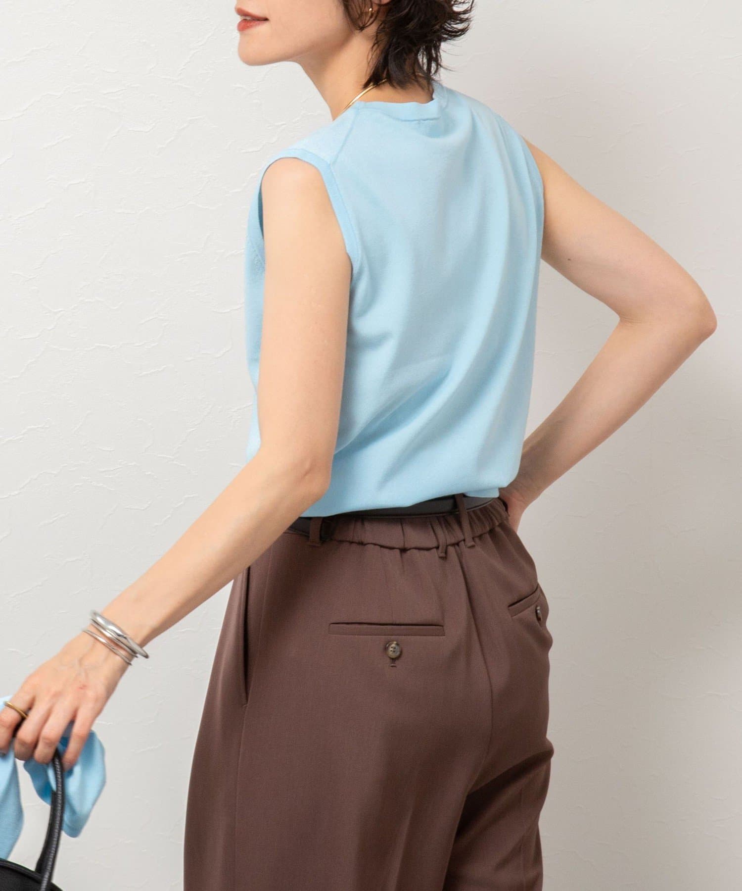 《アンサンブル対応/手洗い可能》綿ポリノースリーブプルオーバーニット