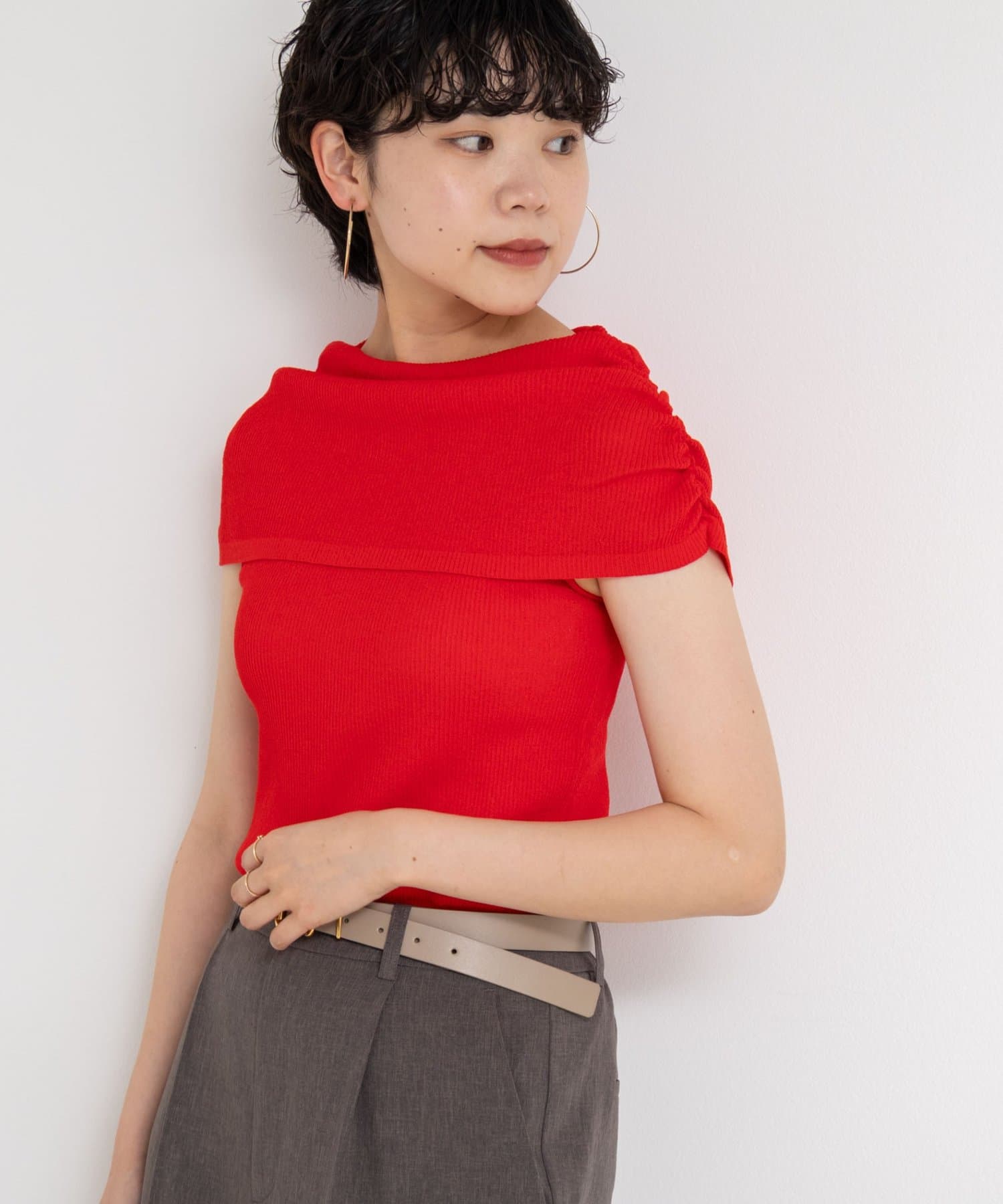 ・幅の広い衿を折り返して少し下げればオフショルダーとして着用可能