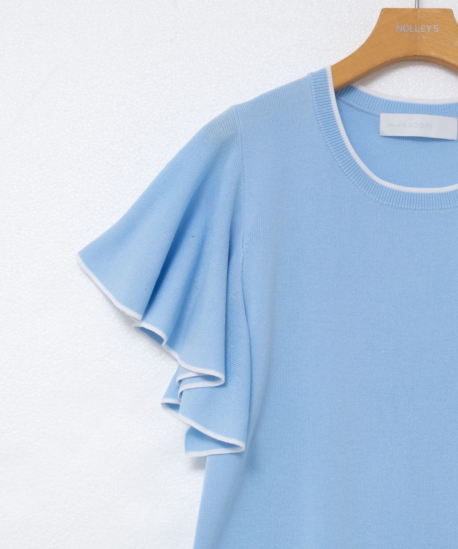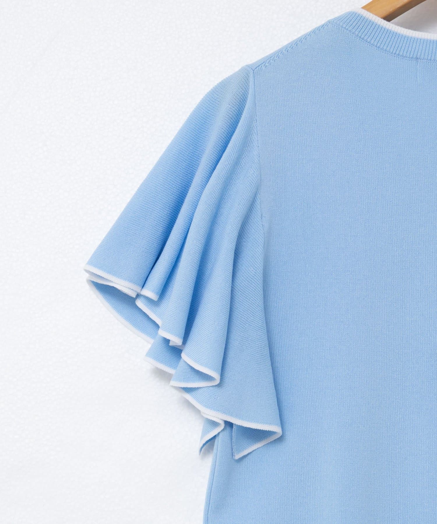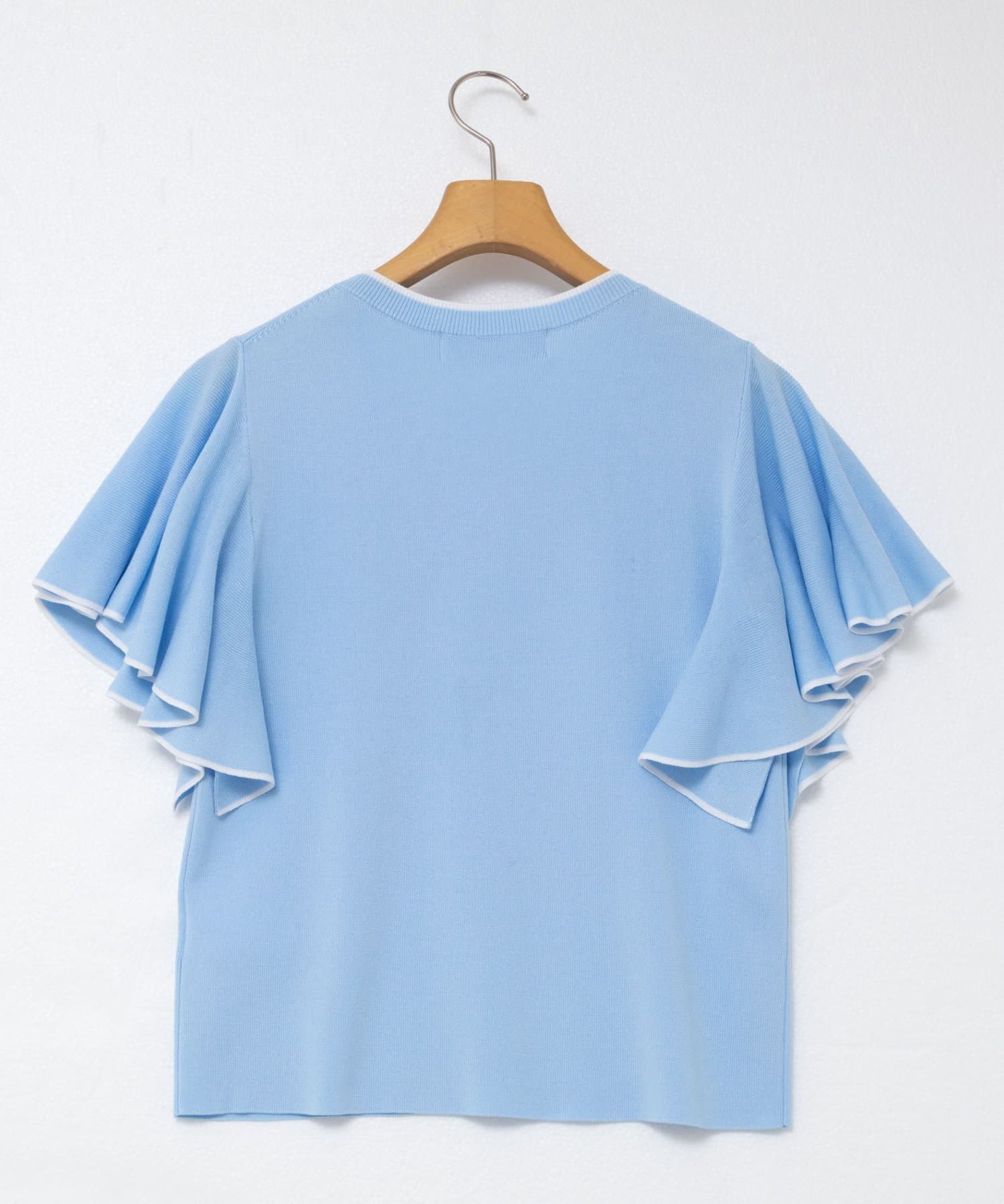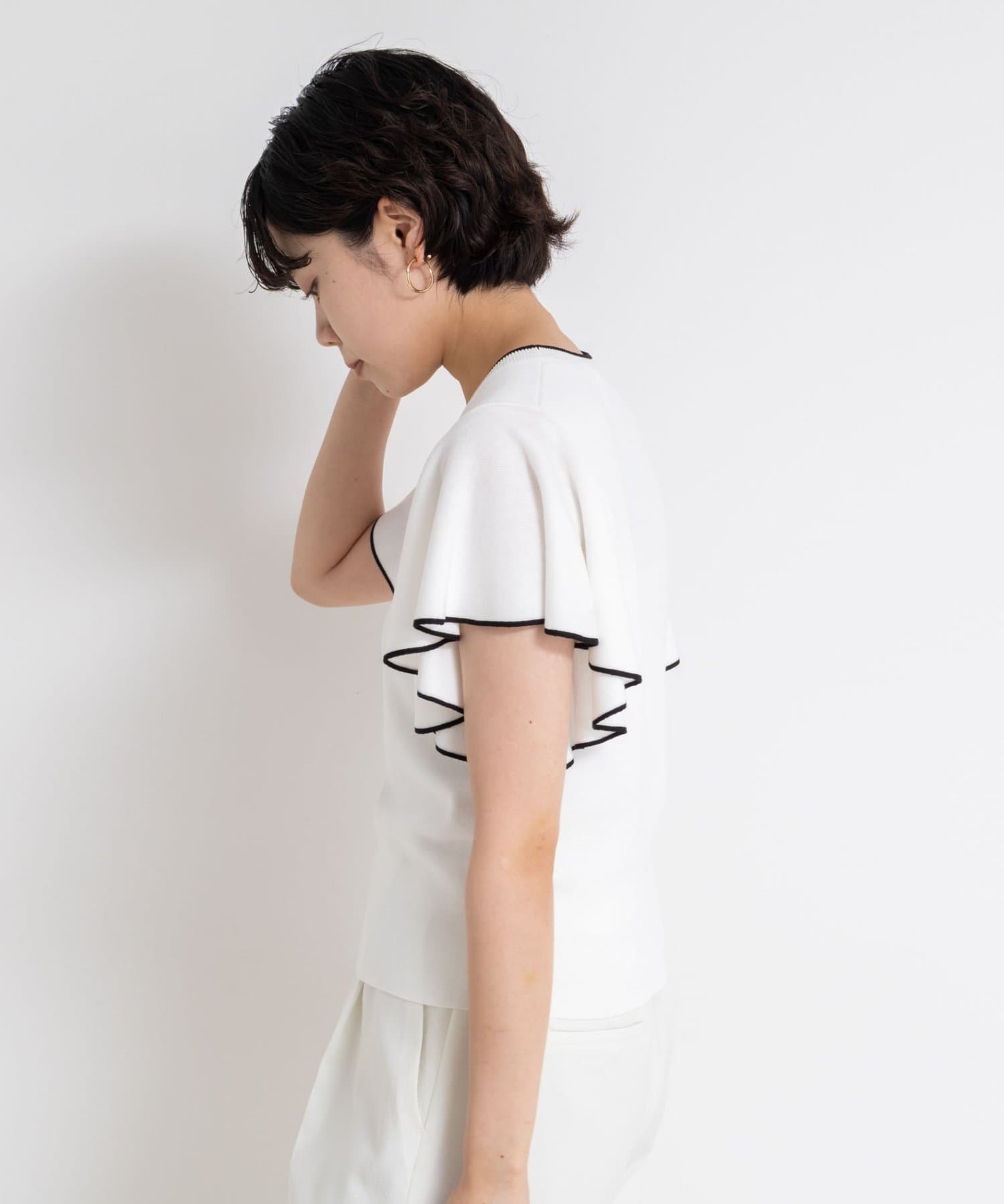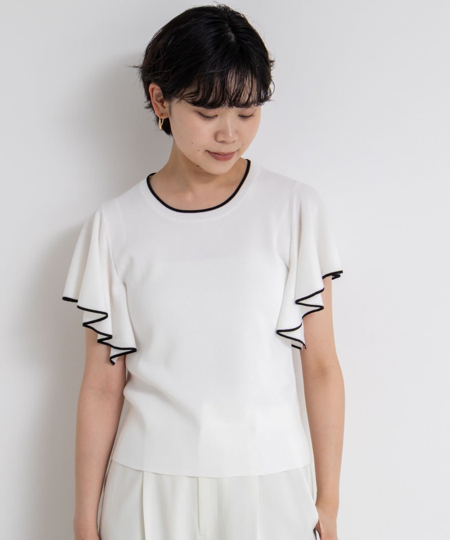・袖は編みでフリルの立体感を出した華のあるプルオーバーニット