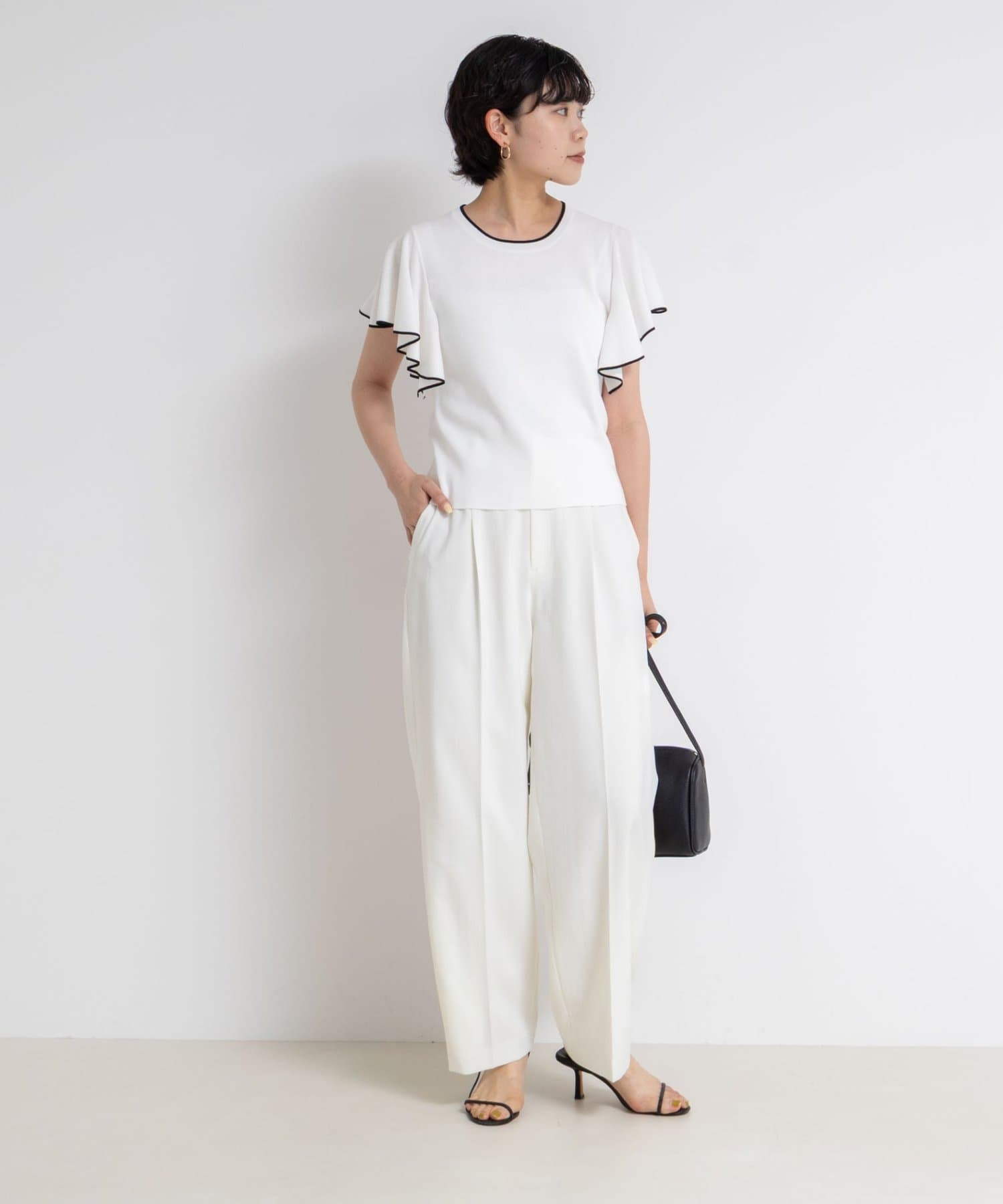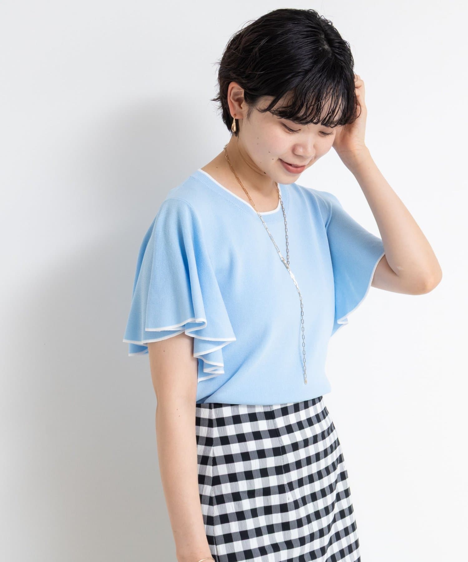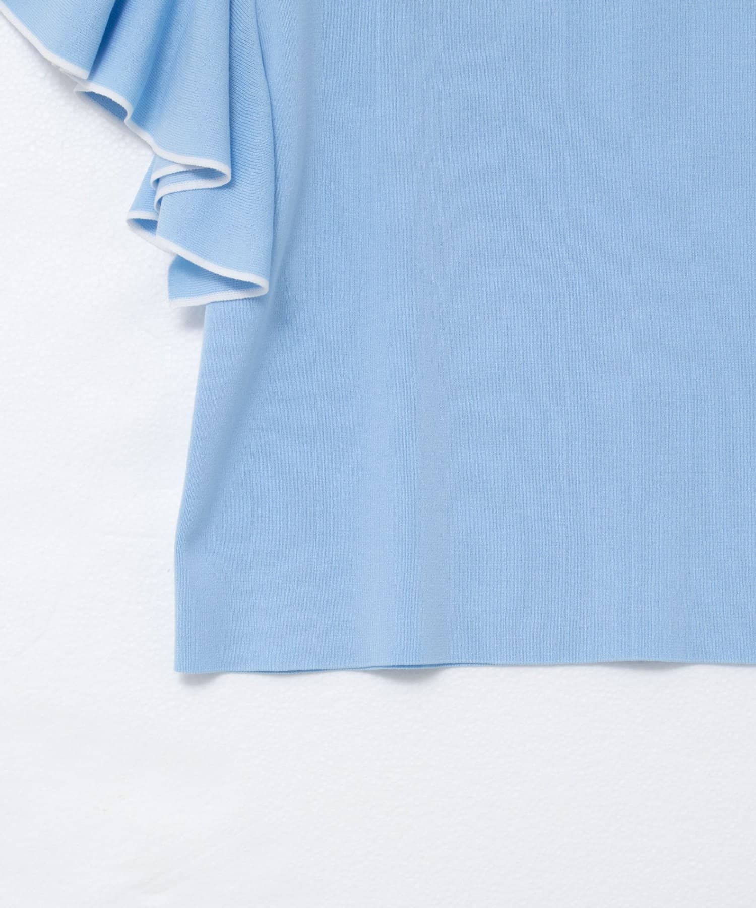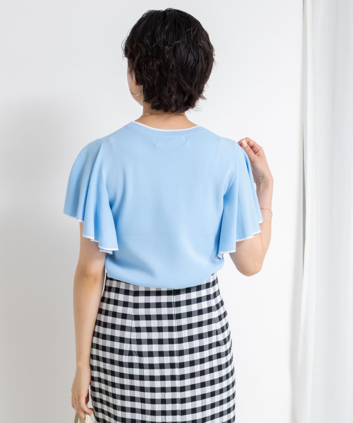・袖は編みでフリルの立体感を出した華のあるプルオーバーニット