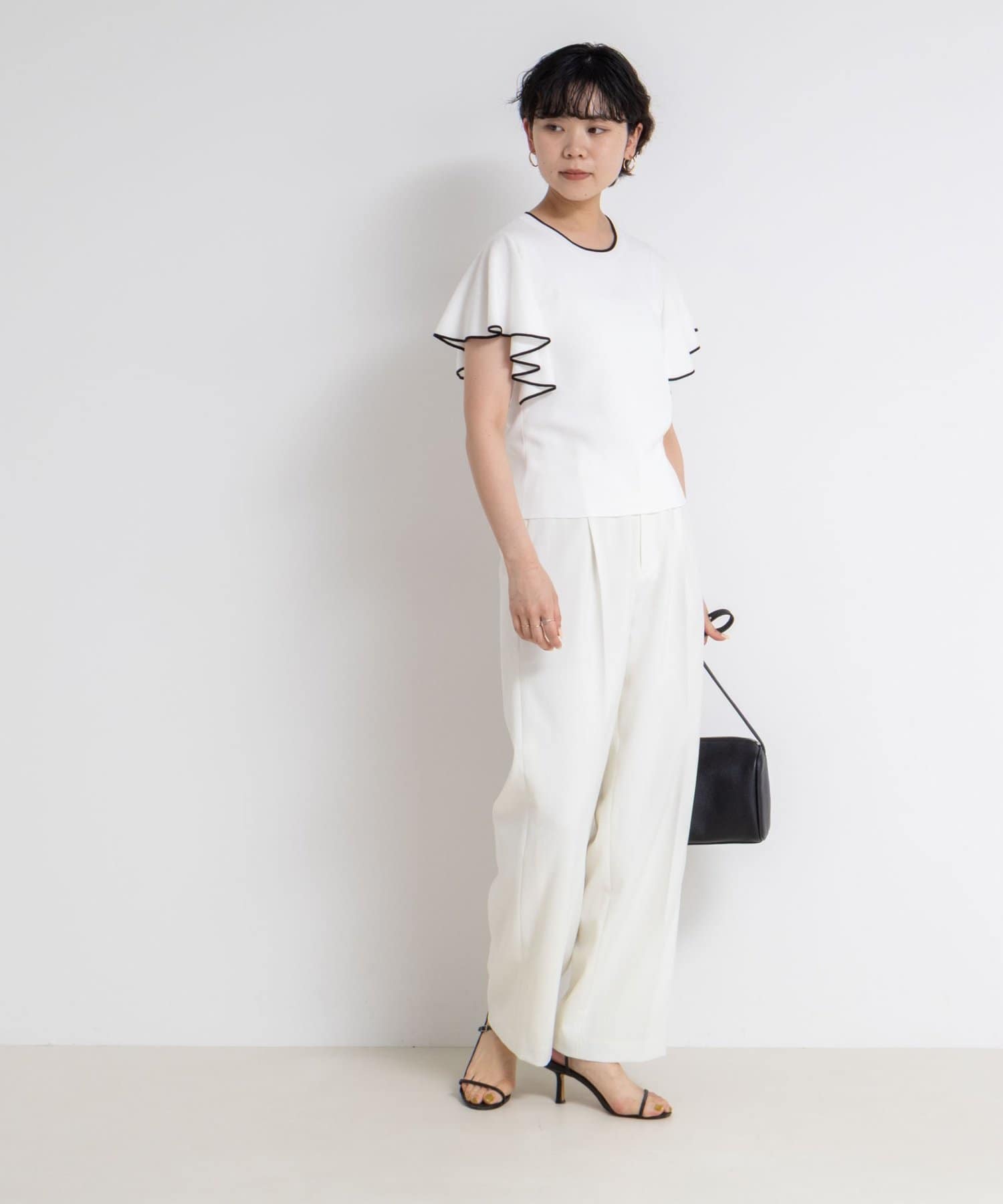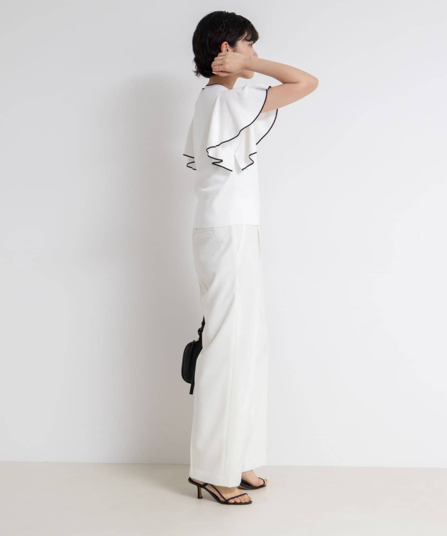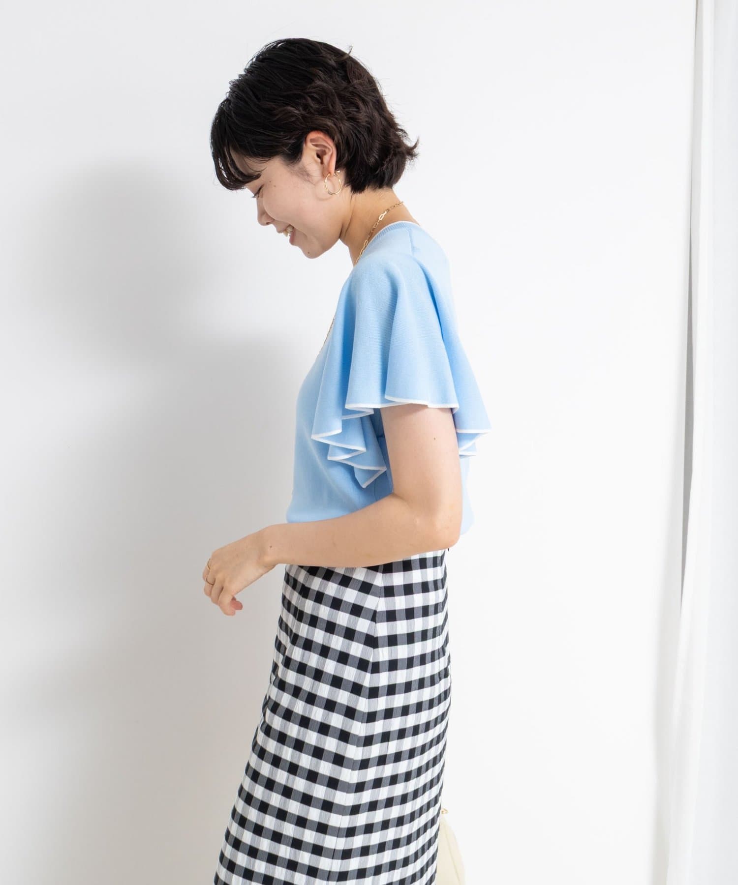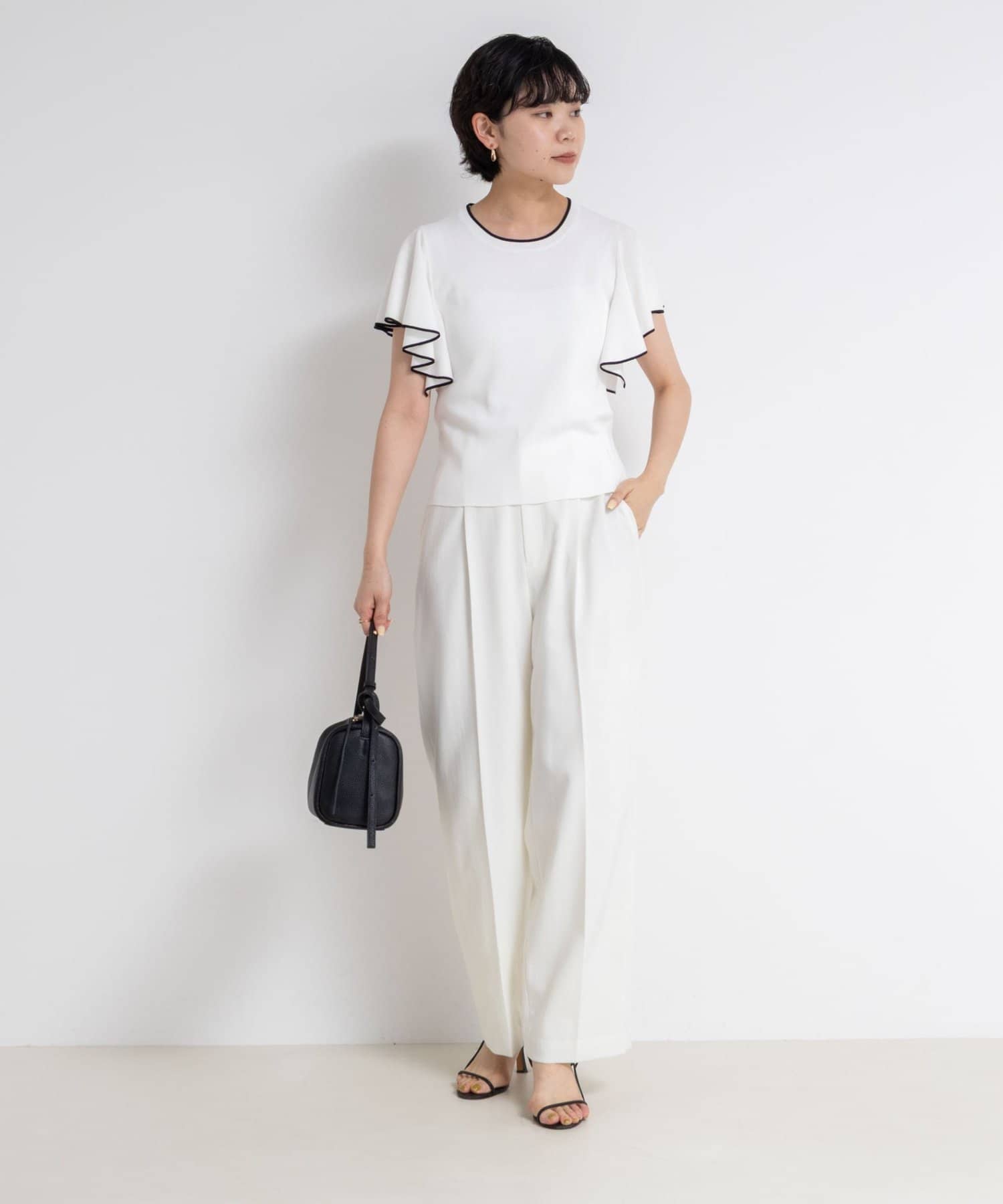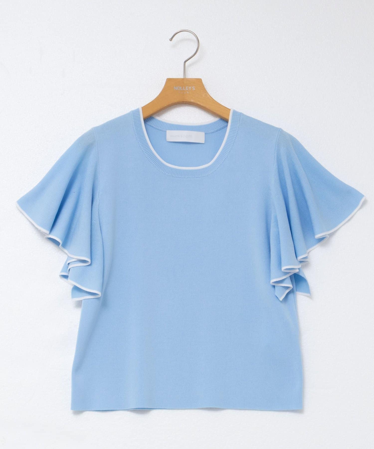 ・袖は編みでフリルの立体感を出した華のあるプルオーバーニット