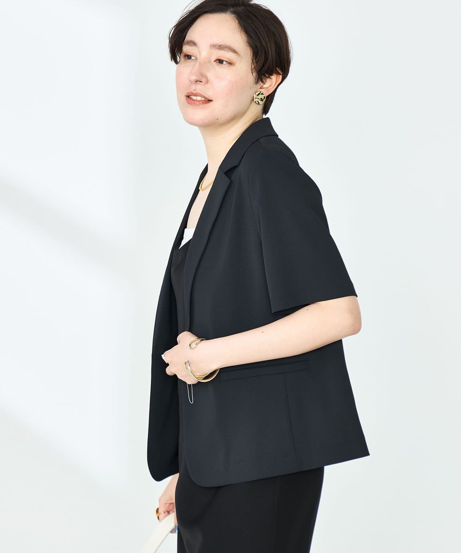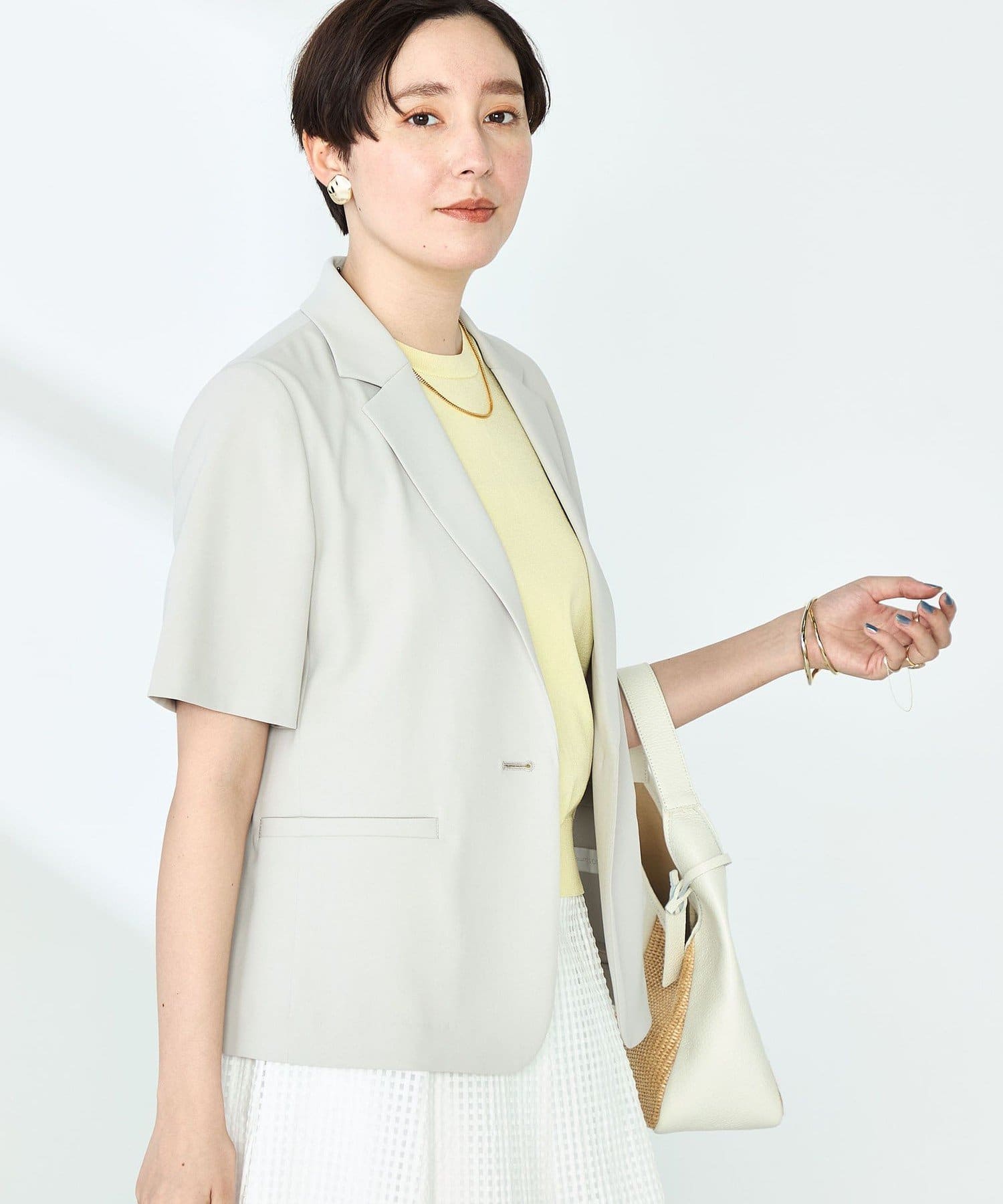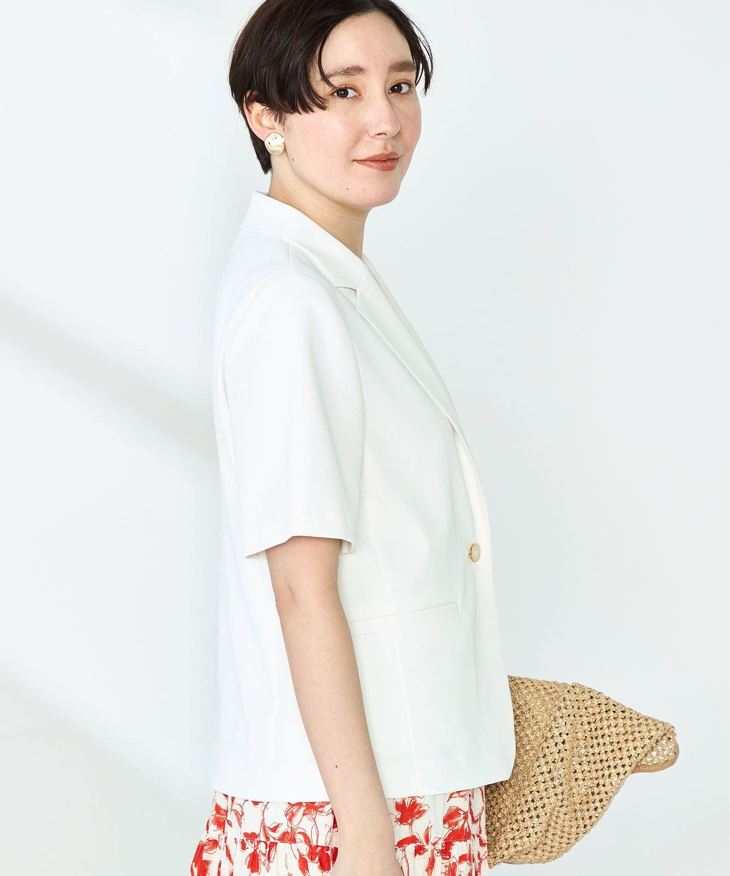 ・梳毛調合繊素材を使用した半袖テーラードジャケット