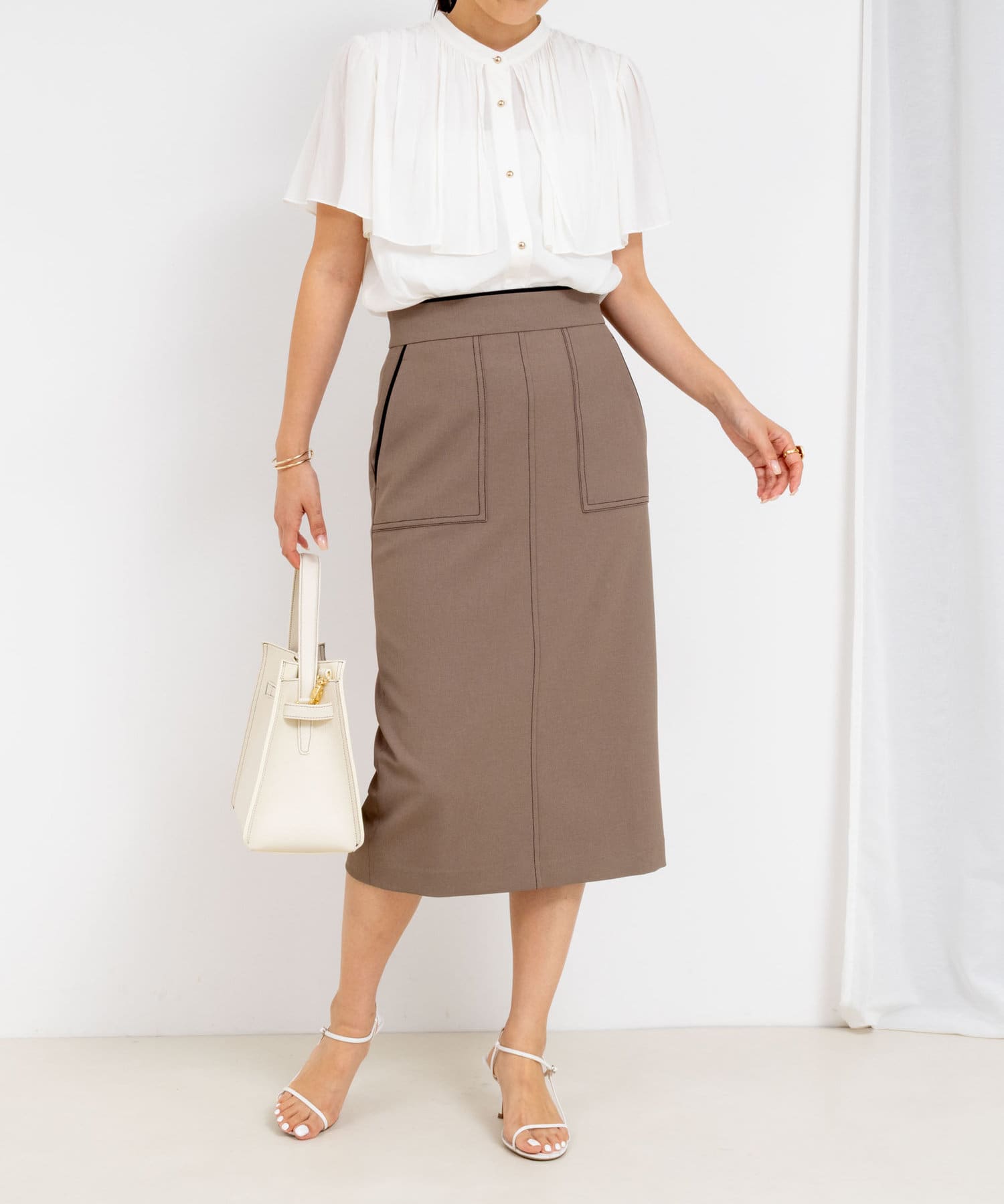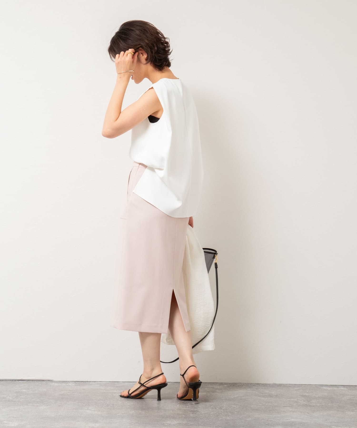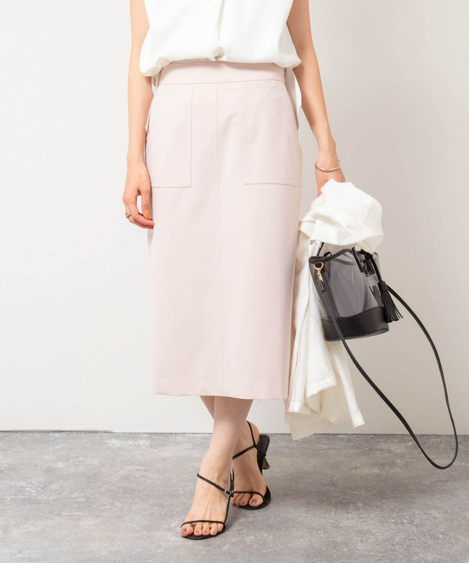 ・ドライタッチのリネンライクファブリックを使用したタイトスカート