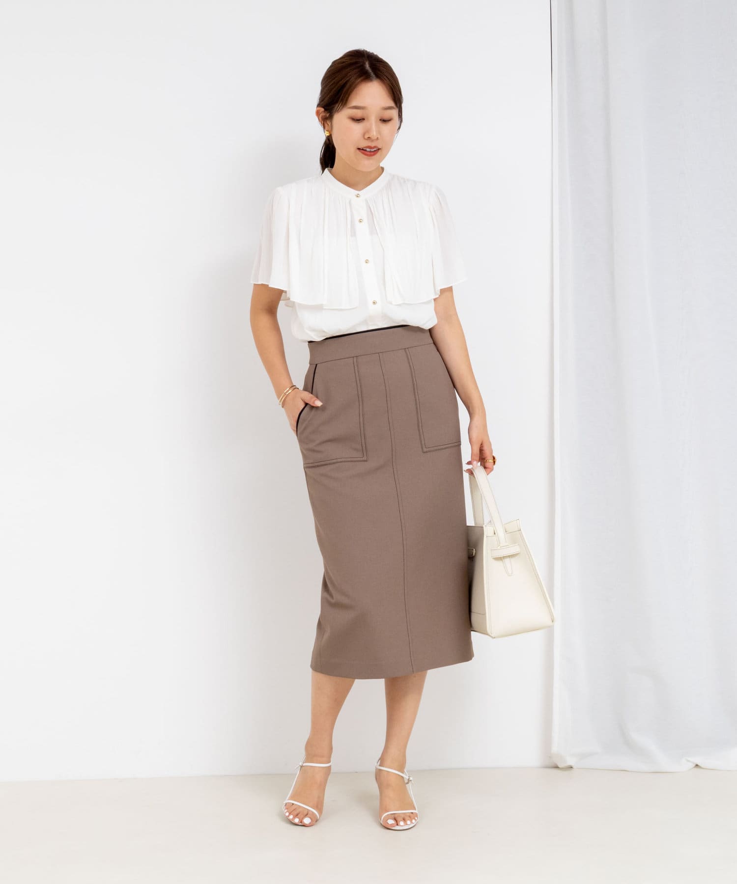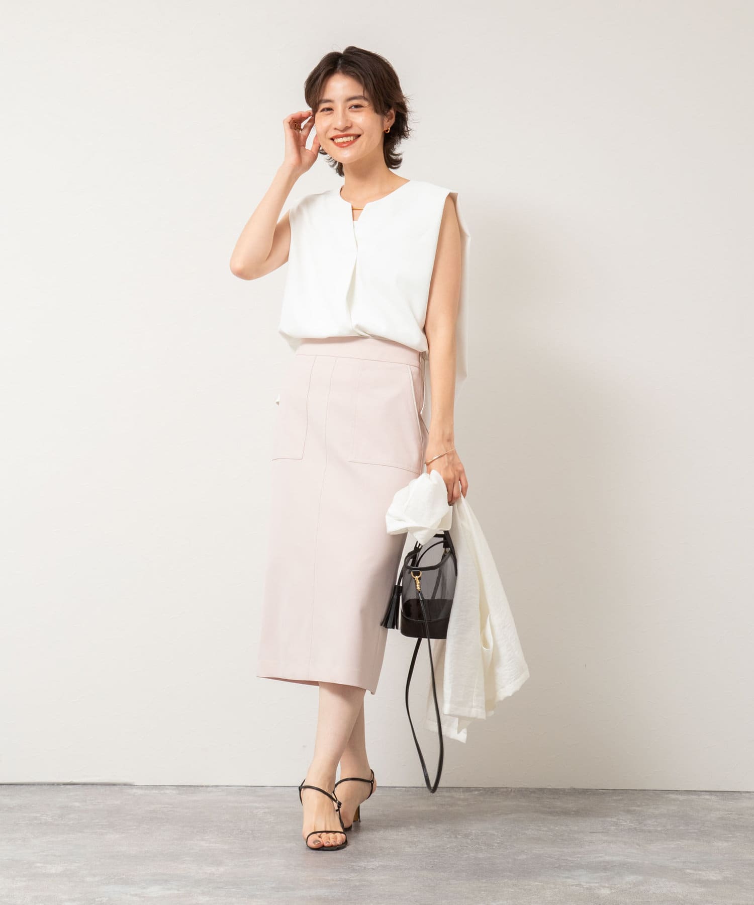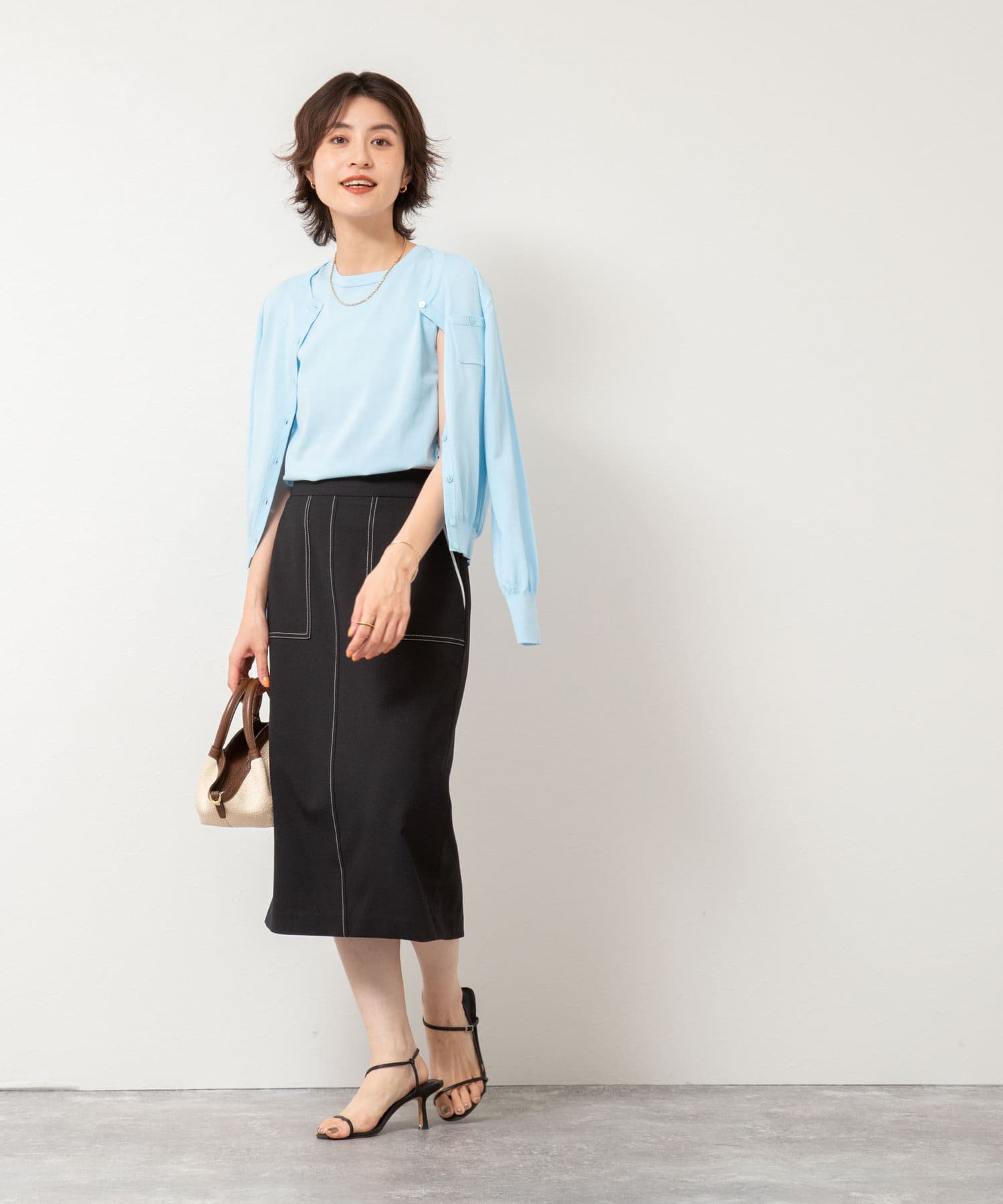 ・ドライタッチのリネンライクファブリックを使用したタイトスカート