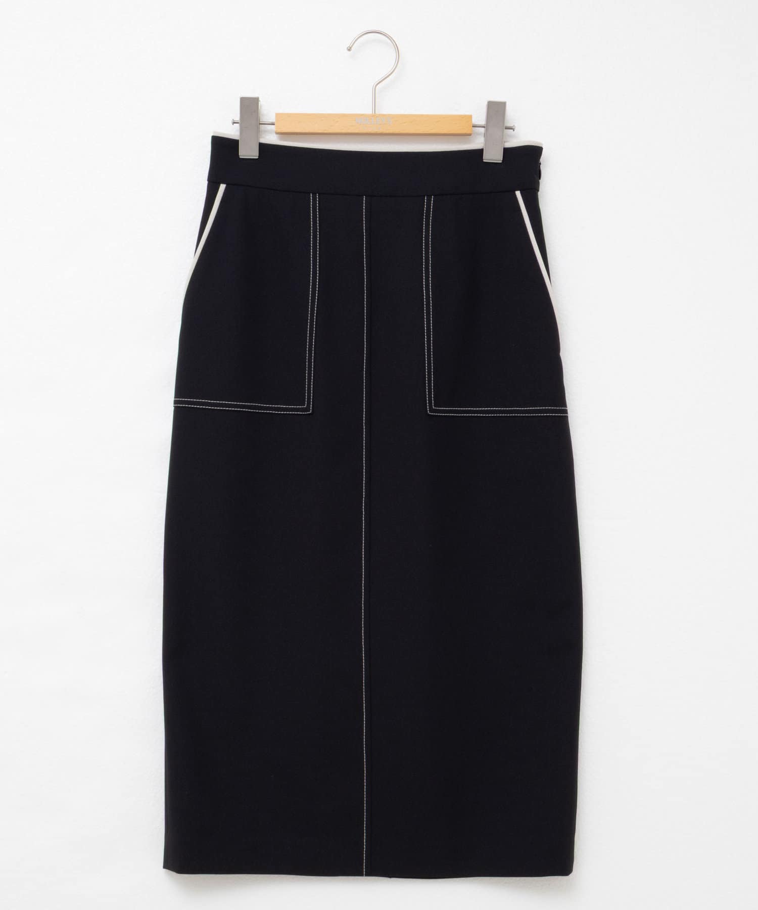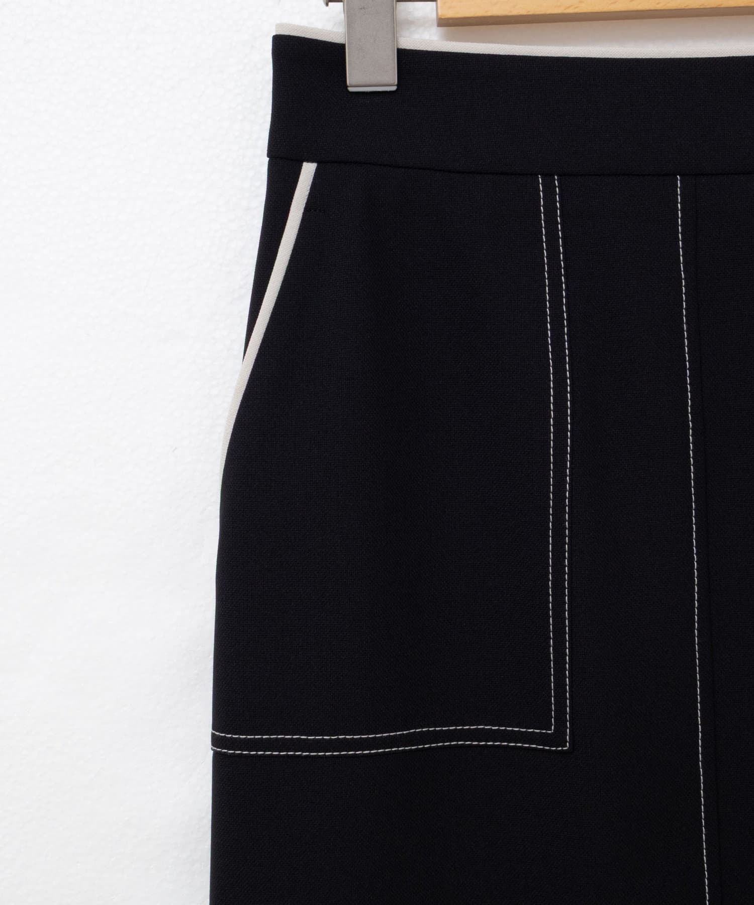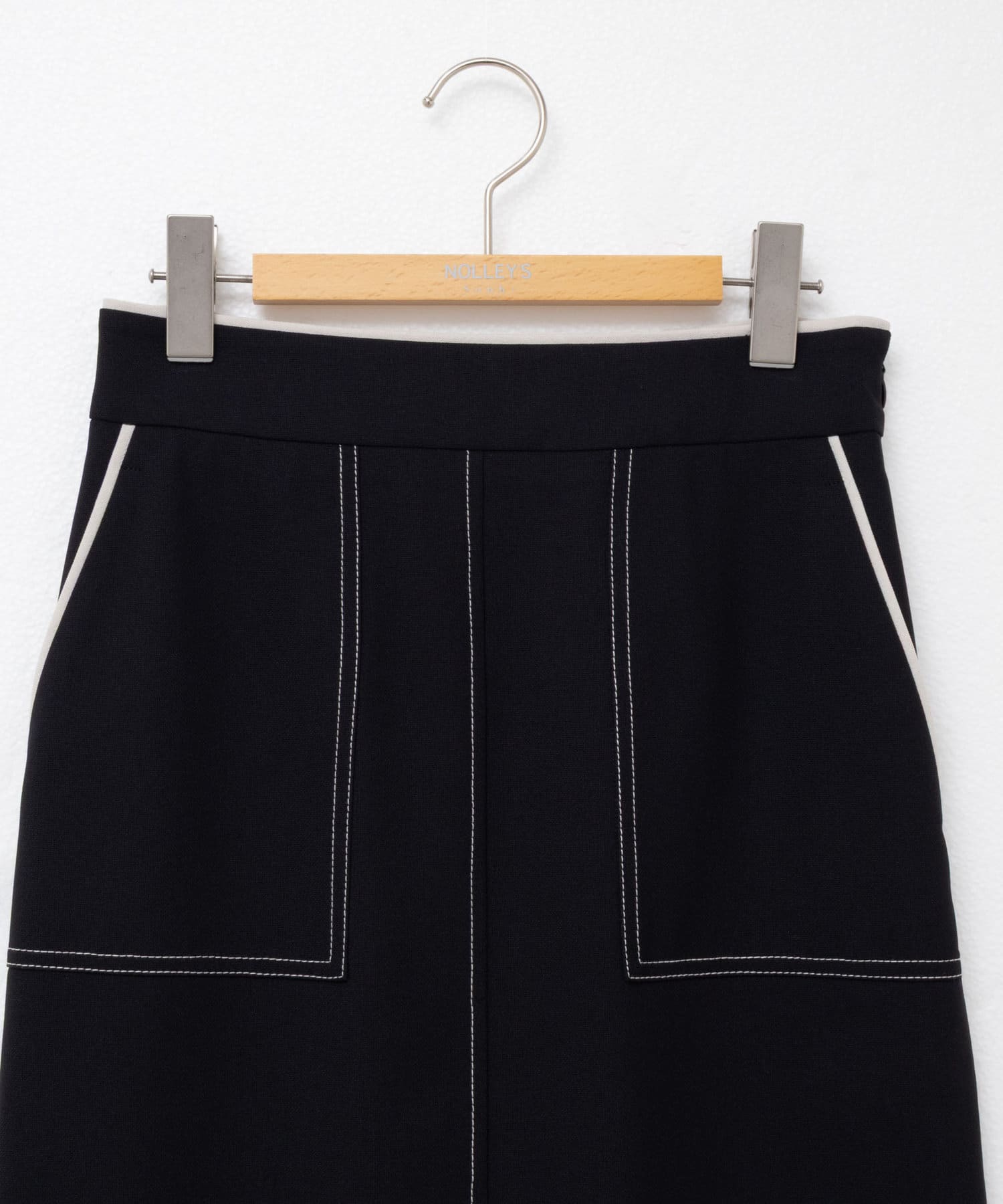 ・ウエストとポケット口の配色パイピングとステッチがポイントになった、シンプルなトップスにも相性の良い着映えスカート