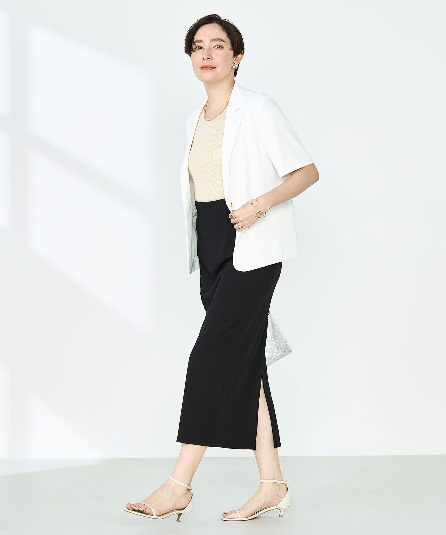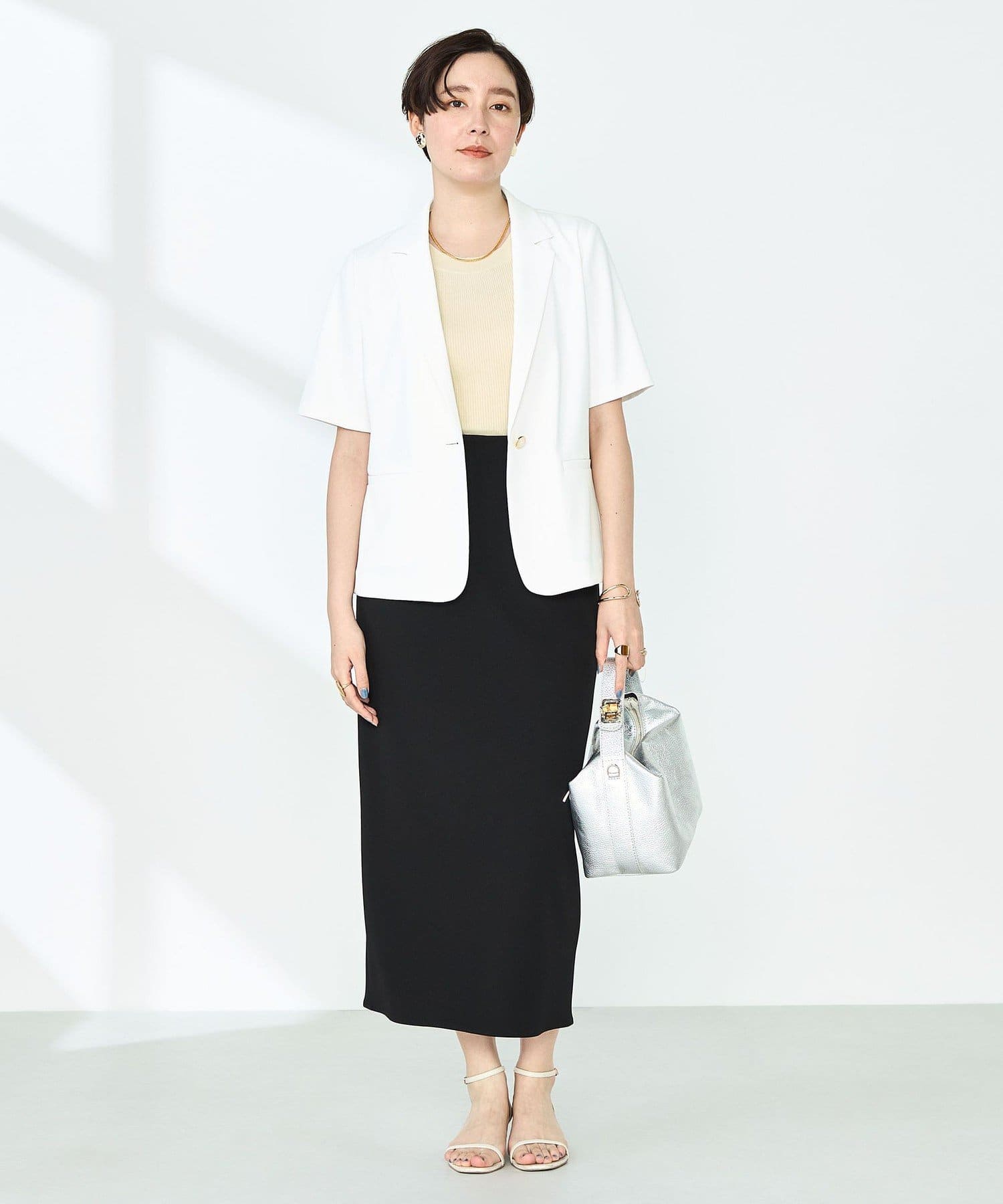 ・・オンオフ問わず幅広いシーンに活躍する、カットソー素材のタイトスカート