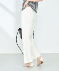 ・太もものラインを細めに絞ったセミフレアシルエットの美脚パンツ
