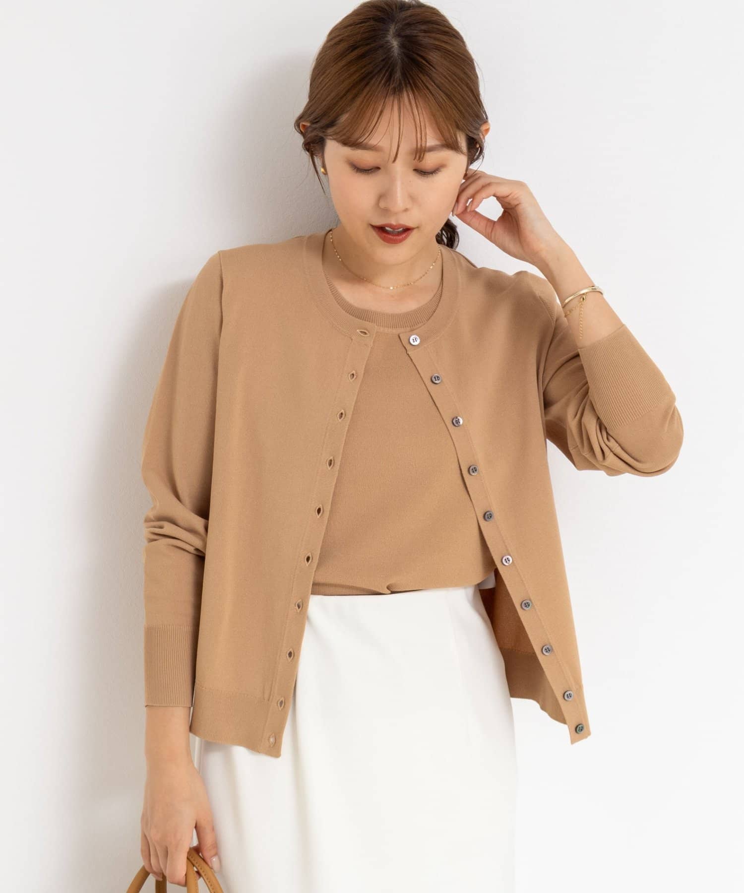 《アンサンブル対応/手洗い可能》マルチファンクションクルーネックカーディガン