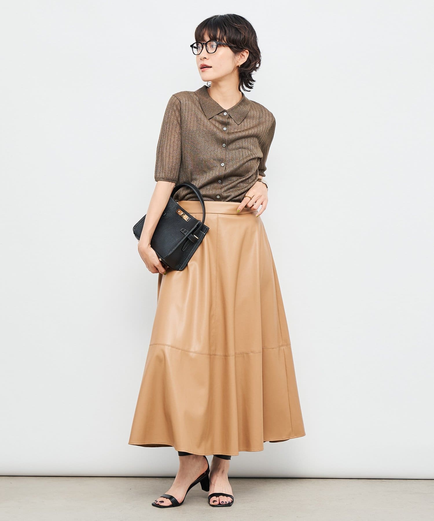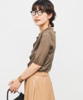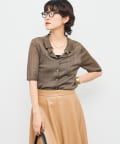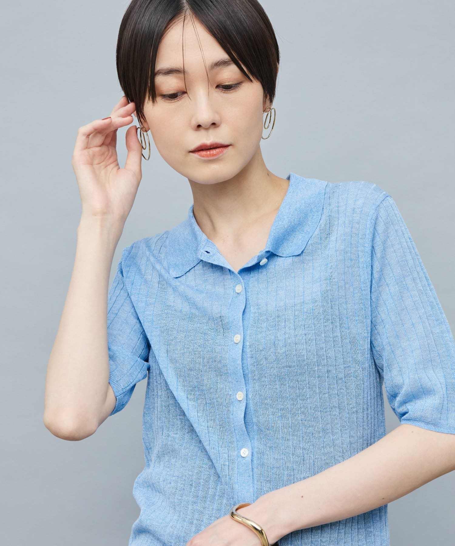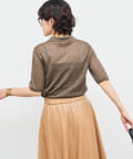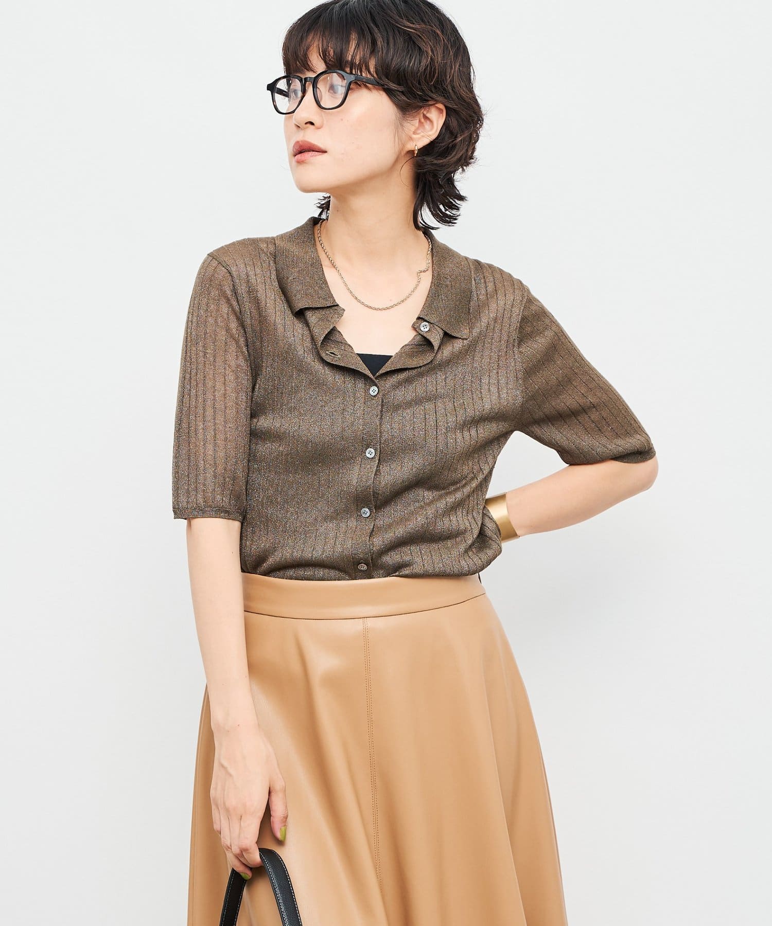 ・光沢とシアー感のある素材を使用したポロ衿カーディガン
