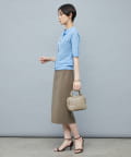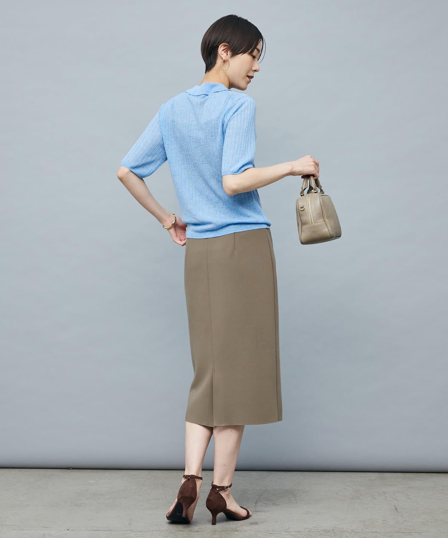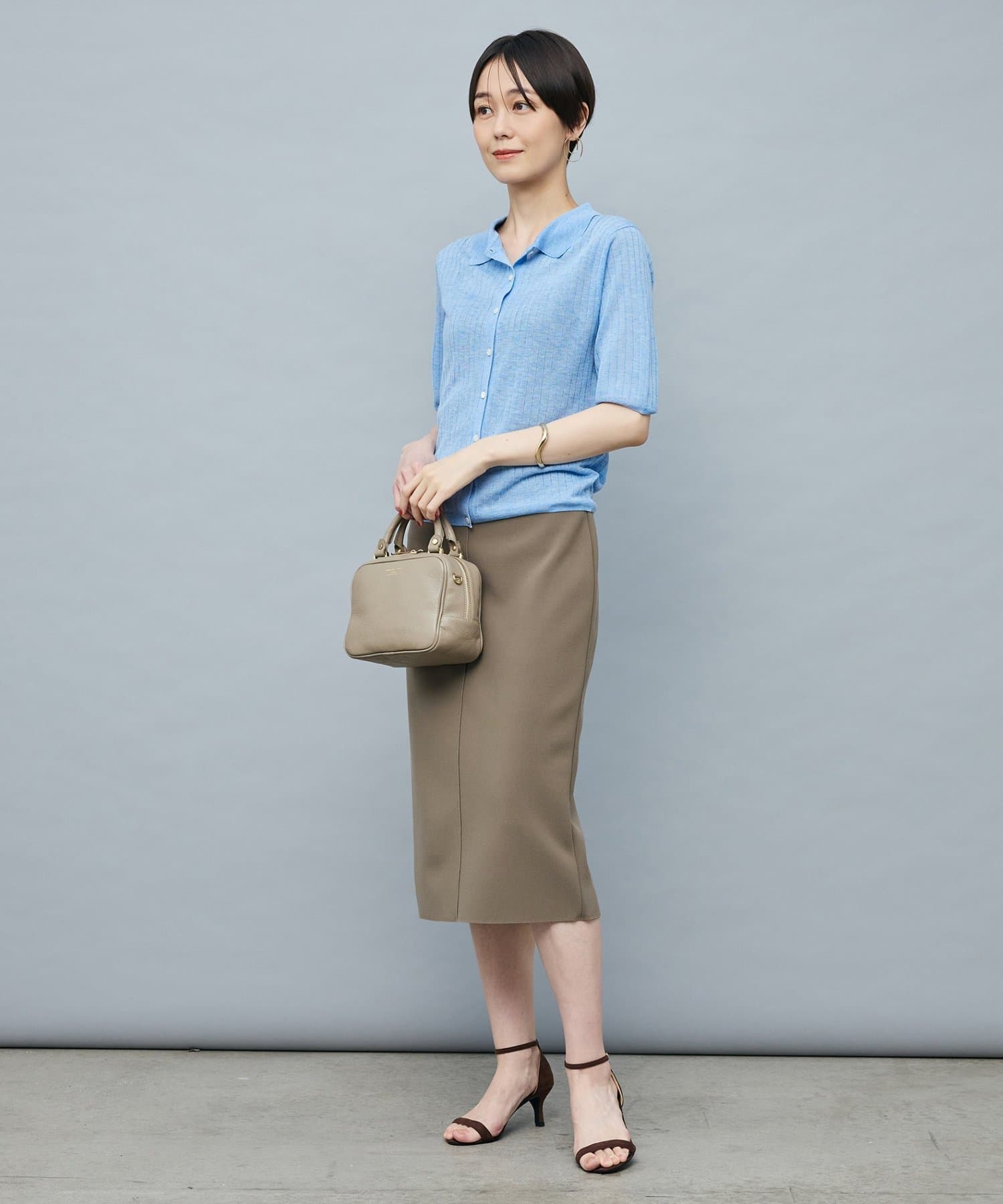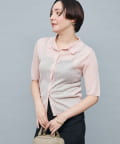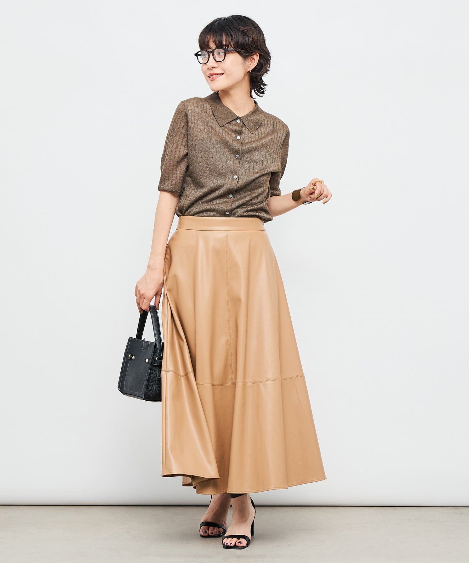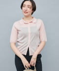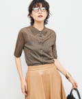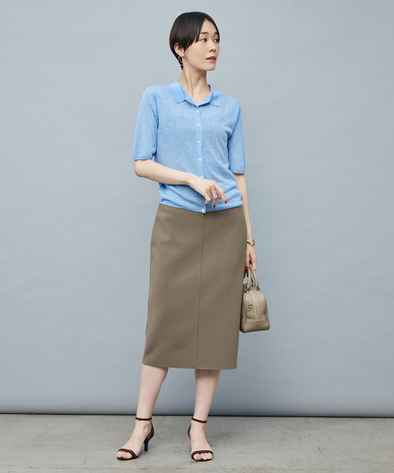 ・光沢とシアー感のある素材を使用したポロ衿カーディガン