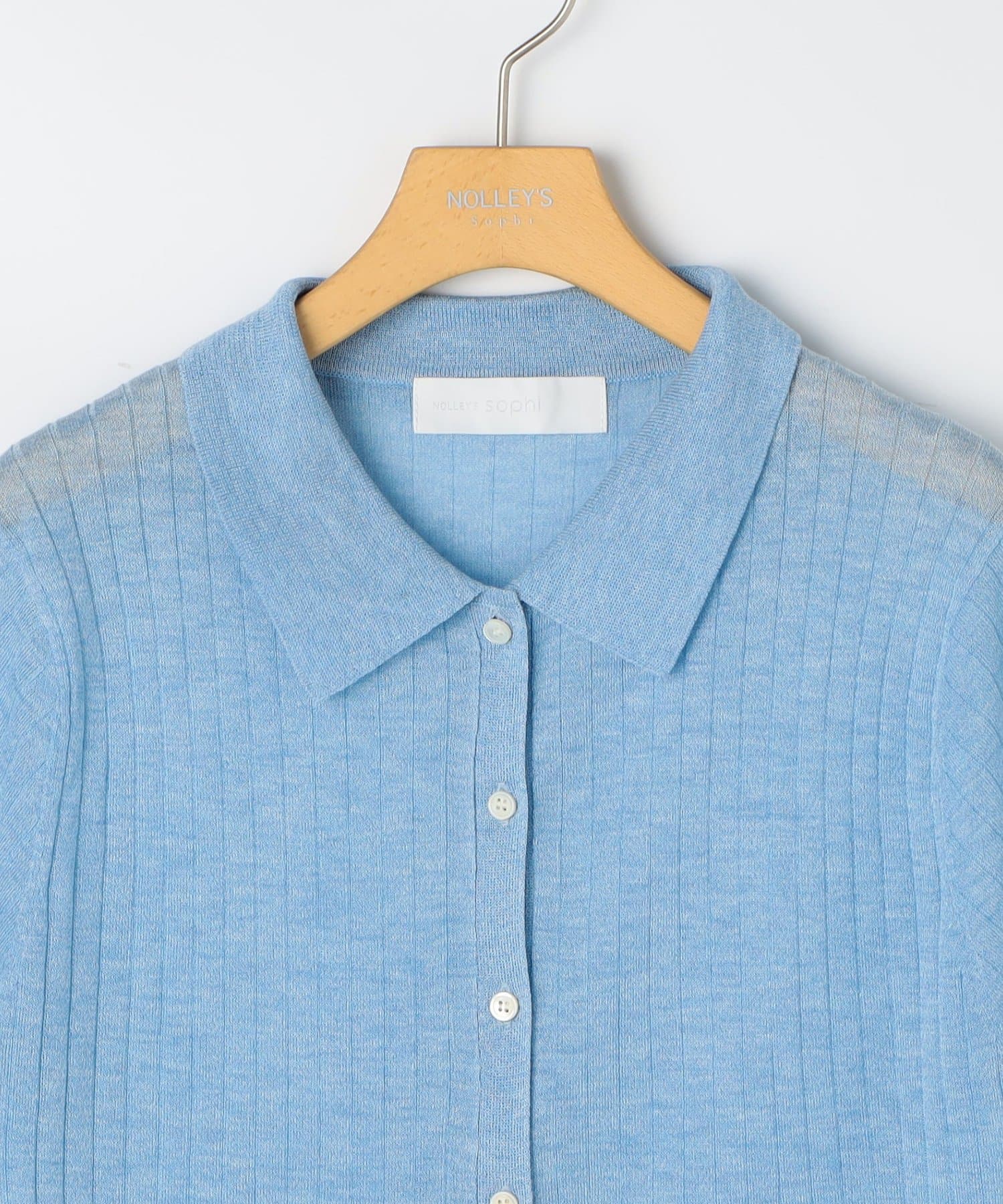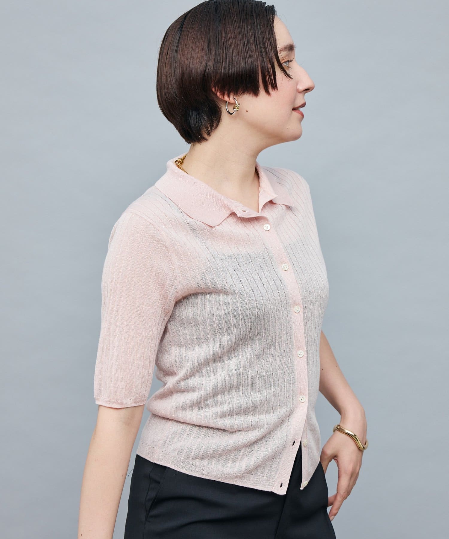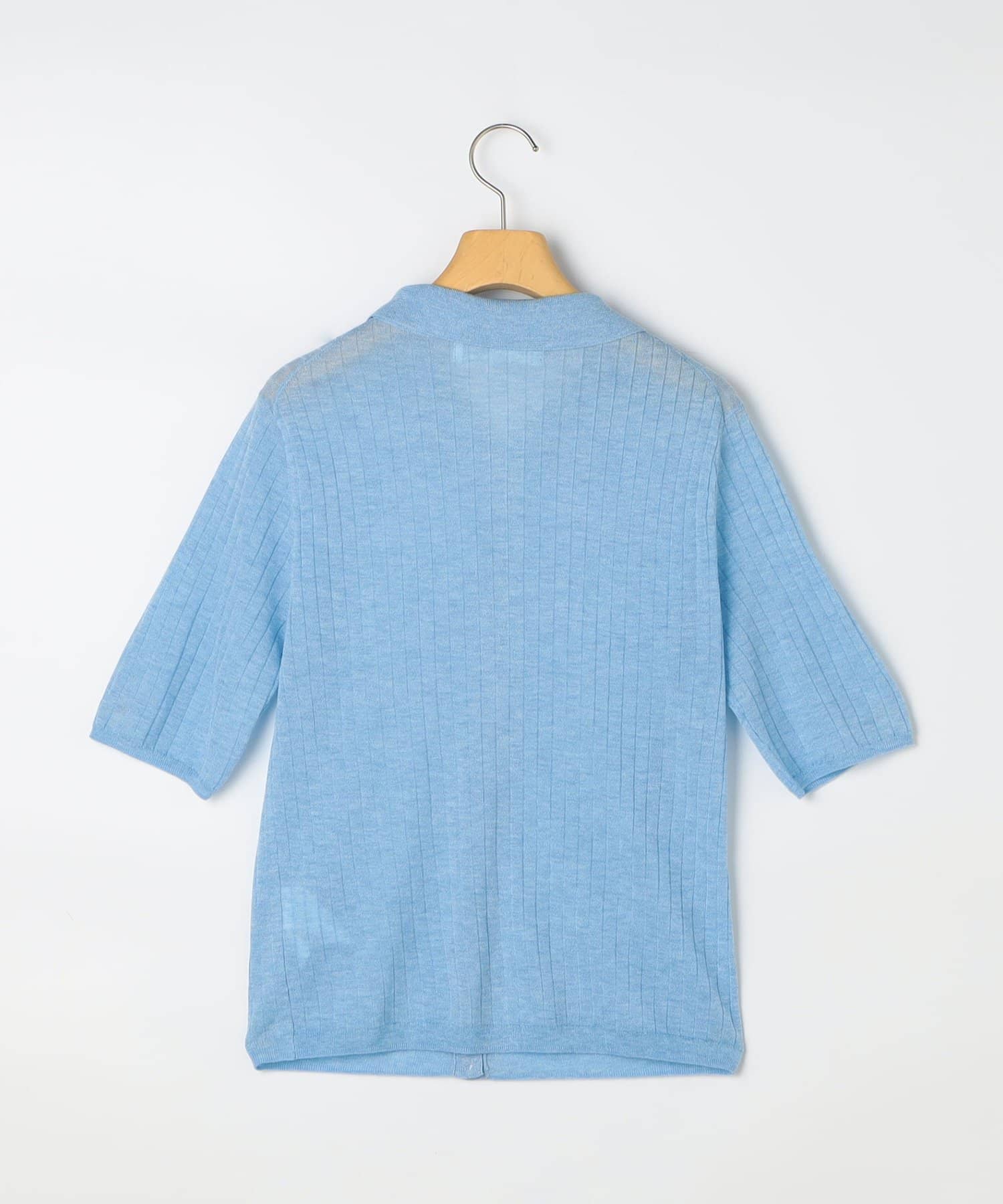 《手洗い可能》ワイドリブシアーポロ衿カーディガン