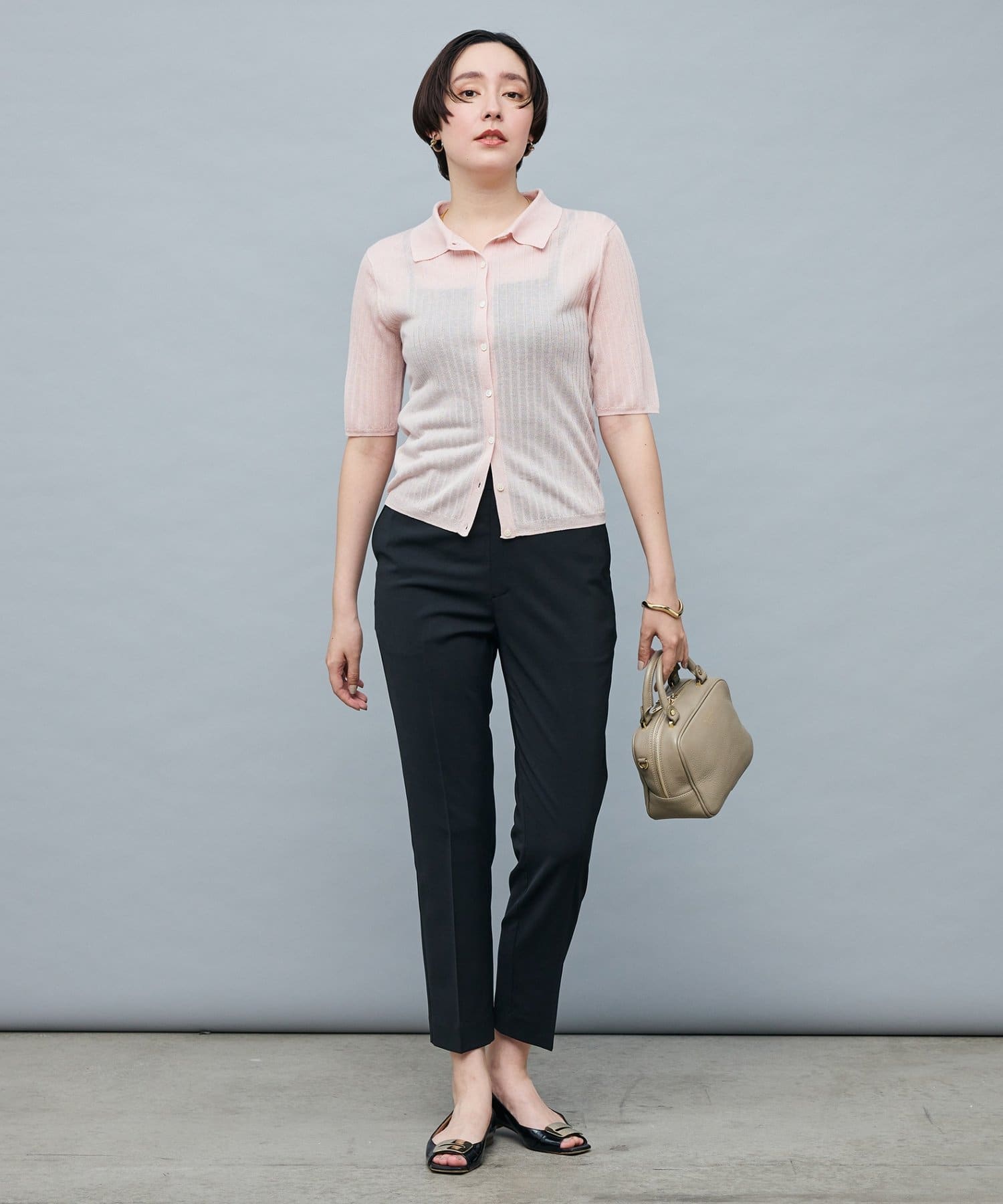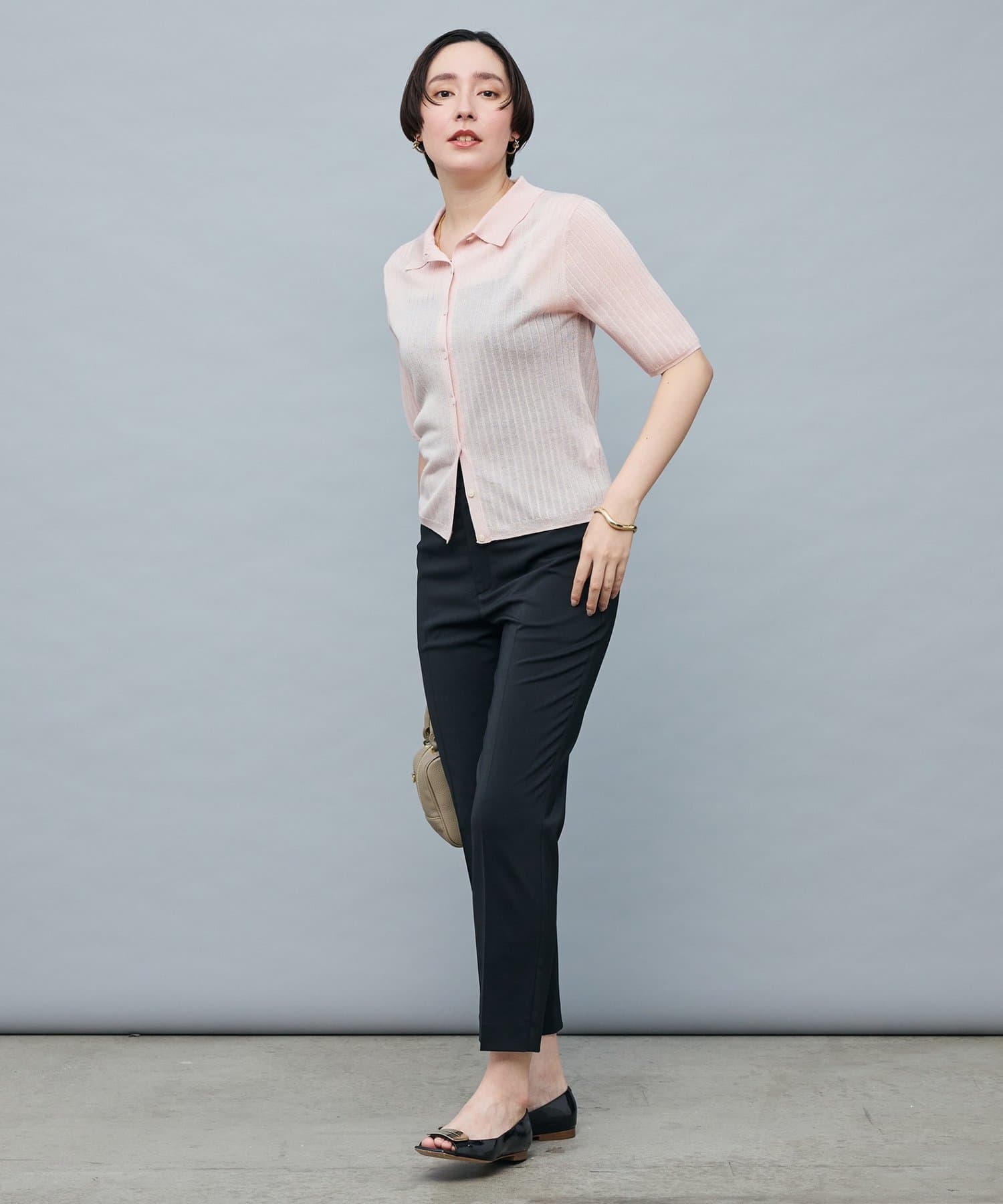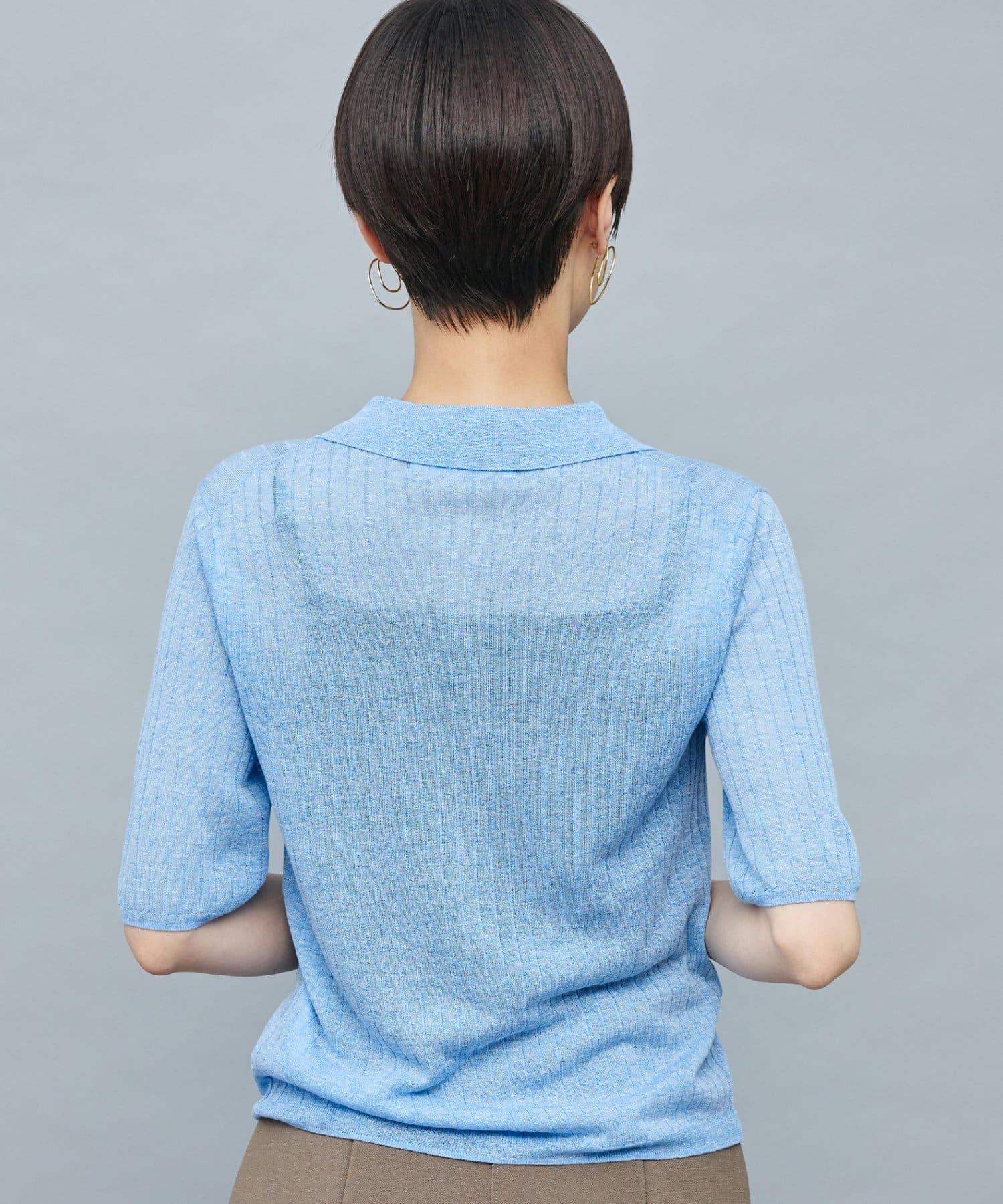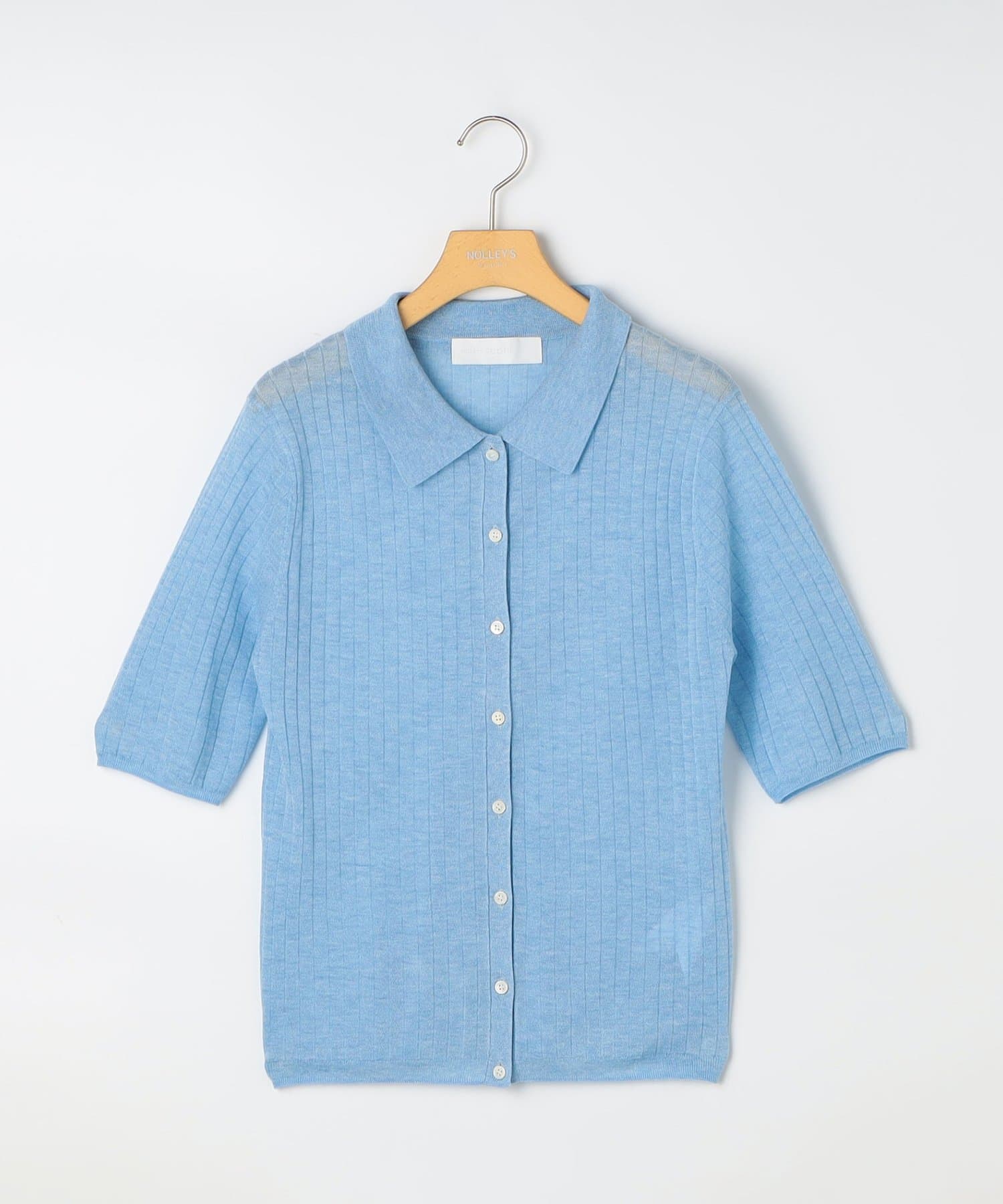 《手洗い可能》ワイドリブシアーポロ衿カーディガン