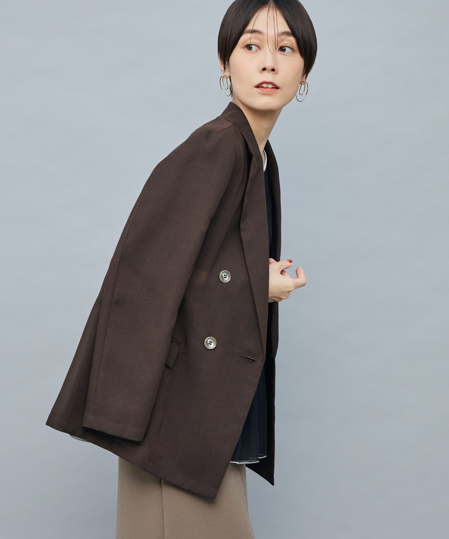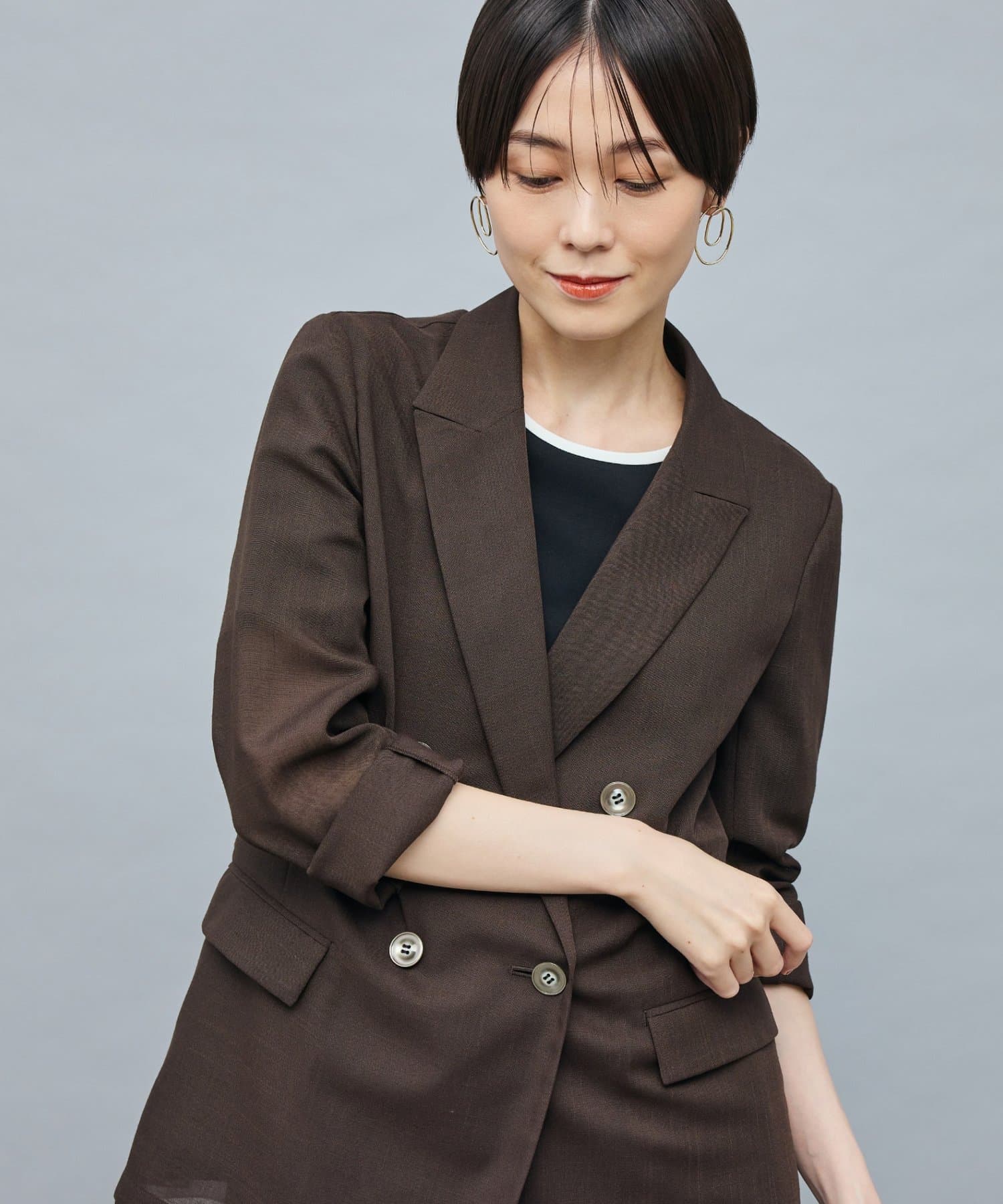 ・秋カラーながら、透け感があり、見た目にも涼しいジャケット