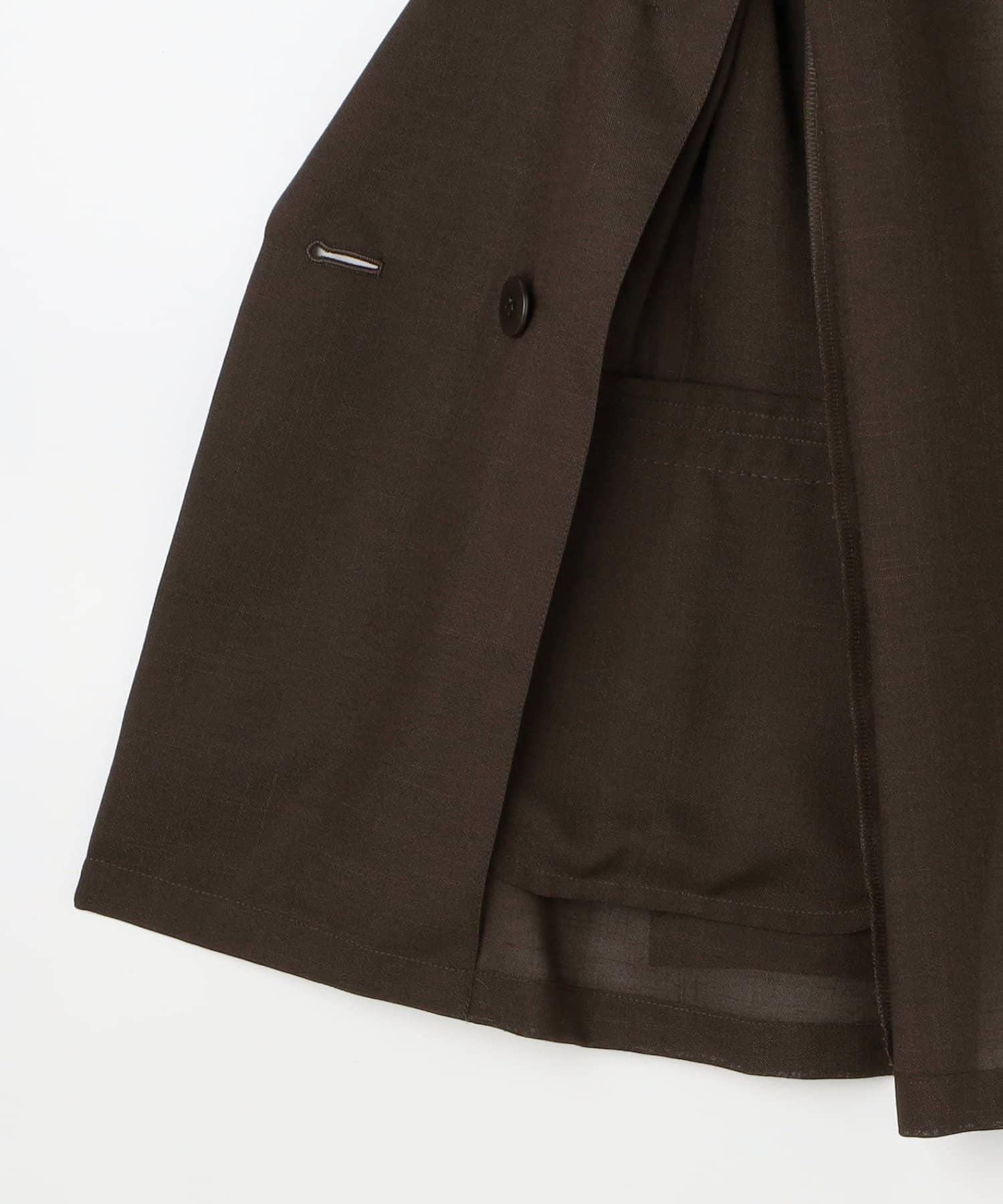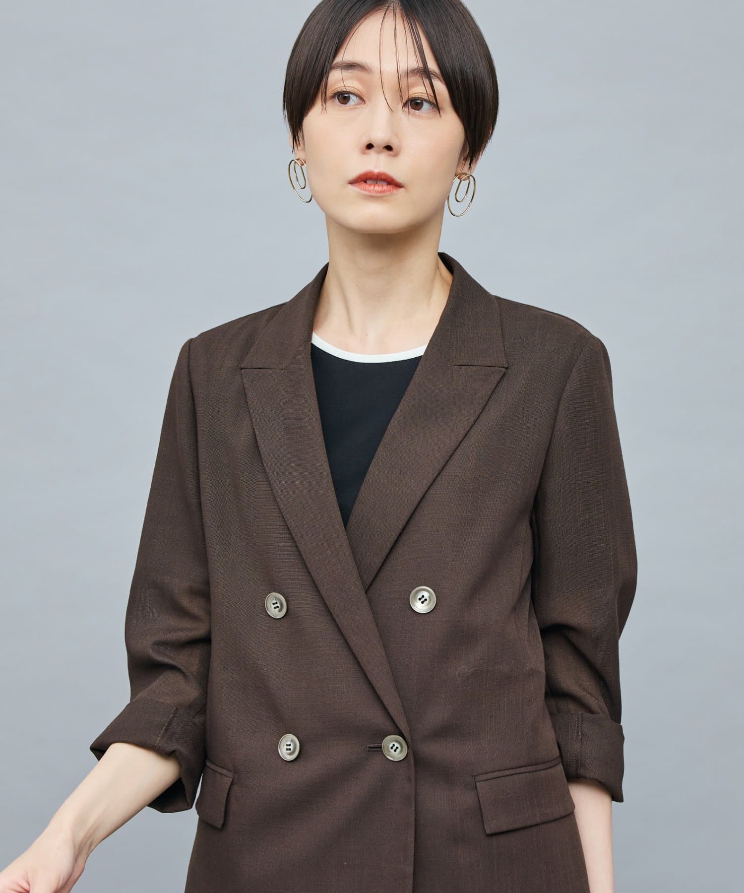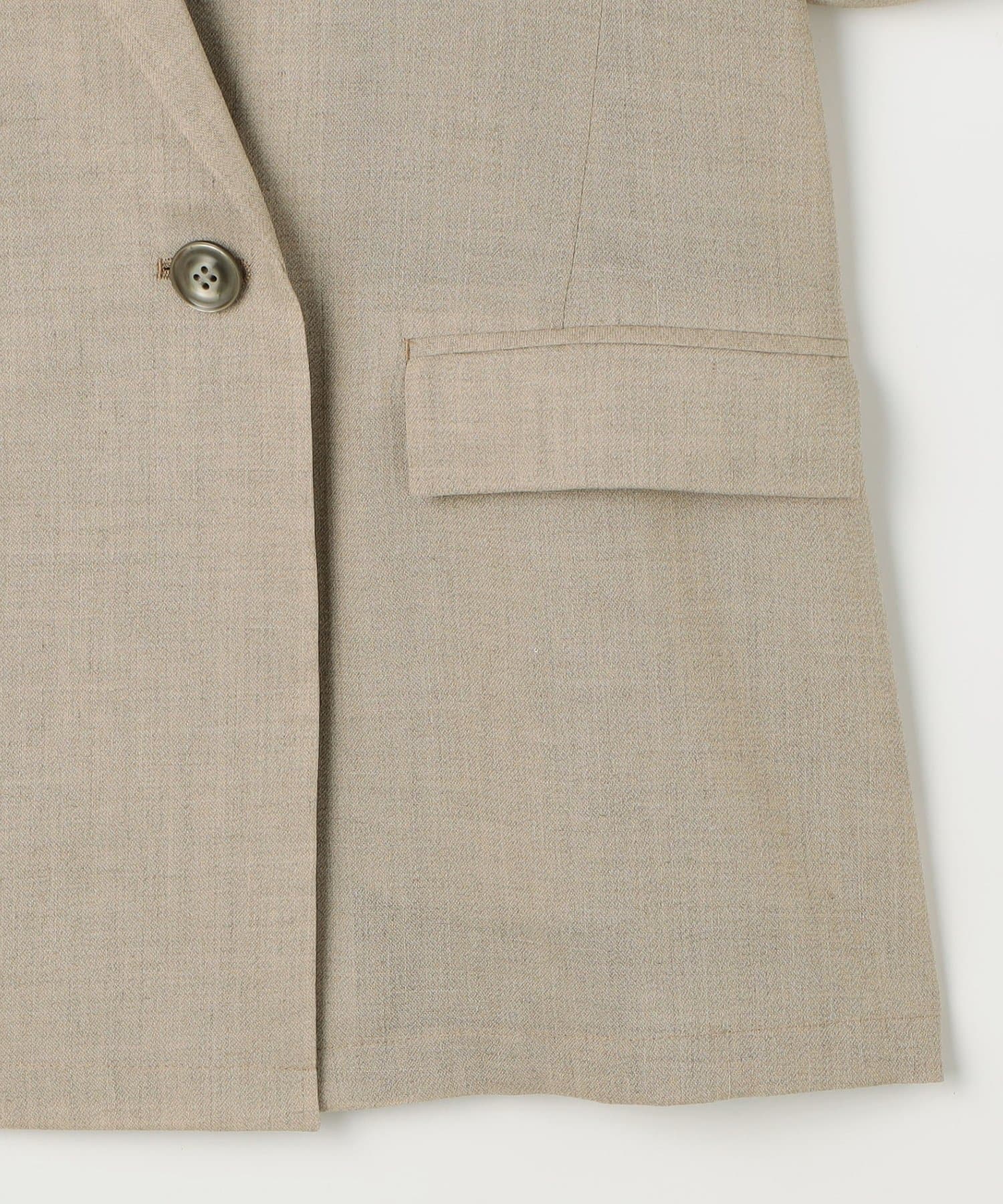 ・まるでリネンのような表情のポリエステル素材を使用したシアージャケット
