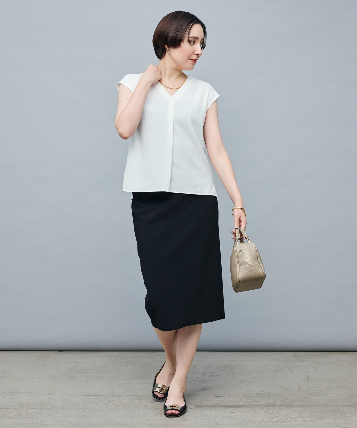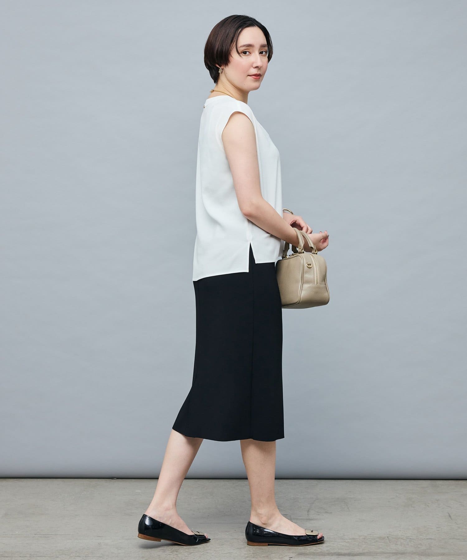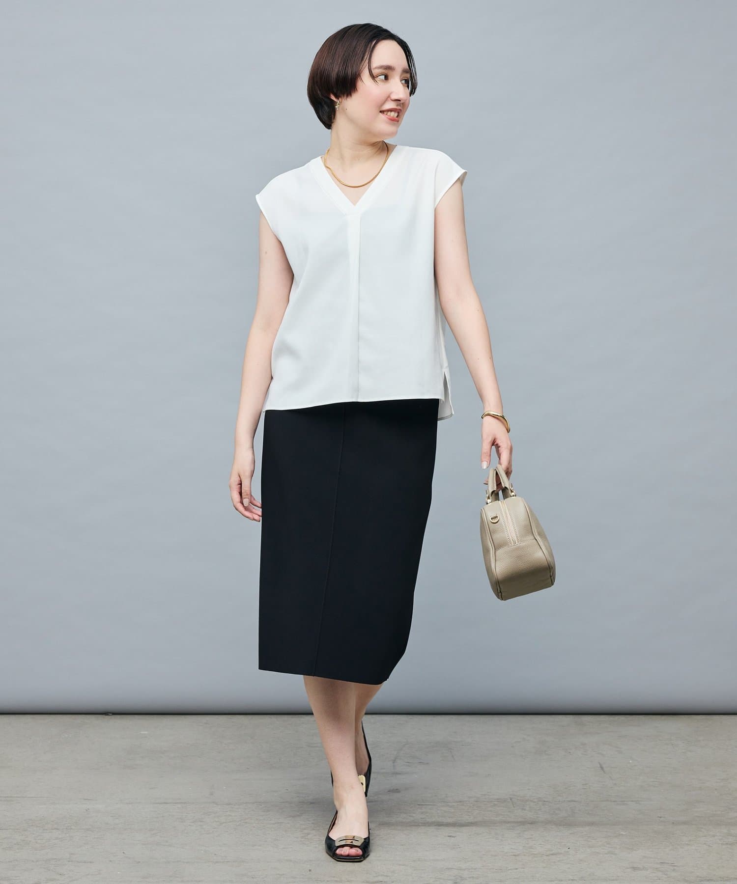 ・しっかりとした肉感がり、身体のラインを拾いにくく、スタイルアップが叶う1枚