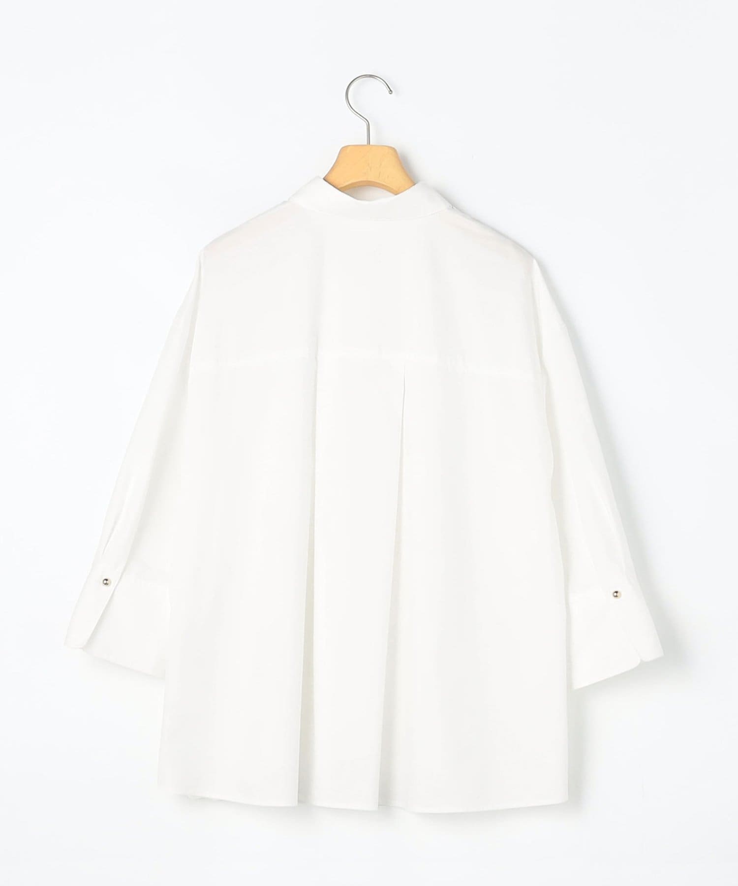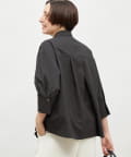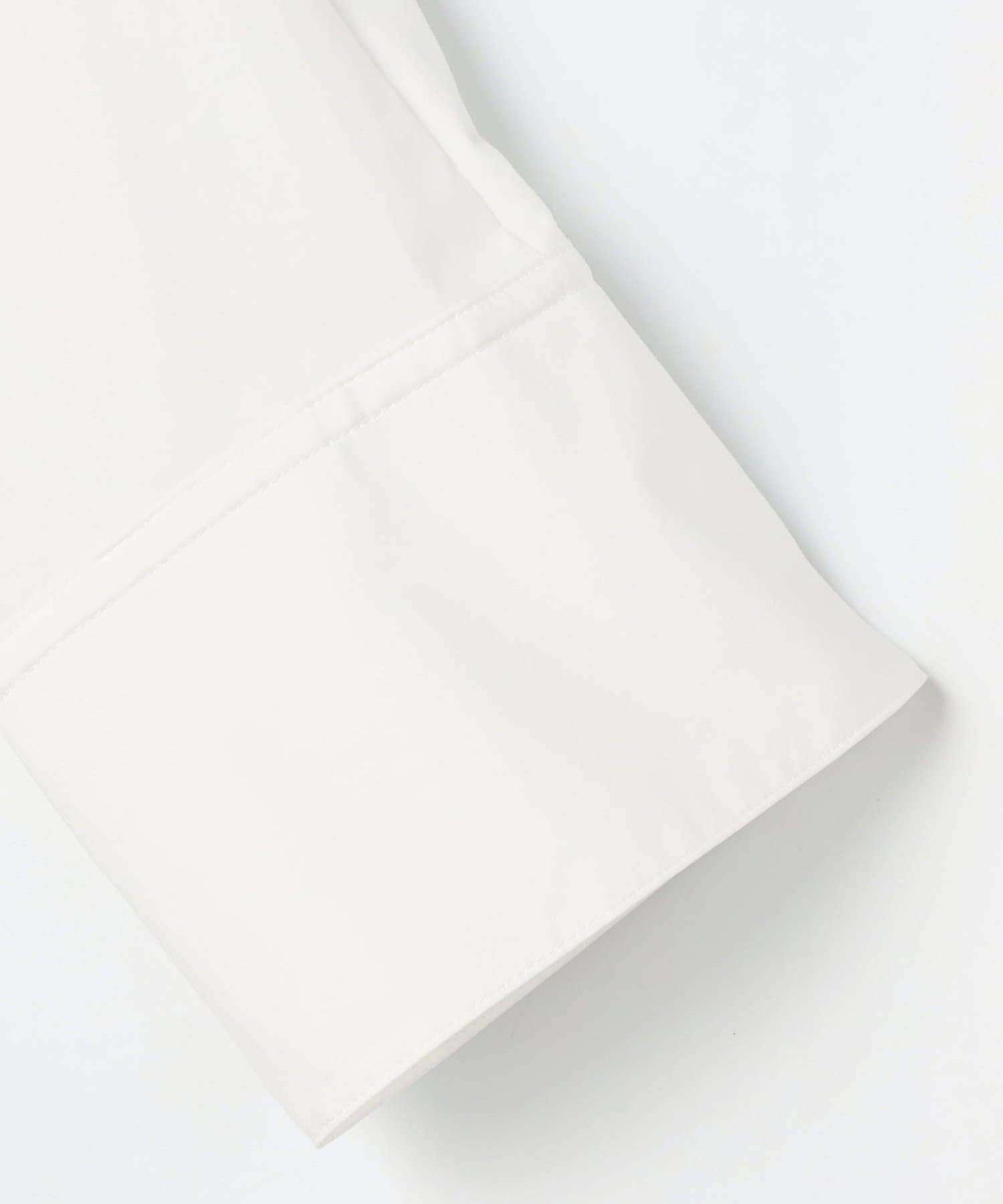 ・後ろ身頃と袖はポリエステル、ナイロン混の軽くてきれいめなシャツ素材を使用