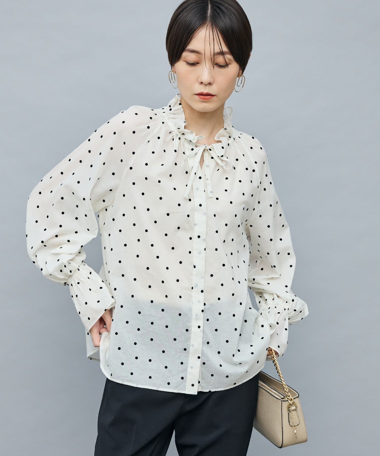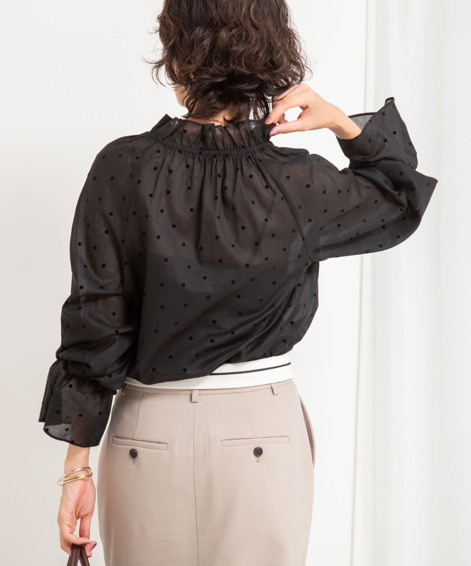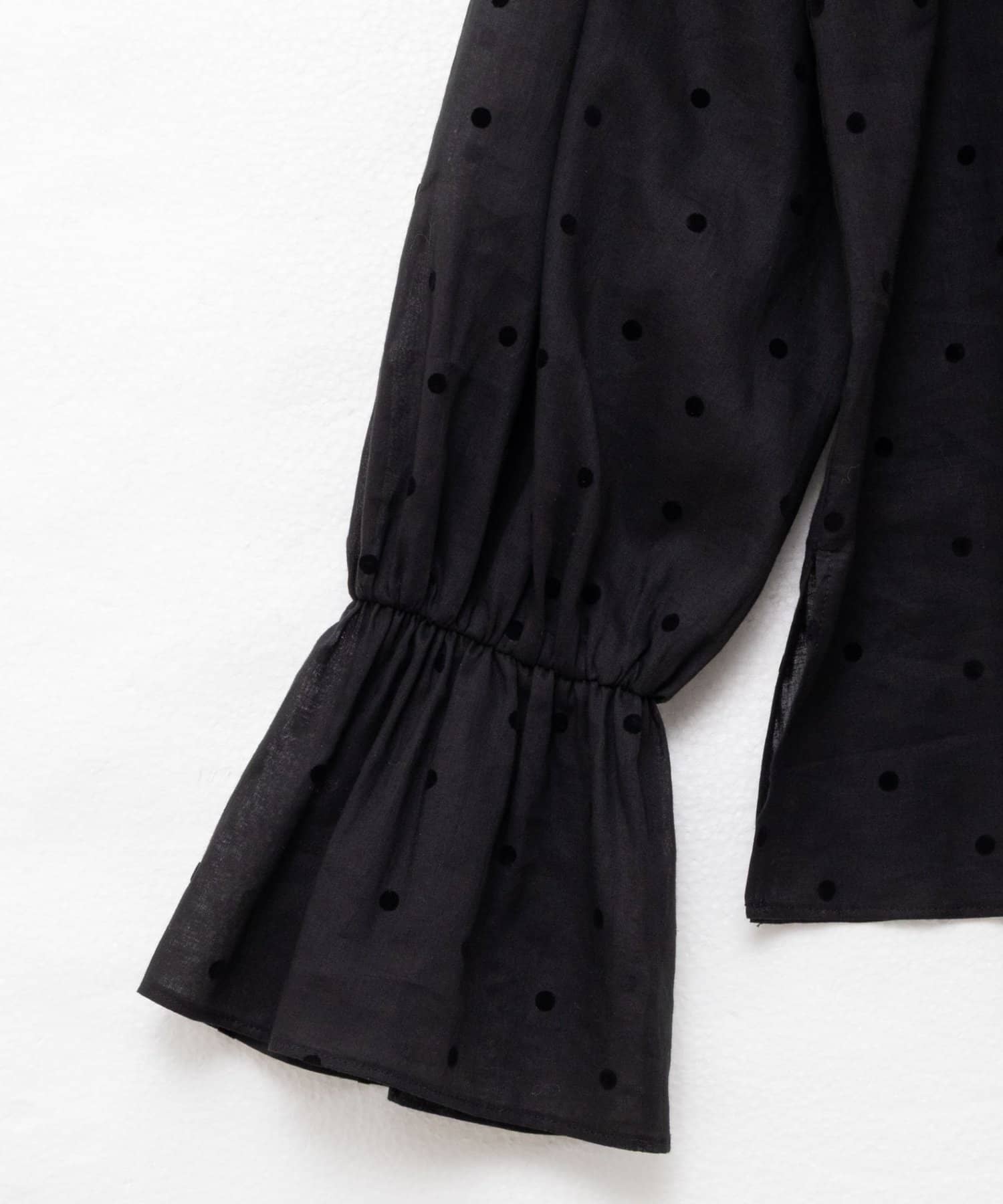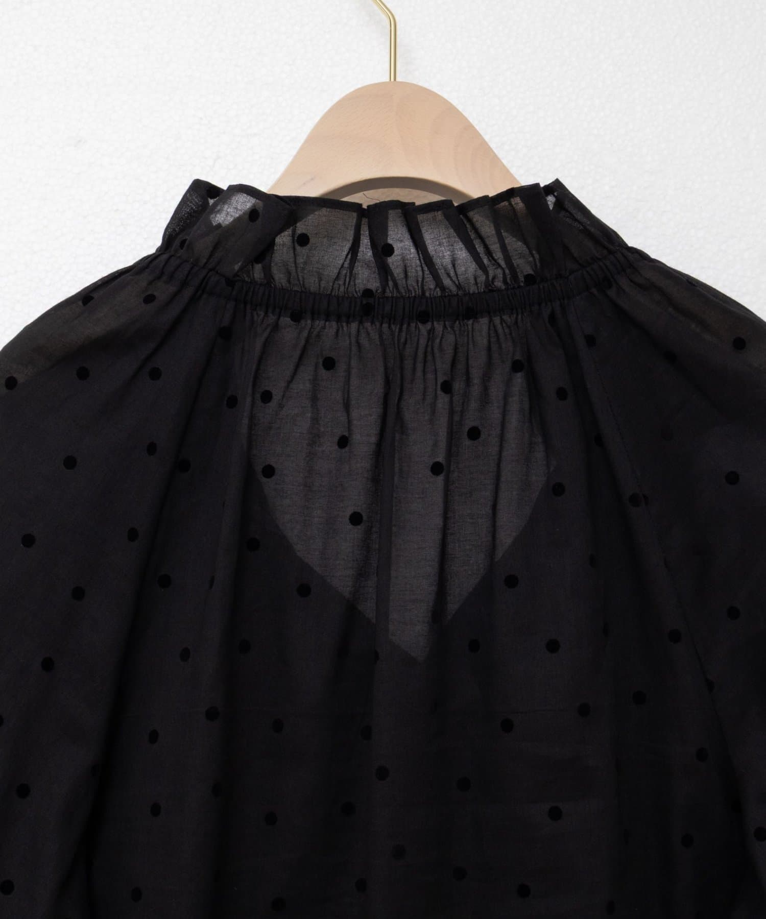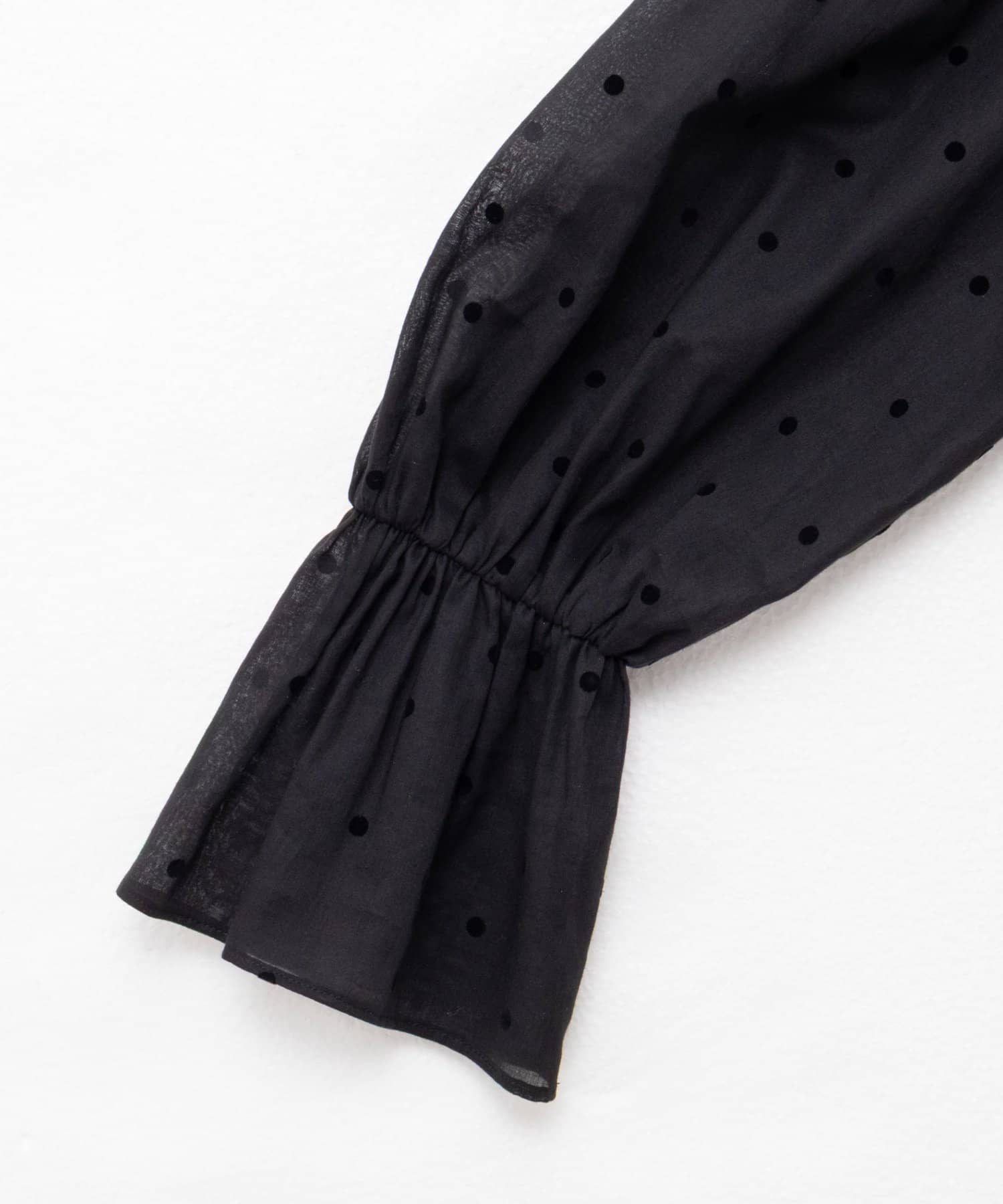 ・フロッキーでドットプリントを施した透け感のあるコットンローン素材を使用したブラウス