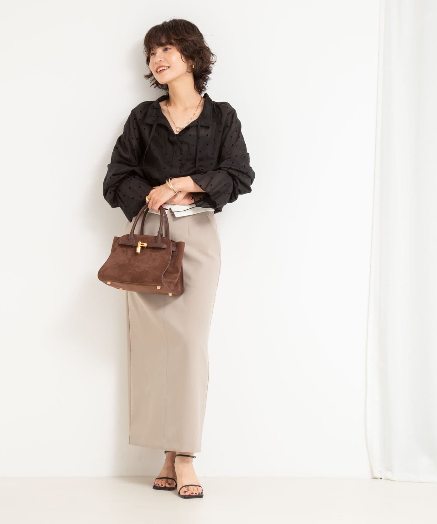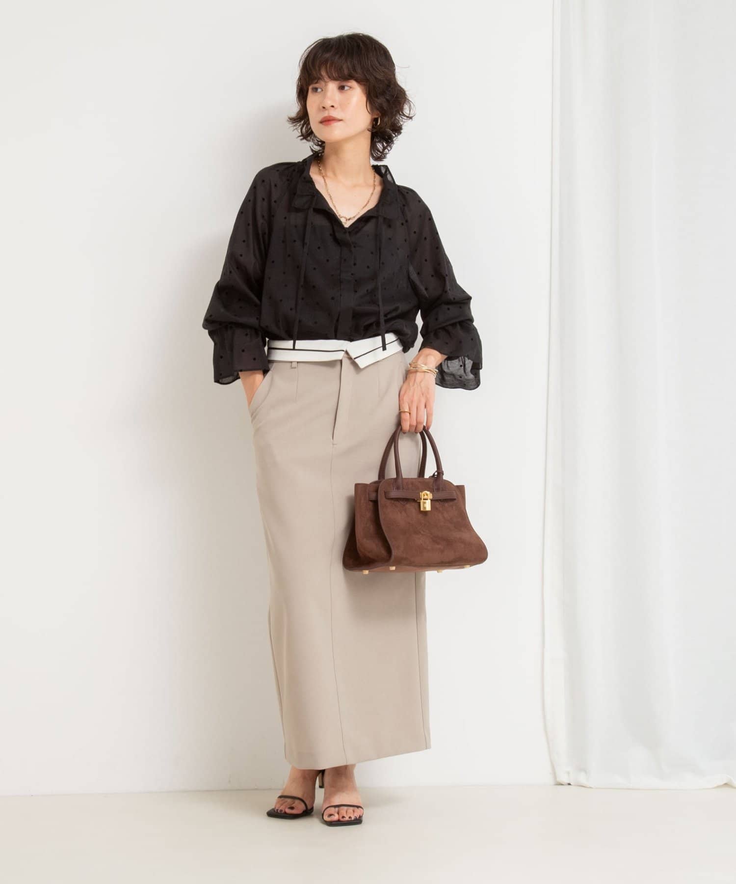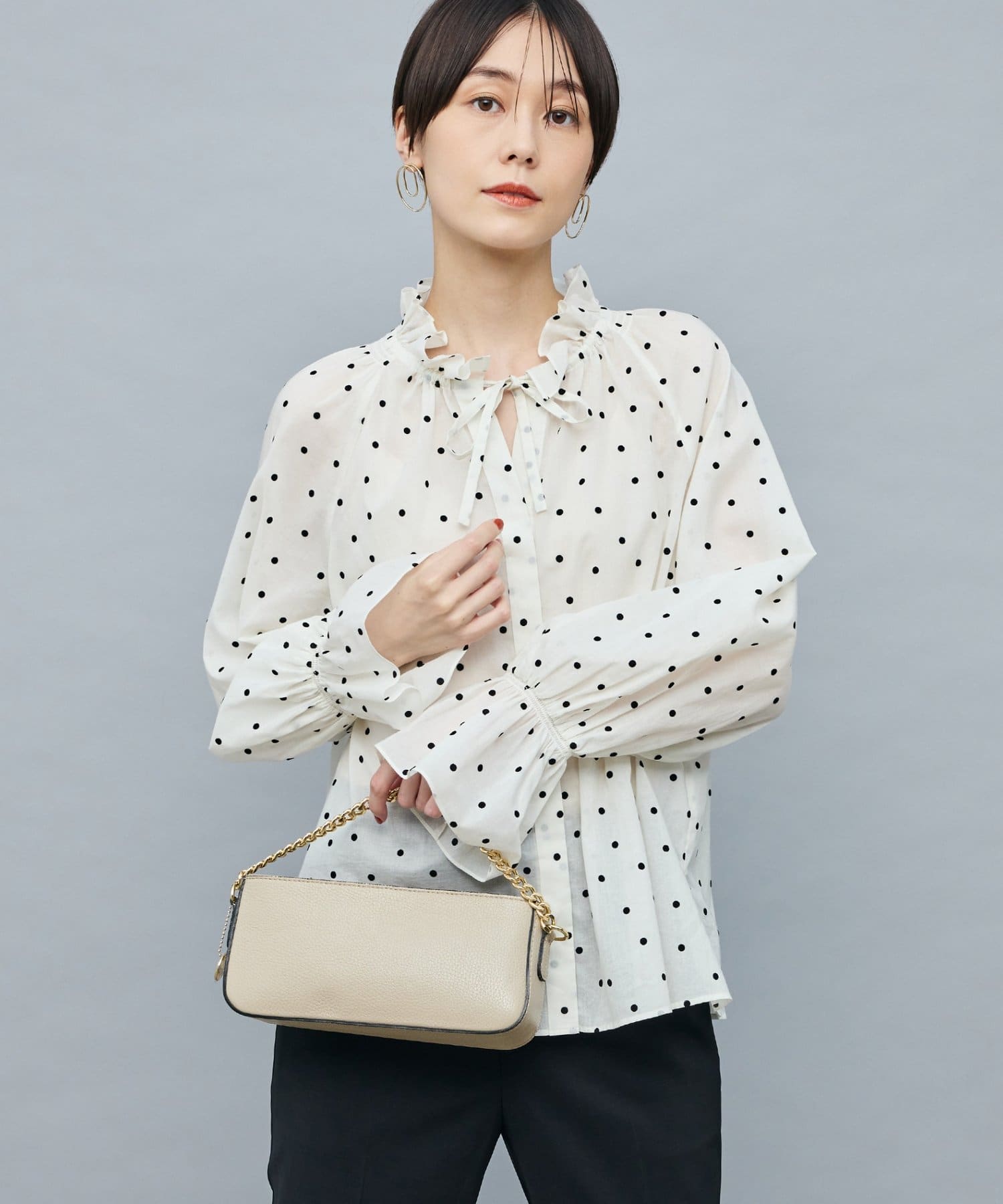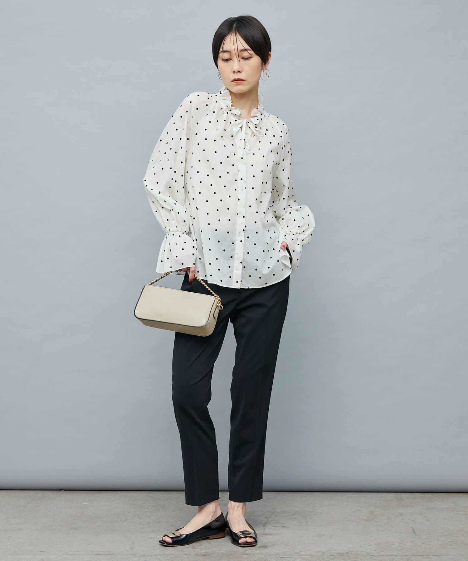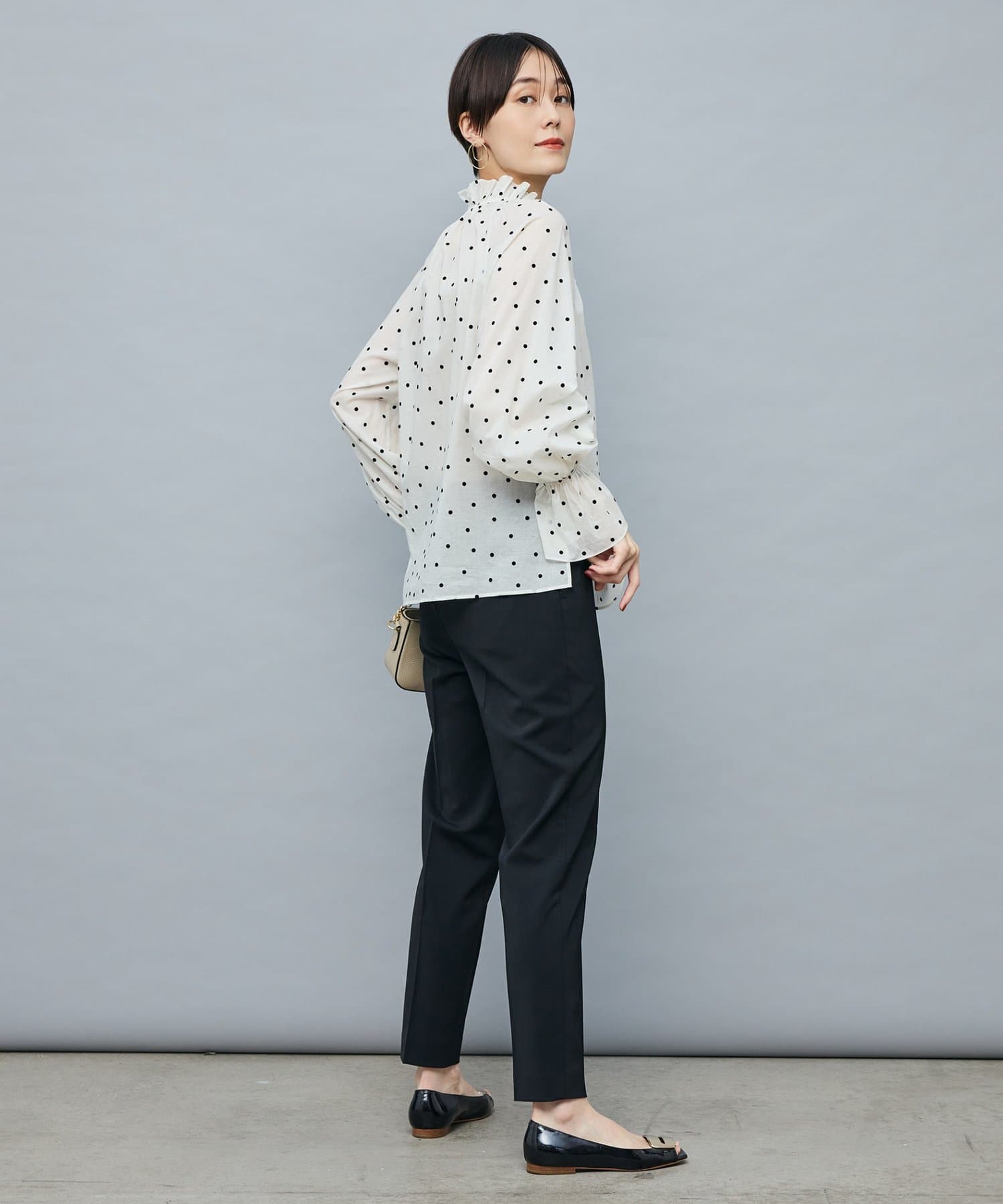 ・フロッキーでドットプリントを施した透け感のあるコットンローン素材を使用したブラウス