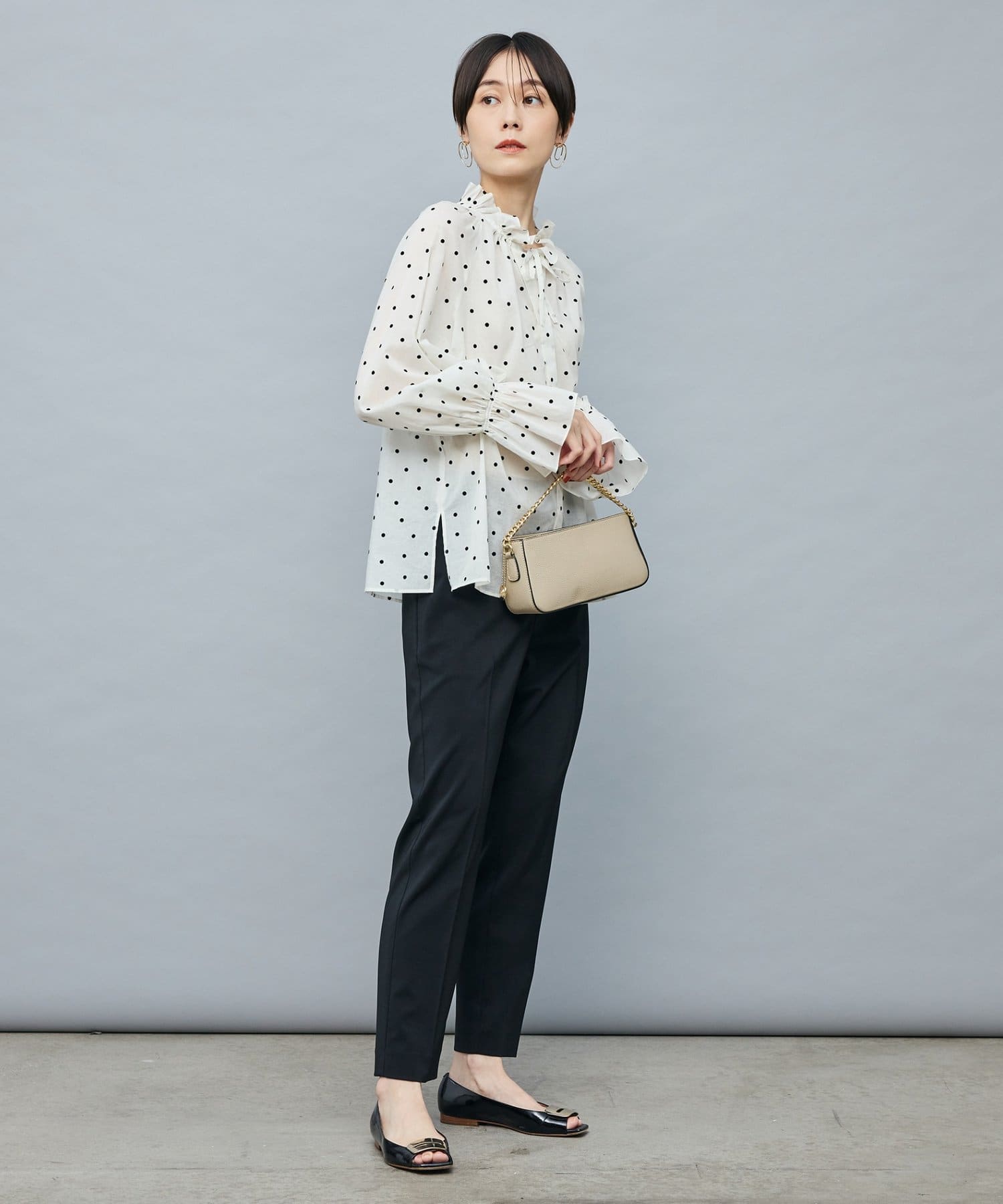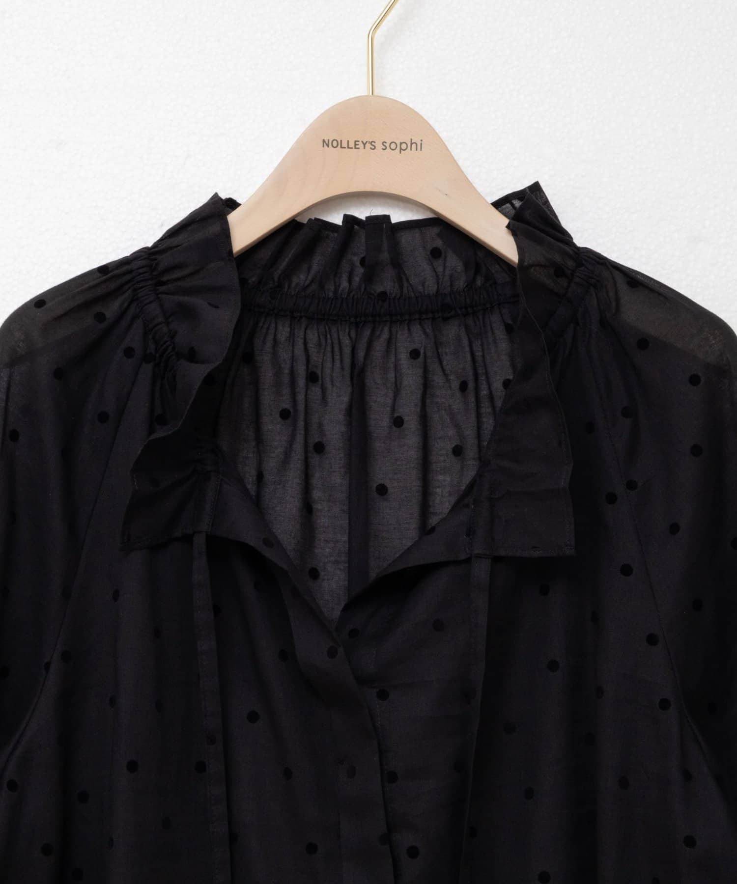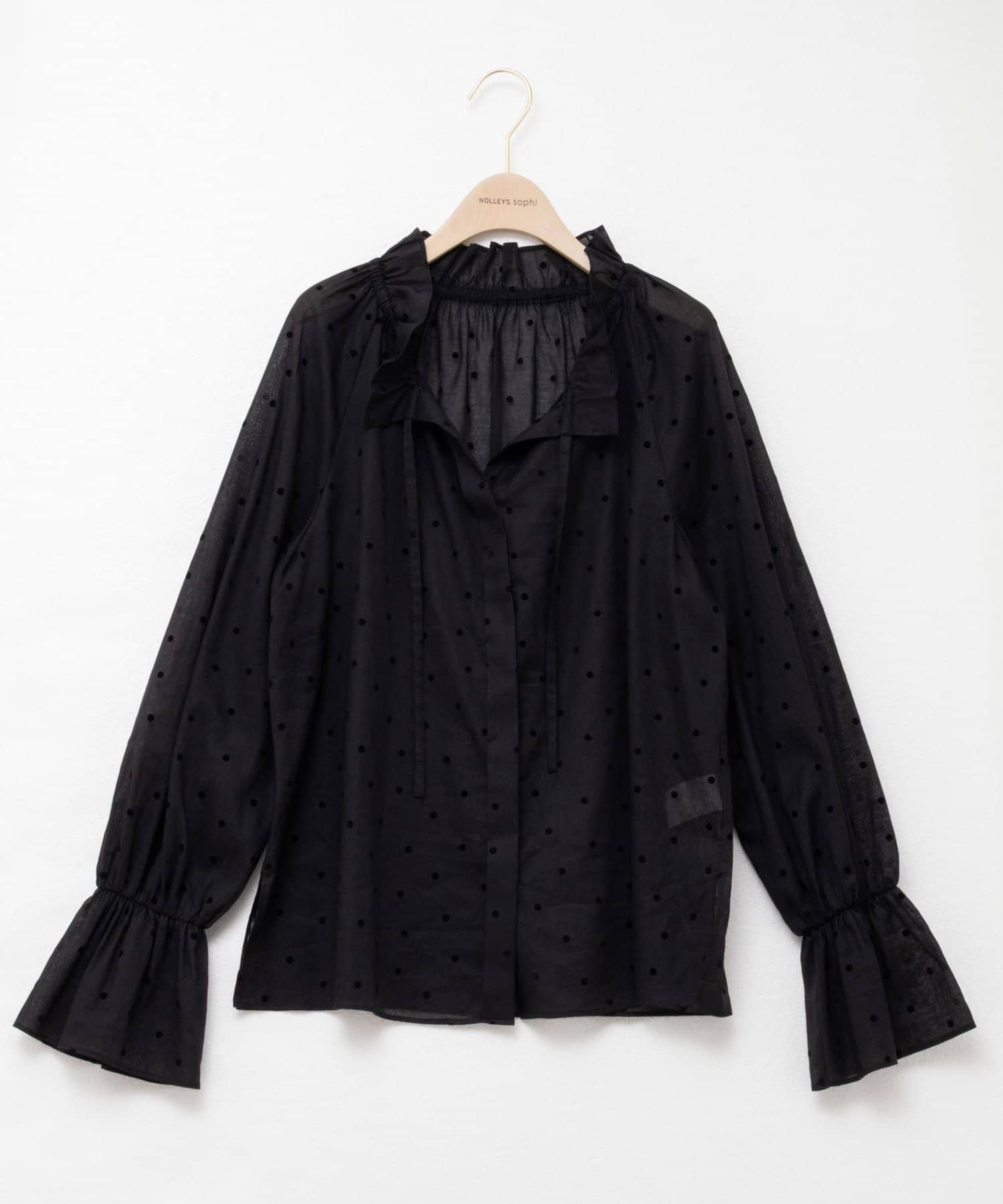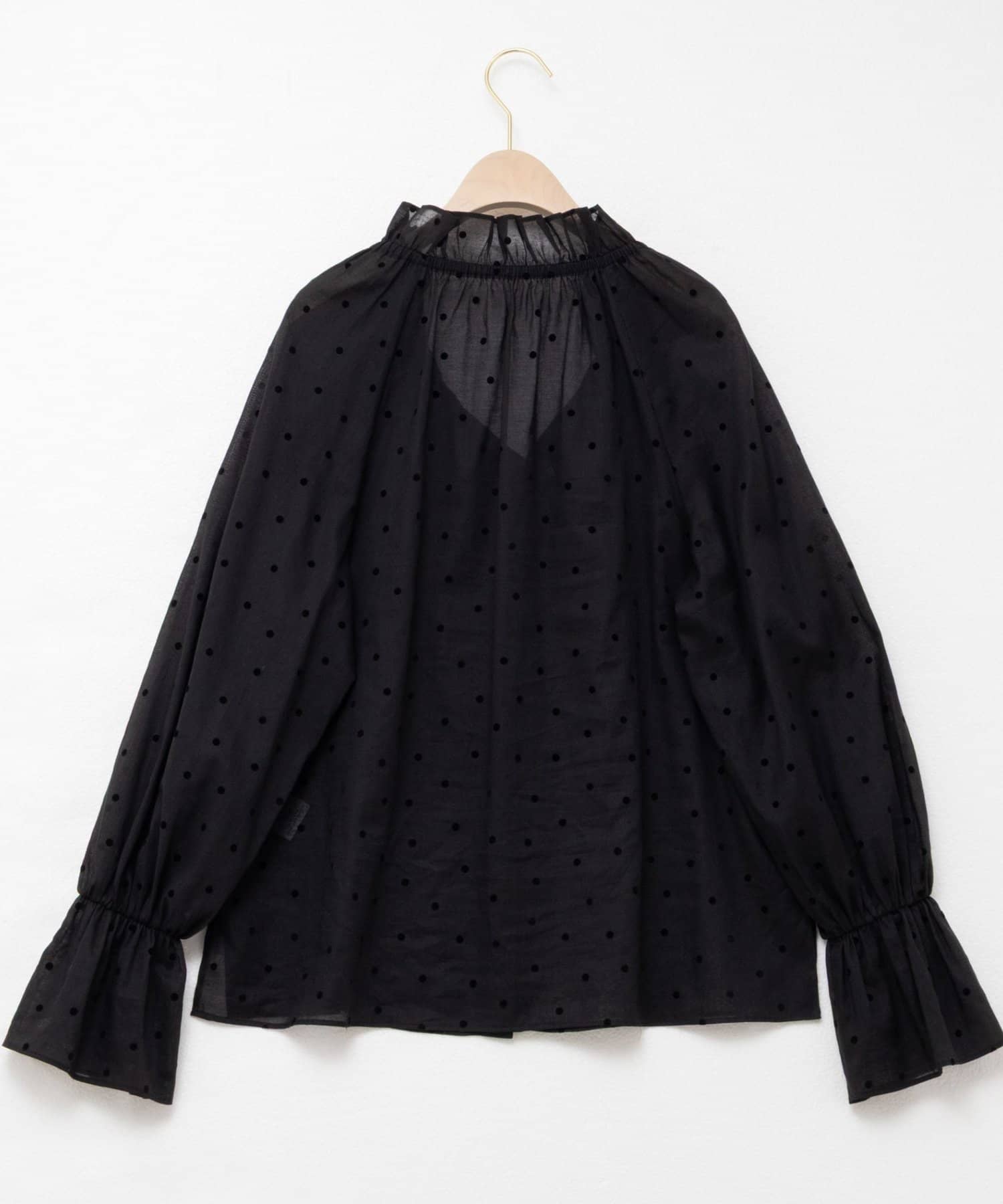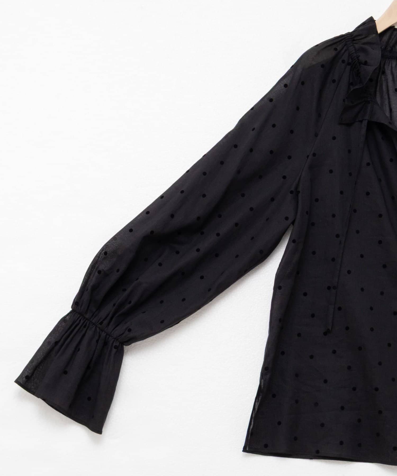 ドットフロッキーフリルネックブラウス
