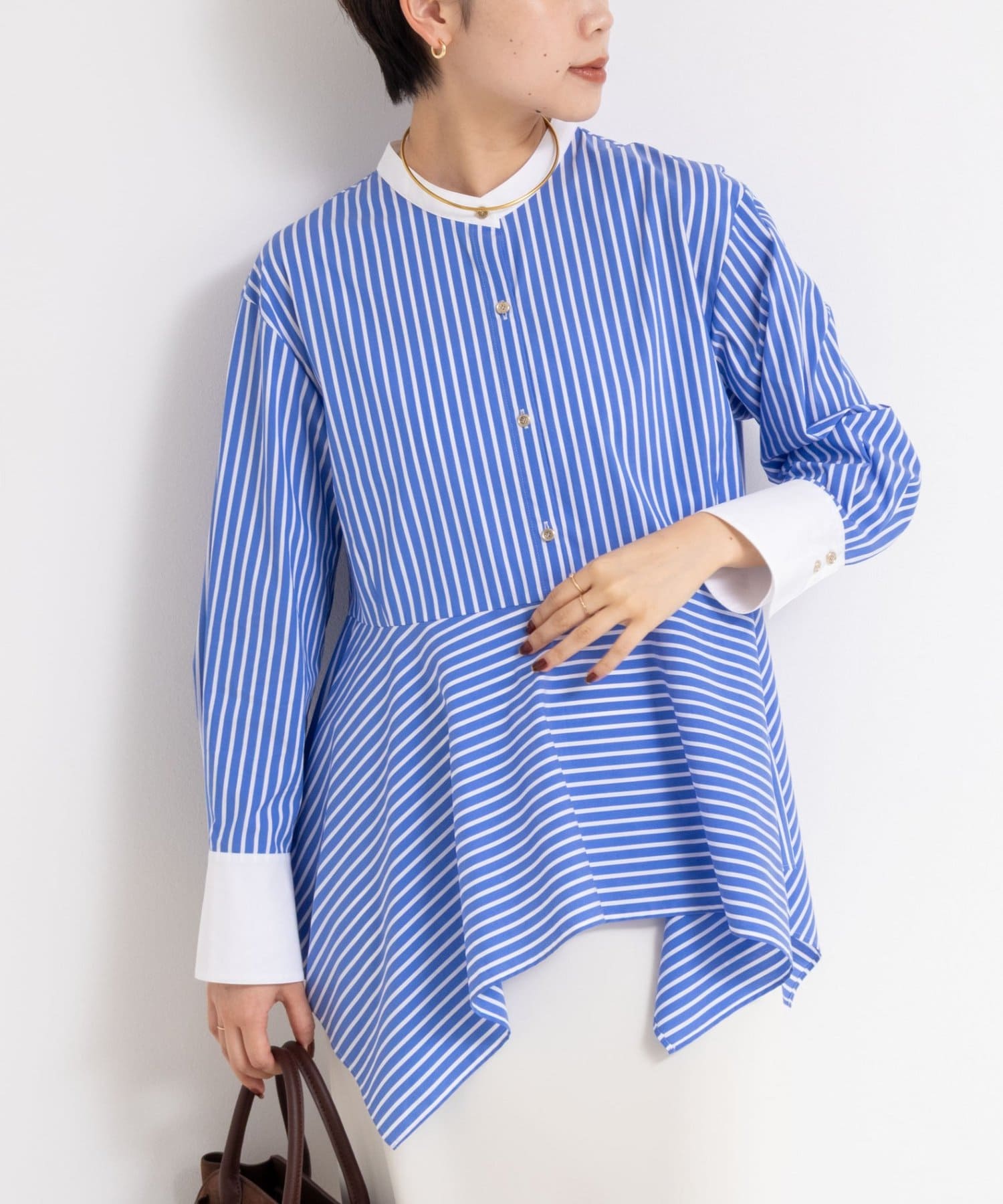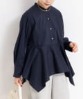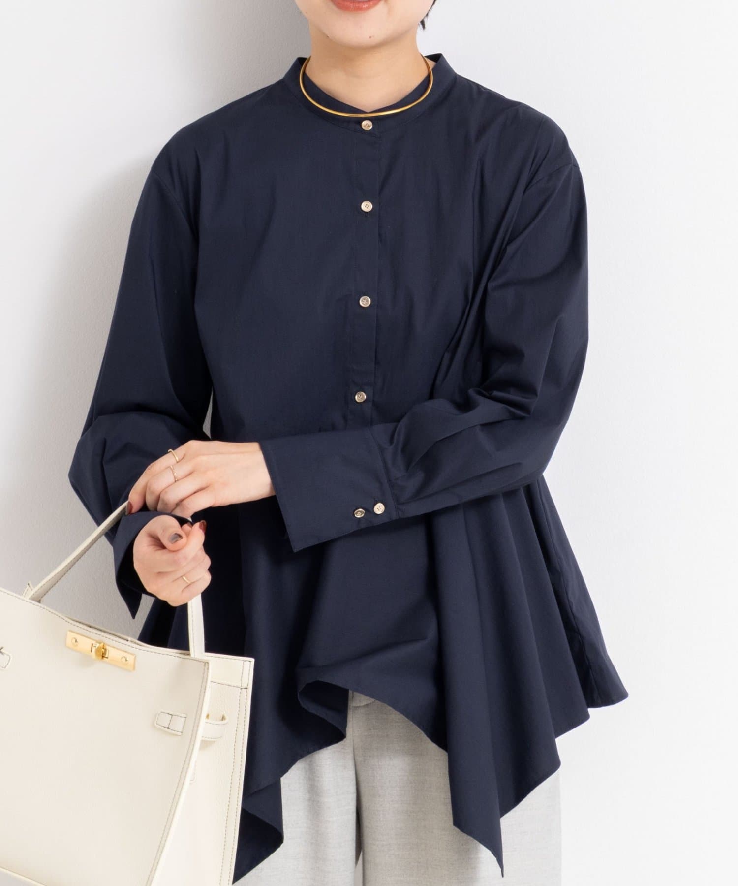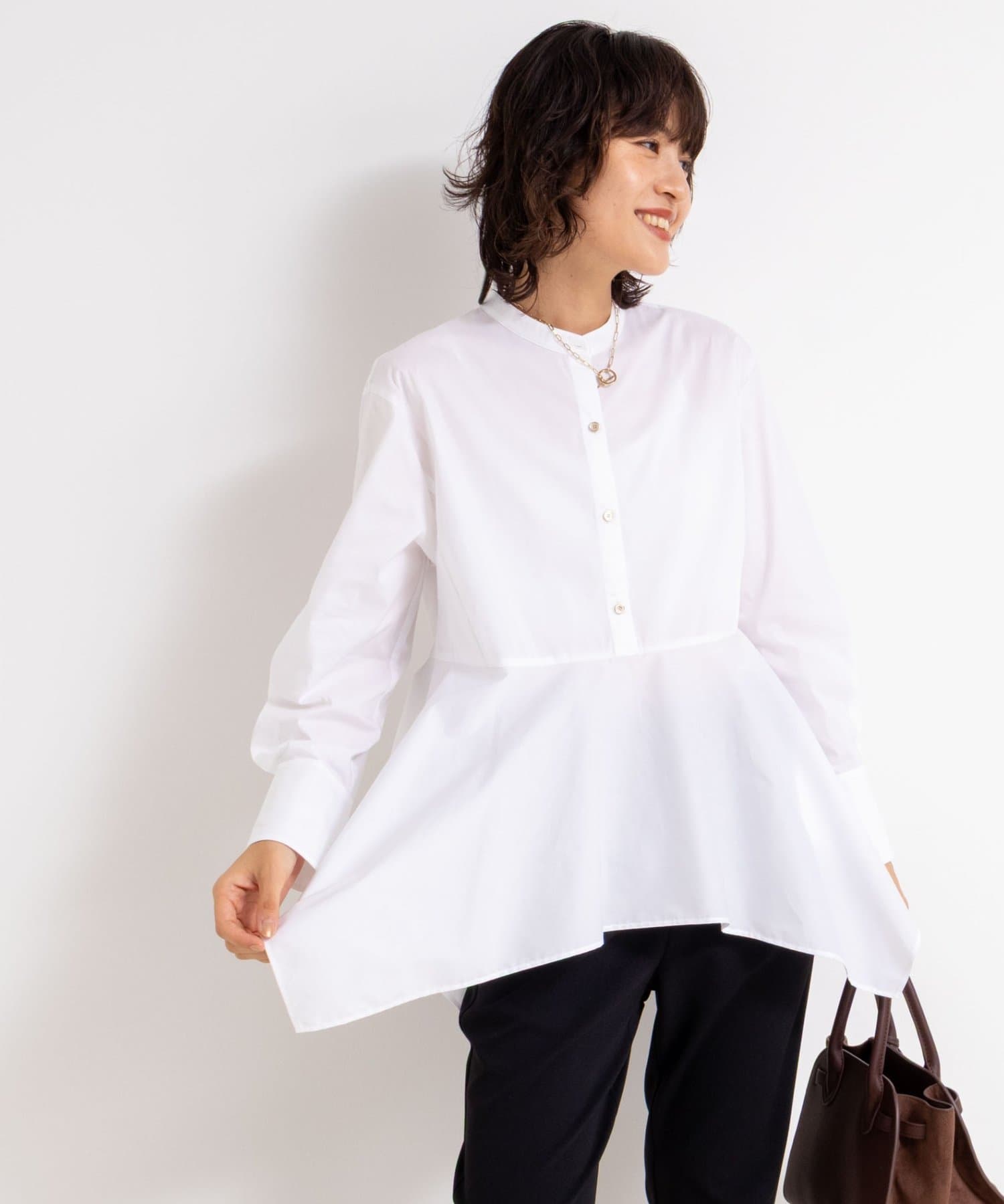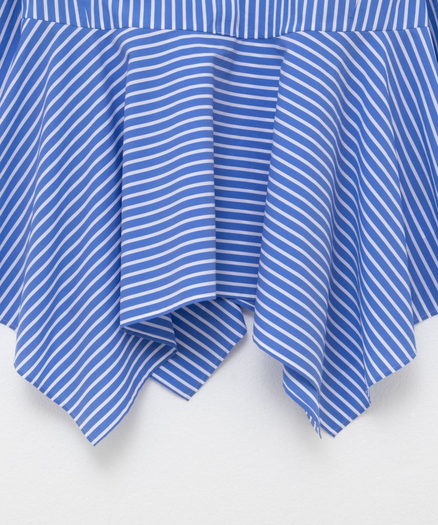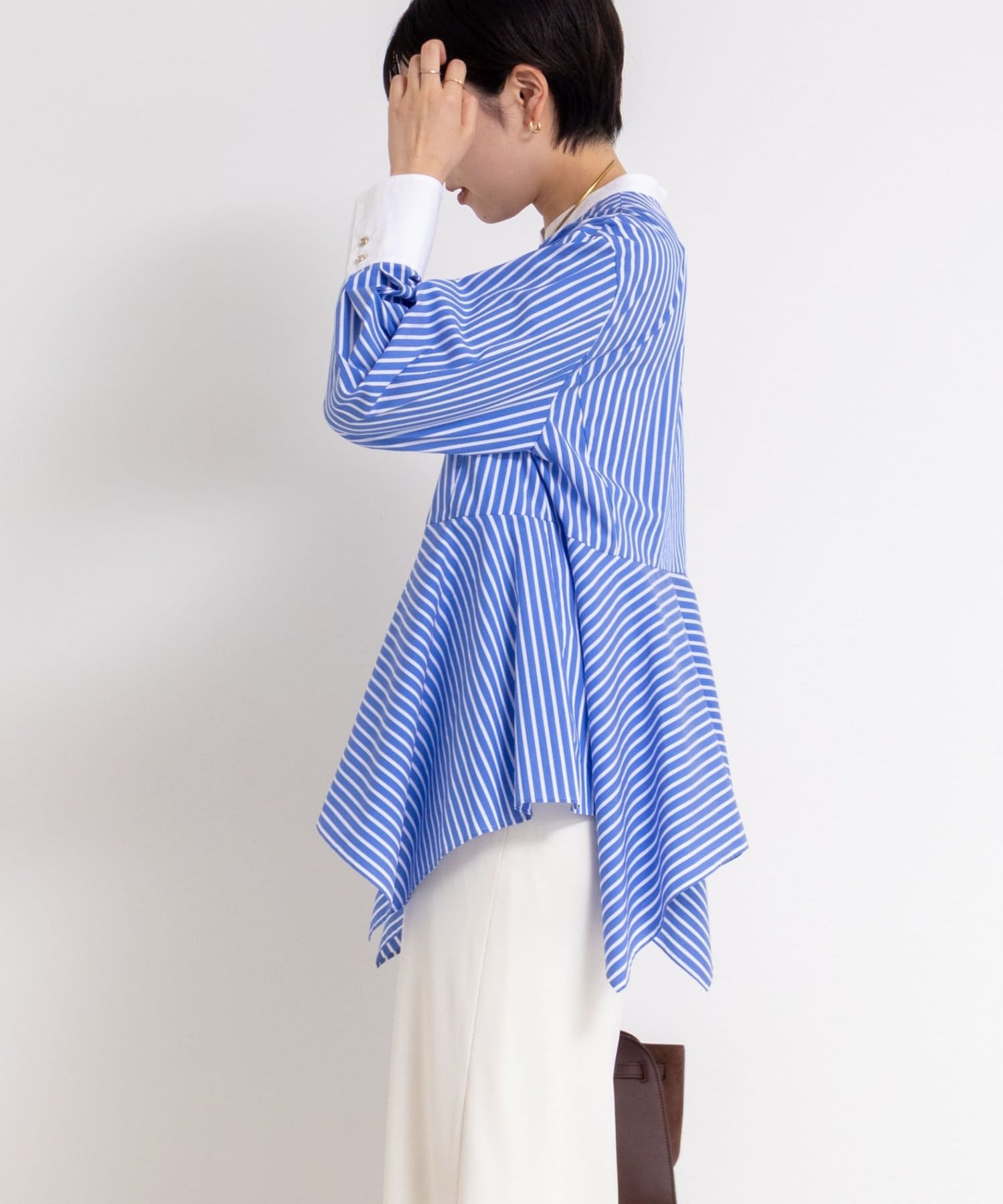 ・ハンカチーフヘムのデザインが目を引く華やかなシャツ