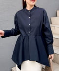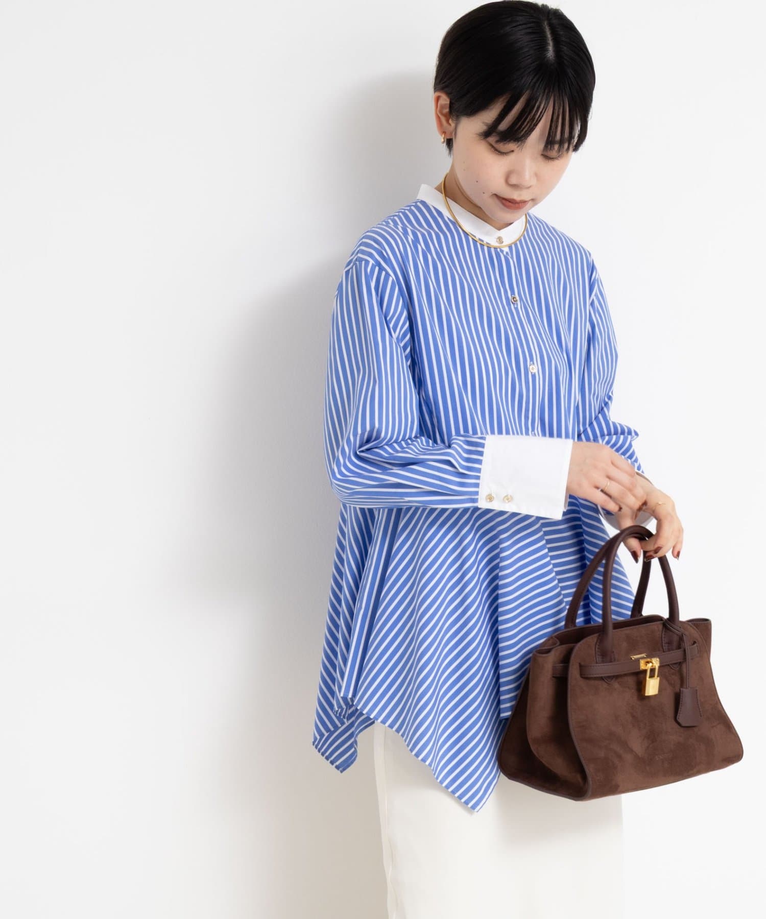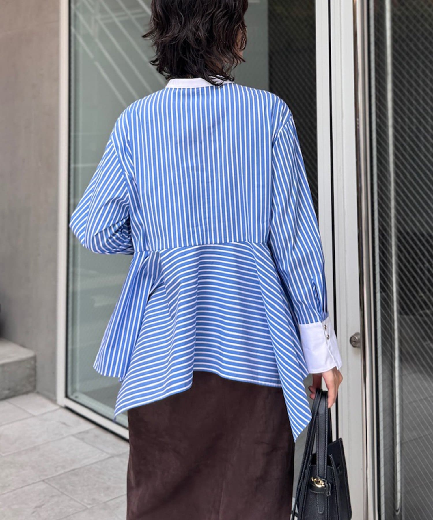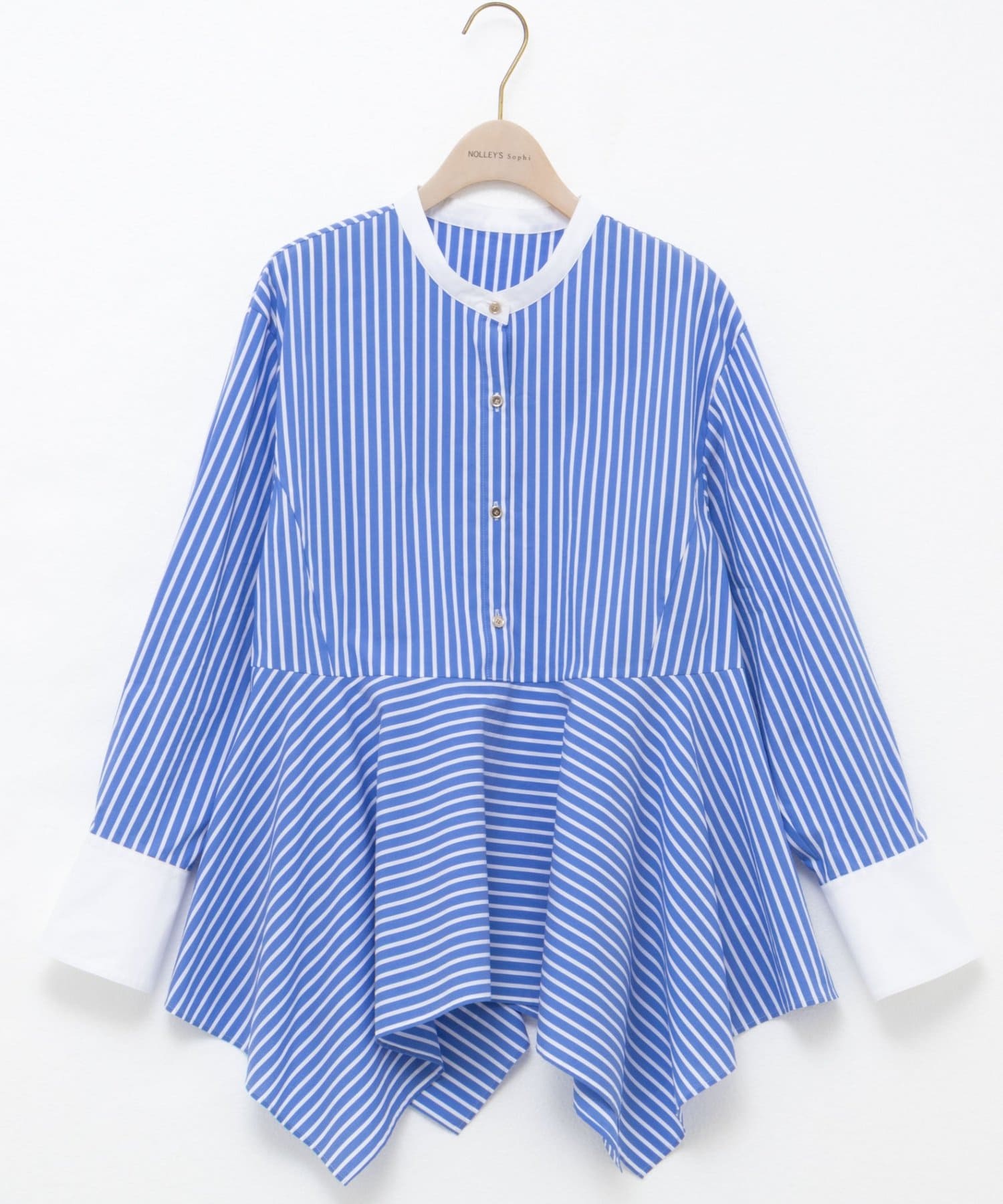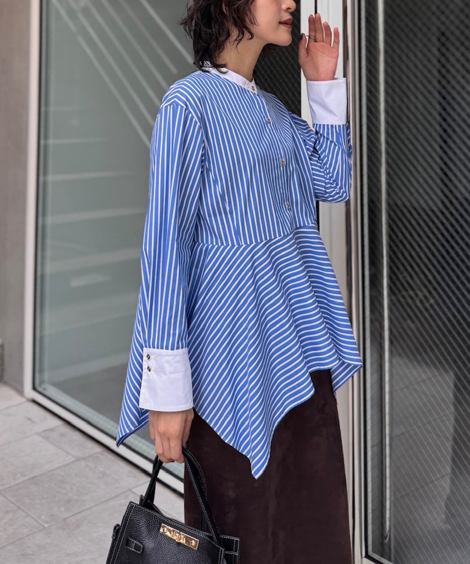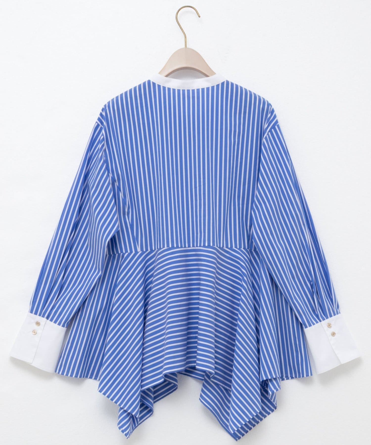 ・ハンカチーフヘムのデザインが目を引く華やかなシャツ