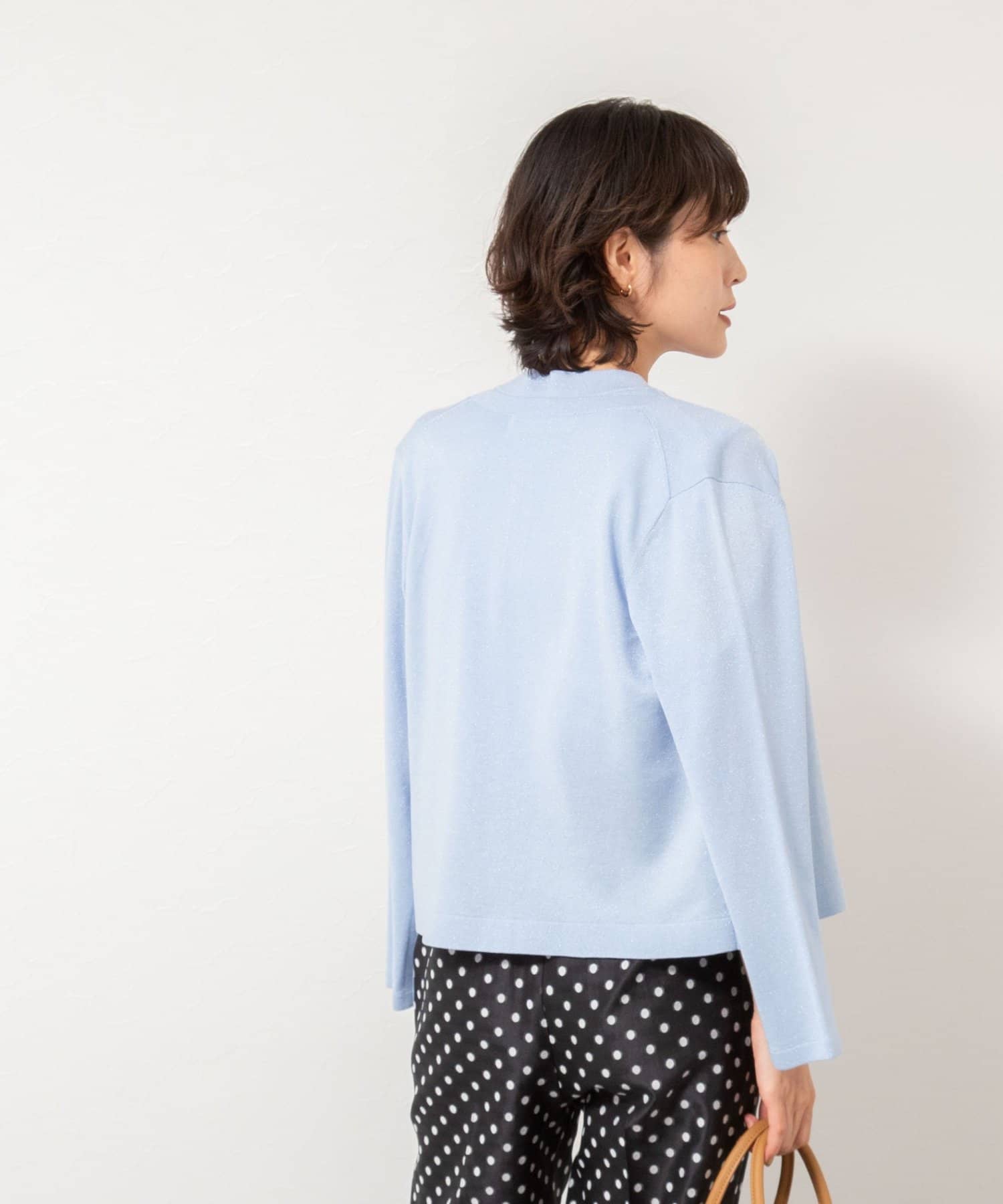 《アンサンブル対応》《手洗い可能》W混ラメクルーネックカーディガン