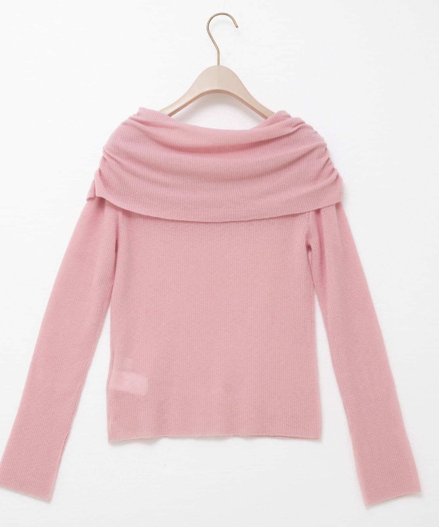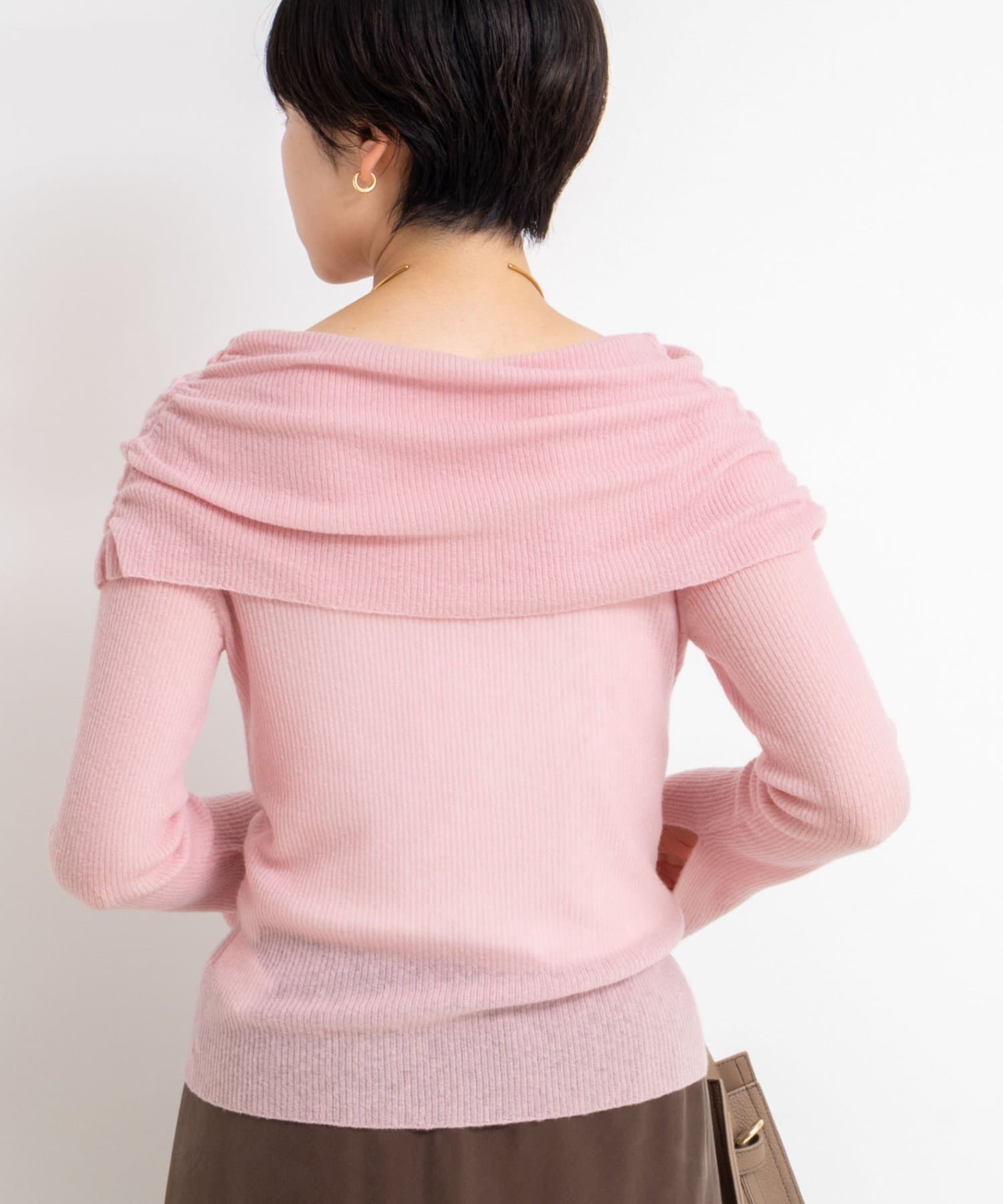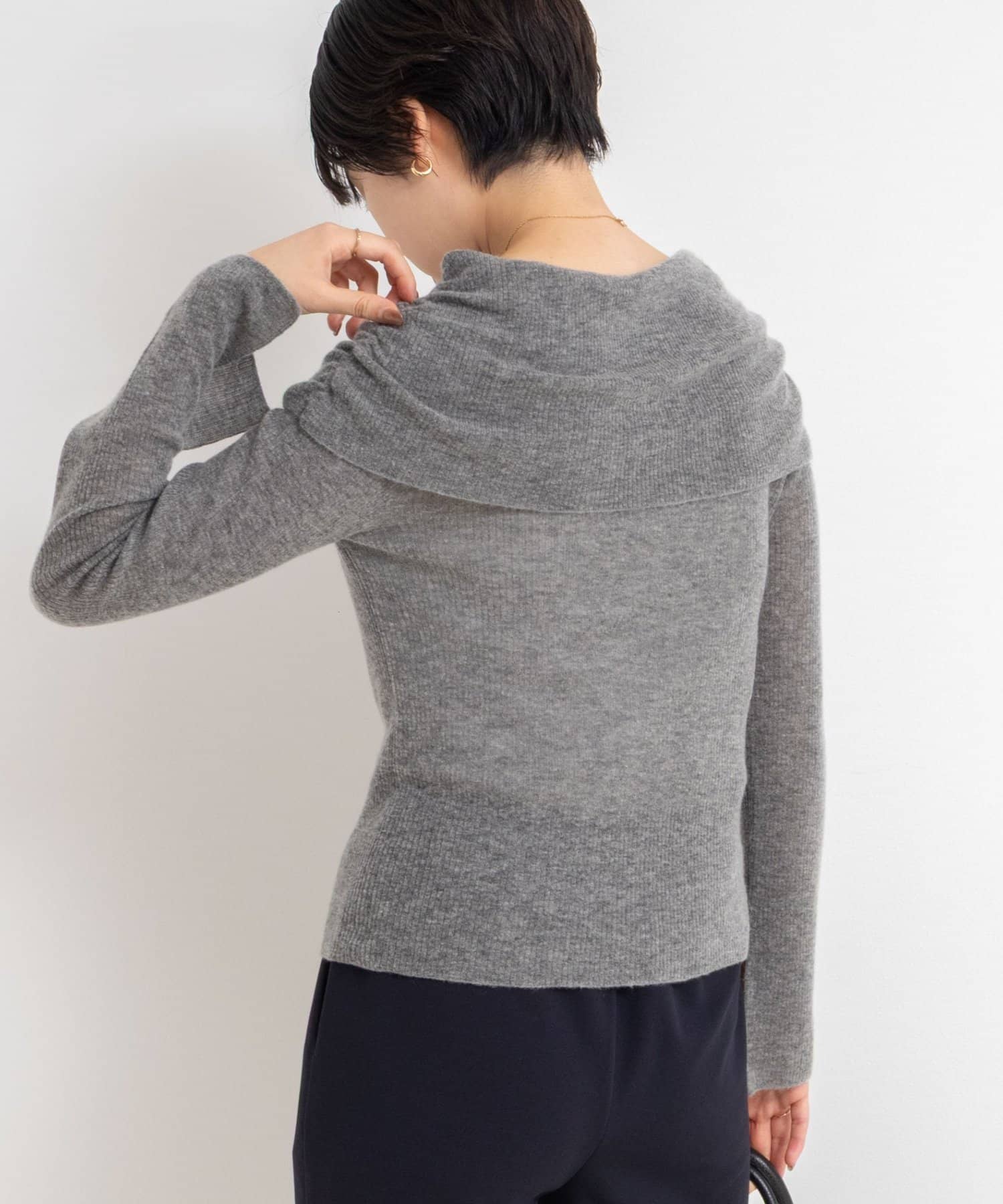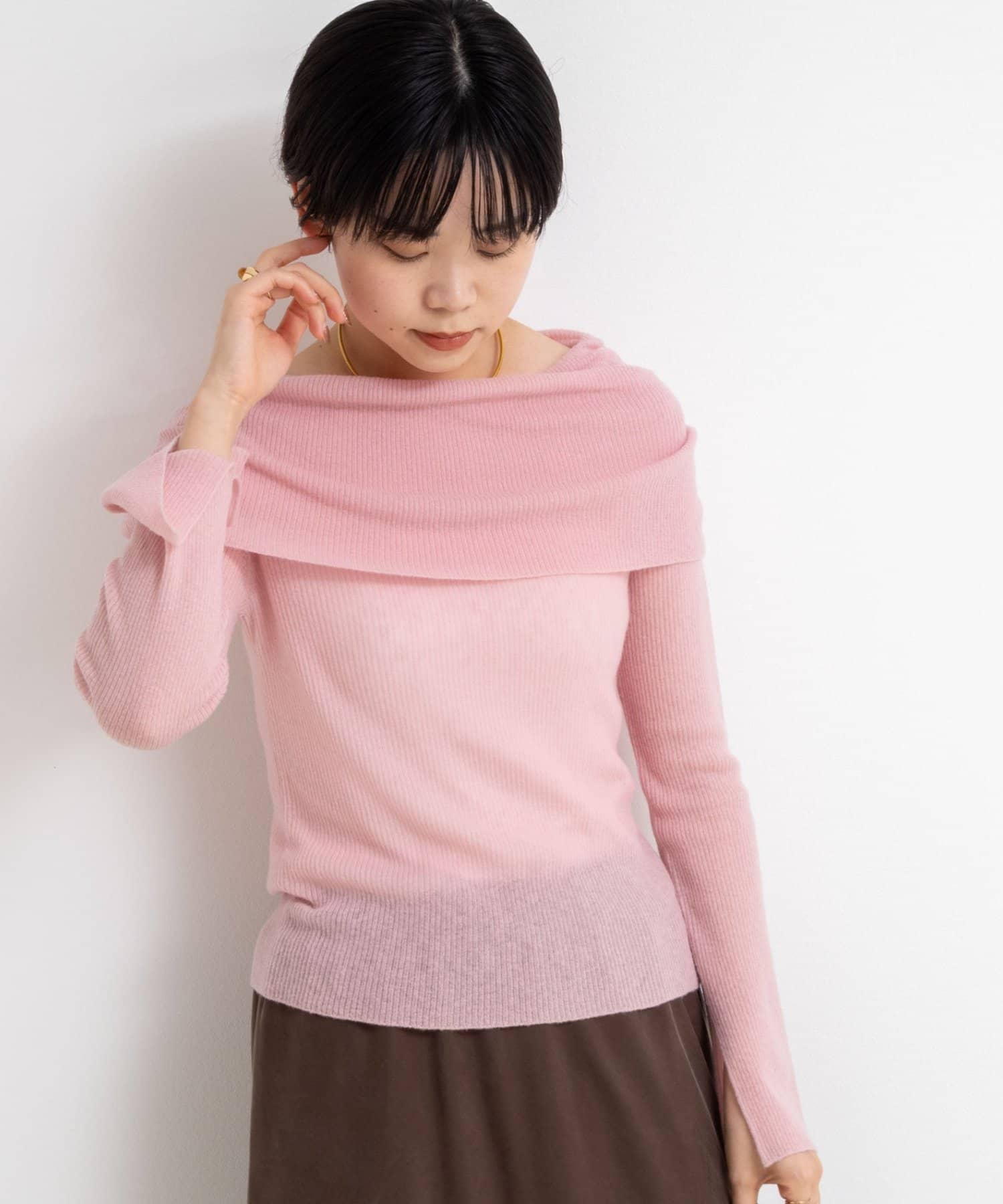 カシミヤ混ガーゼ風リブオフショルプルオーバーニット