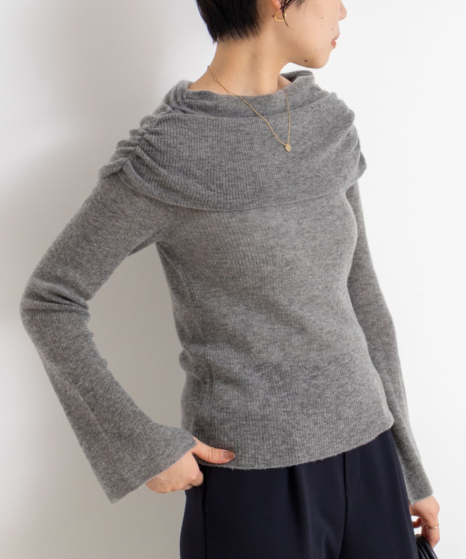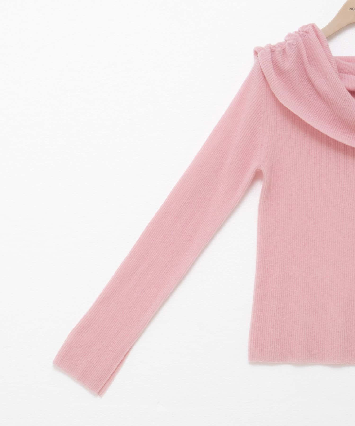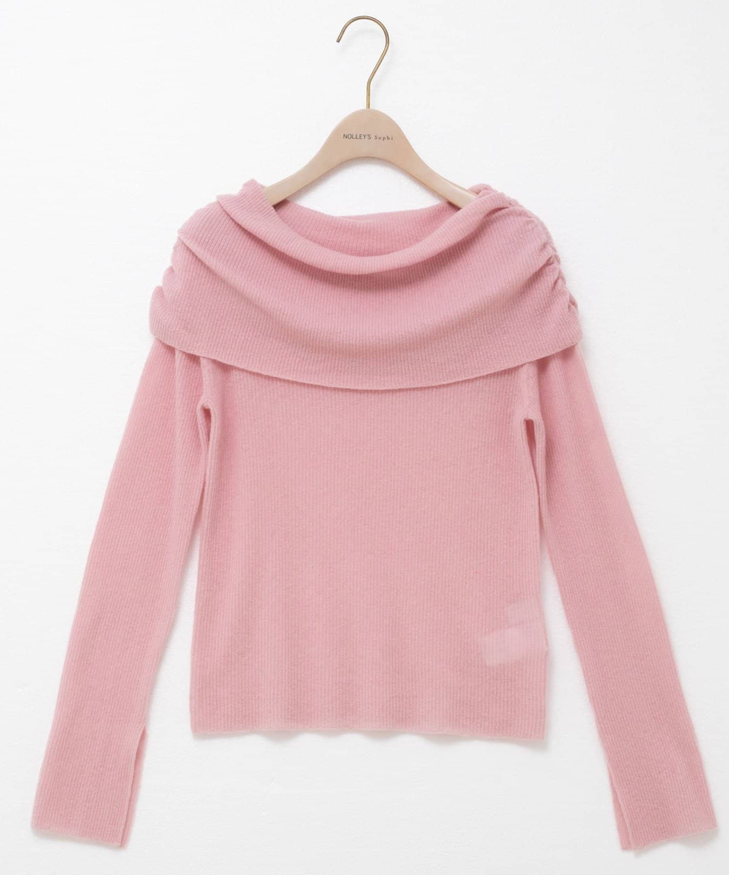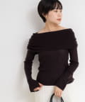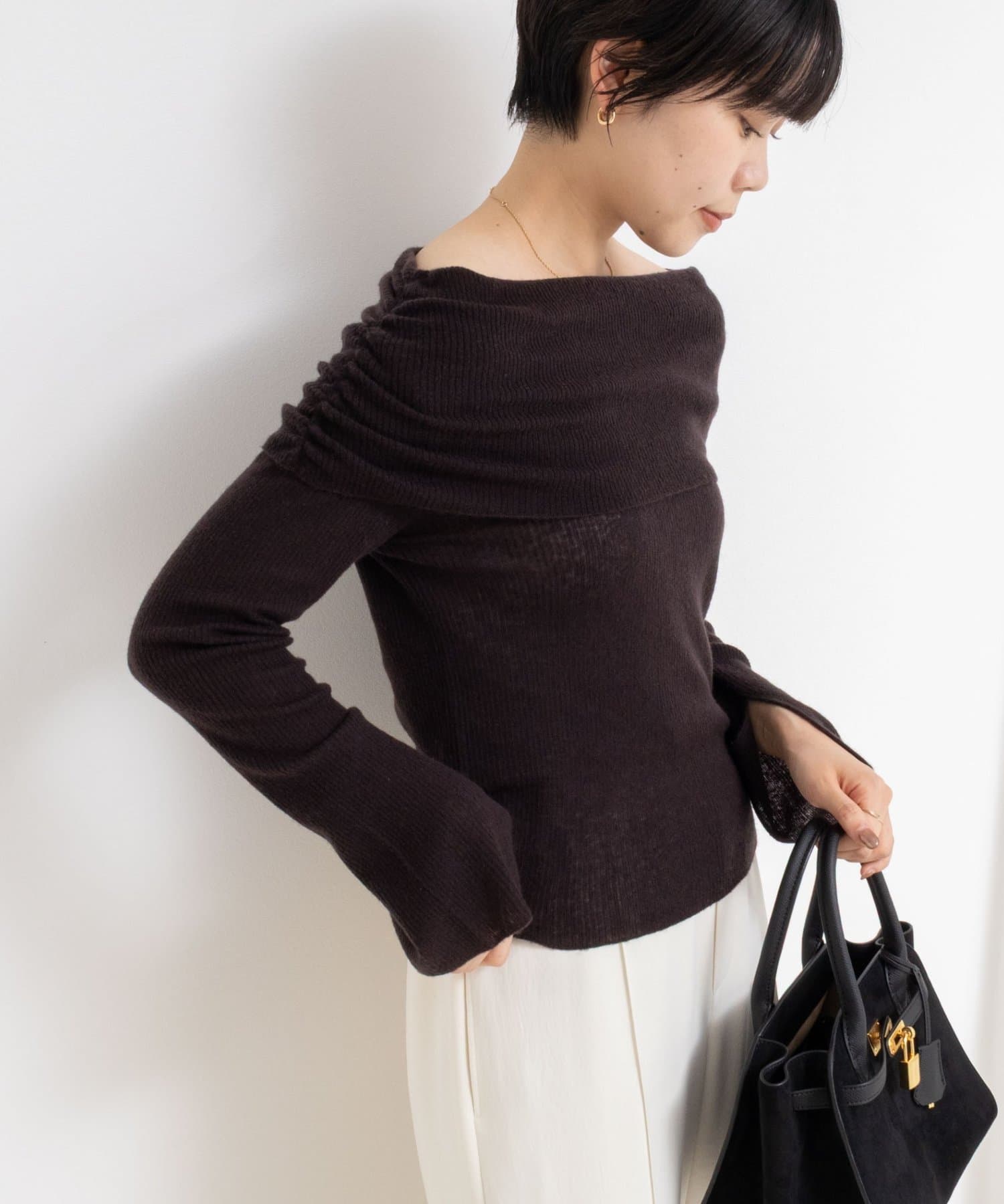 カシミヤ混ガーゼ風リブオフショルプルオーバーニット