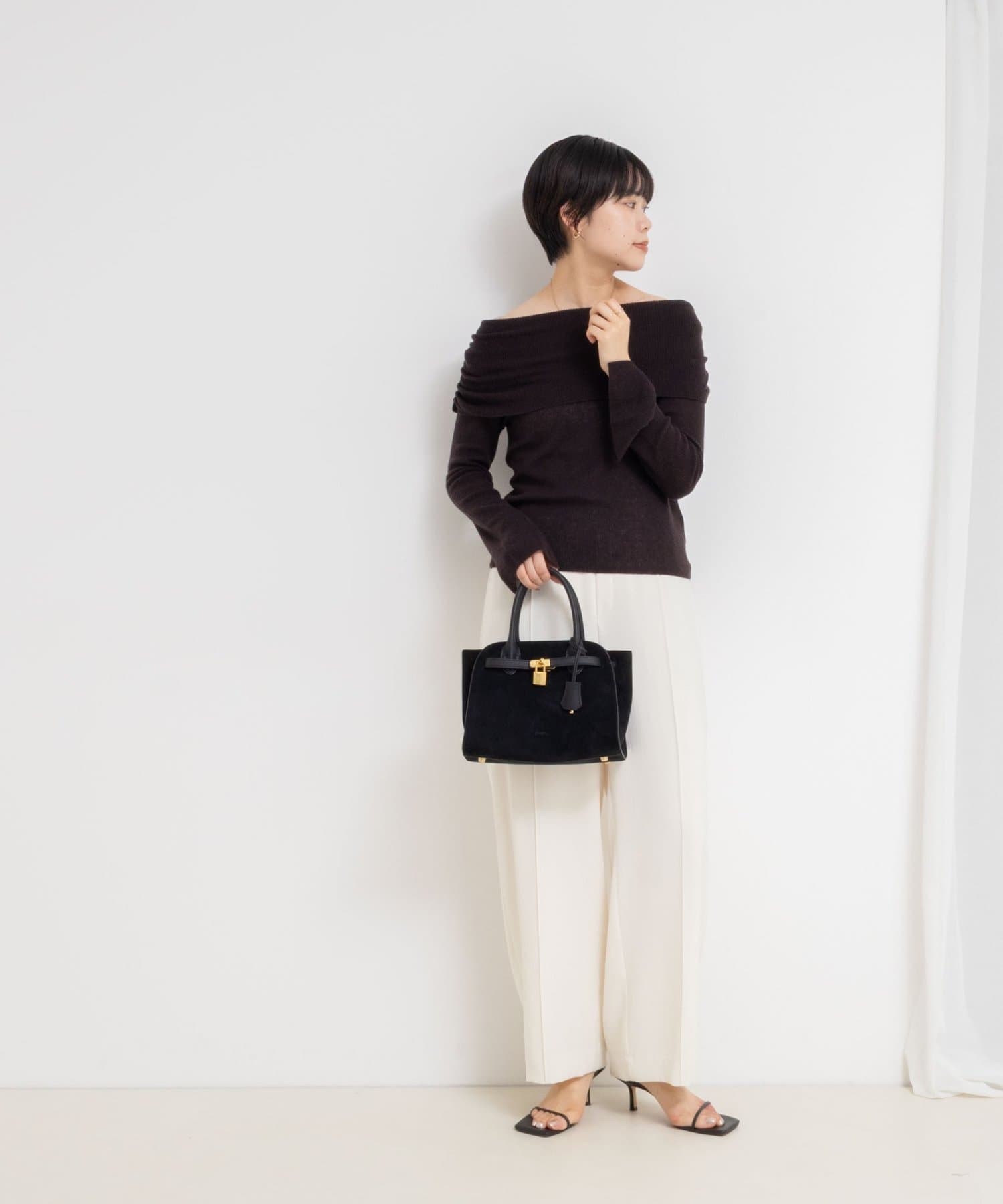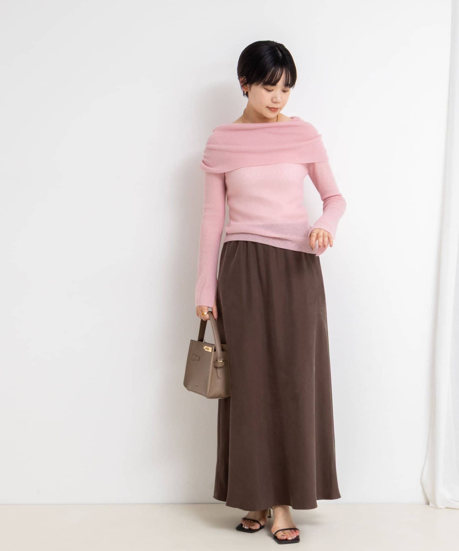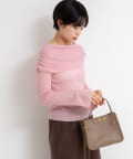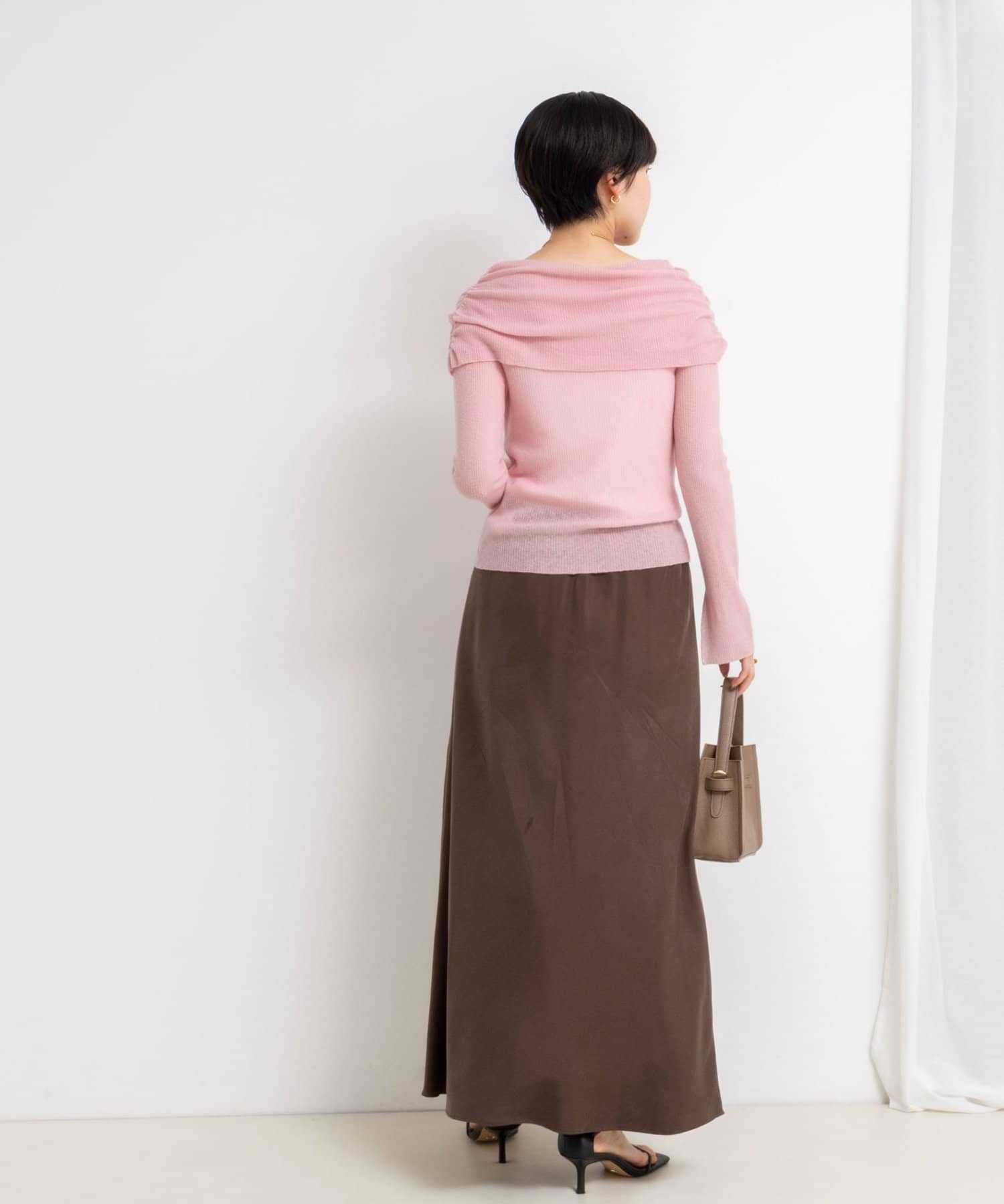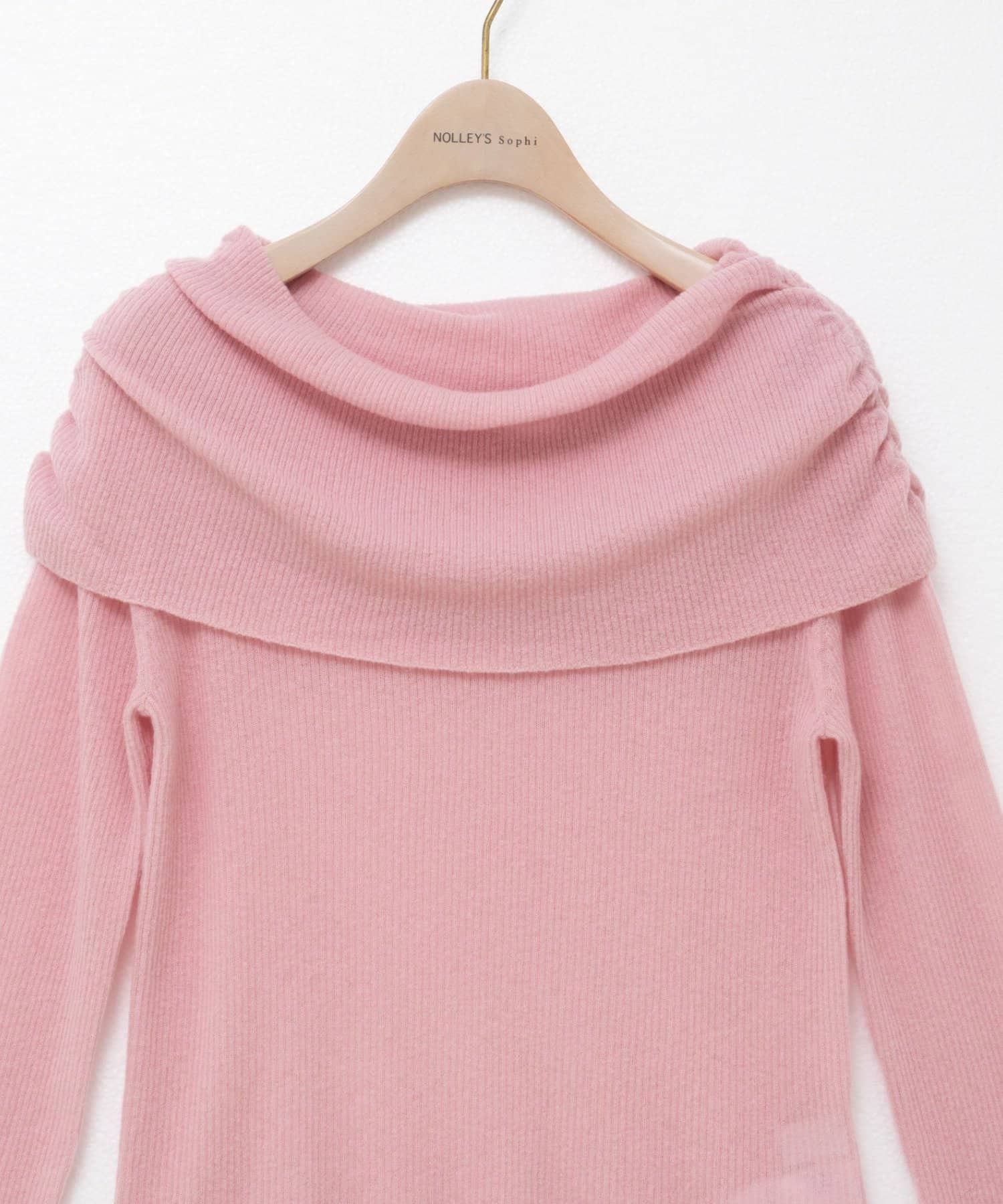 カシミヤ混ガーゼ風リブオフショルプルオーバーニット