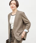 《セットアップ対応》ウォッシャブルソフトシャンブレーノーカラージャケット