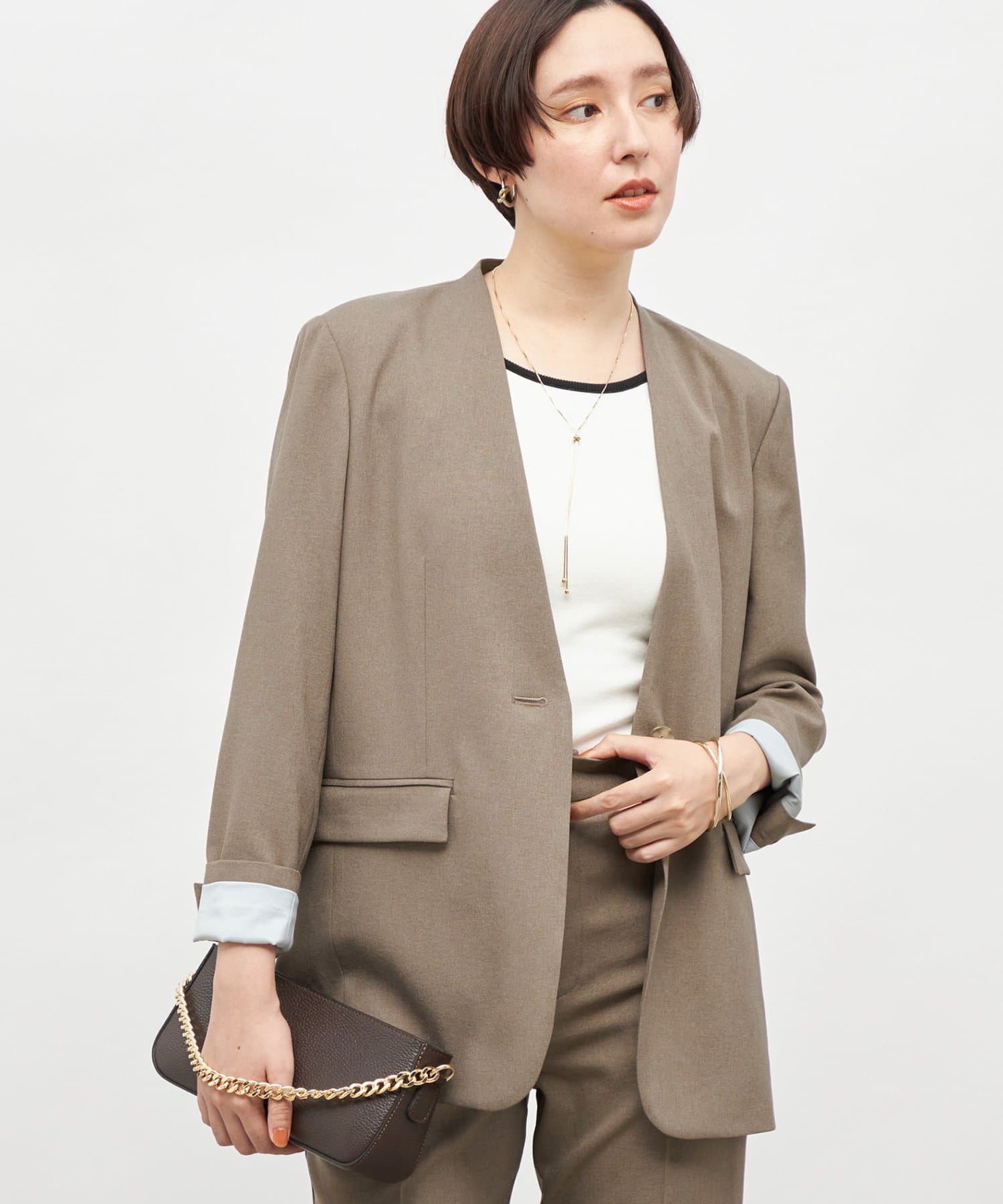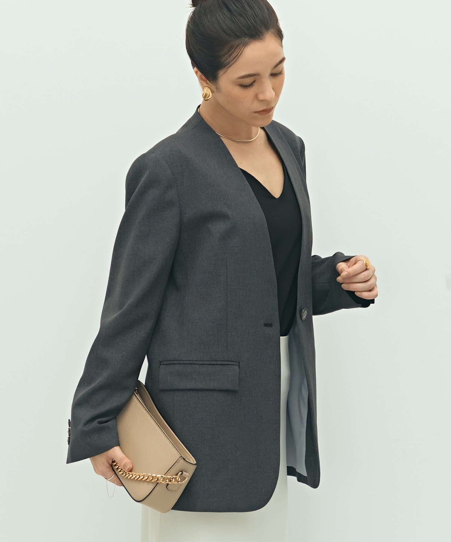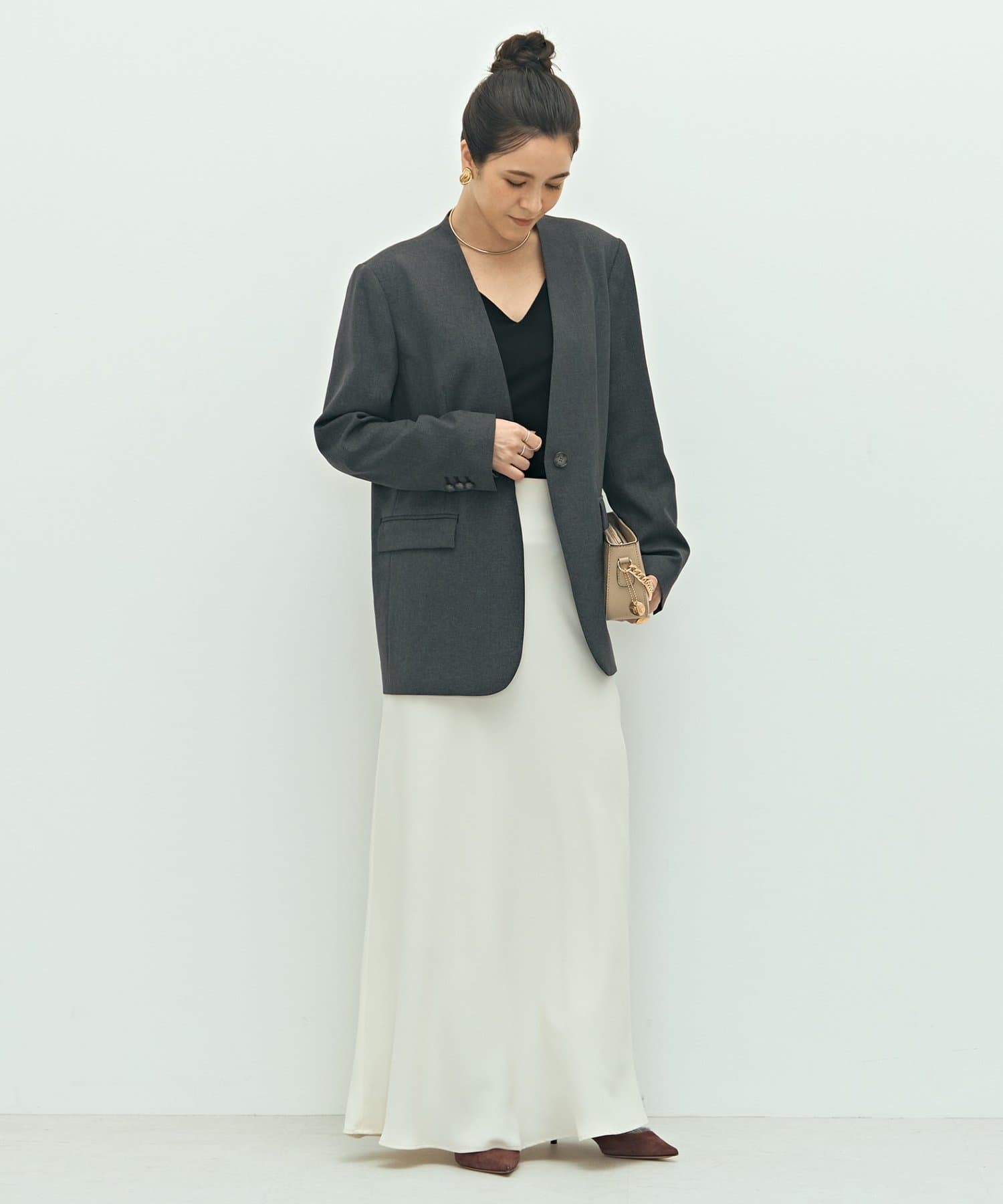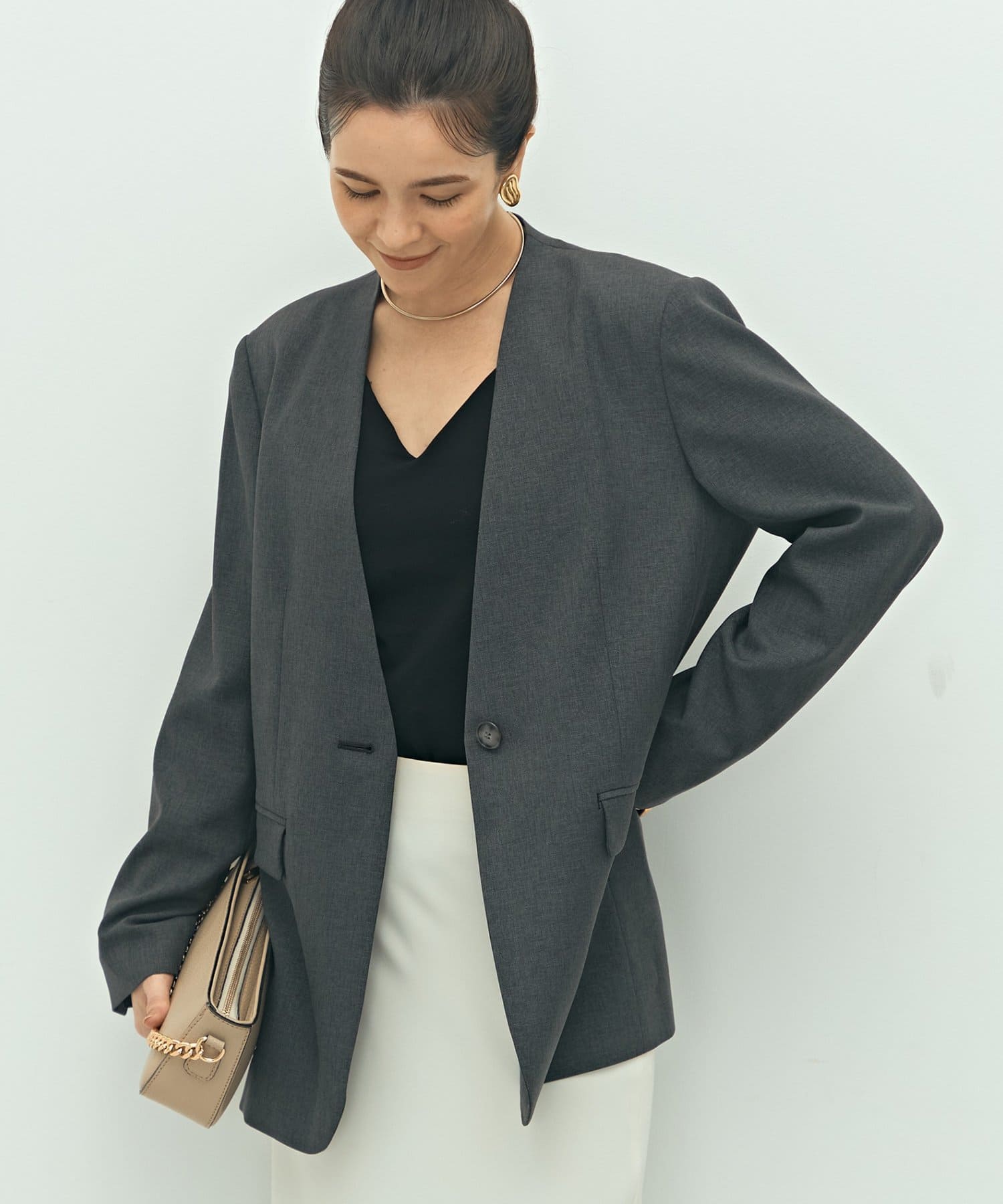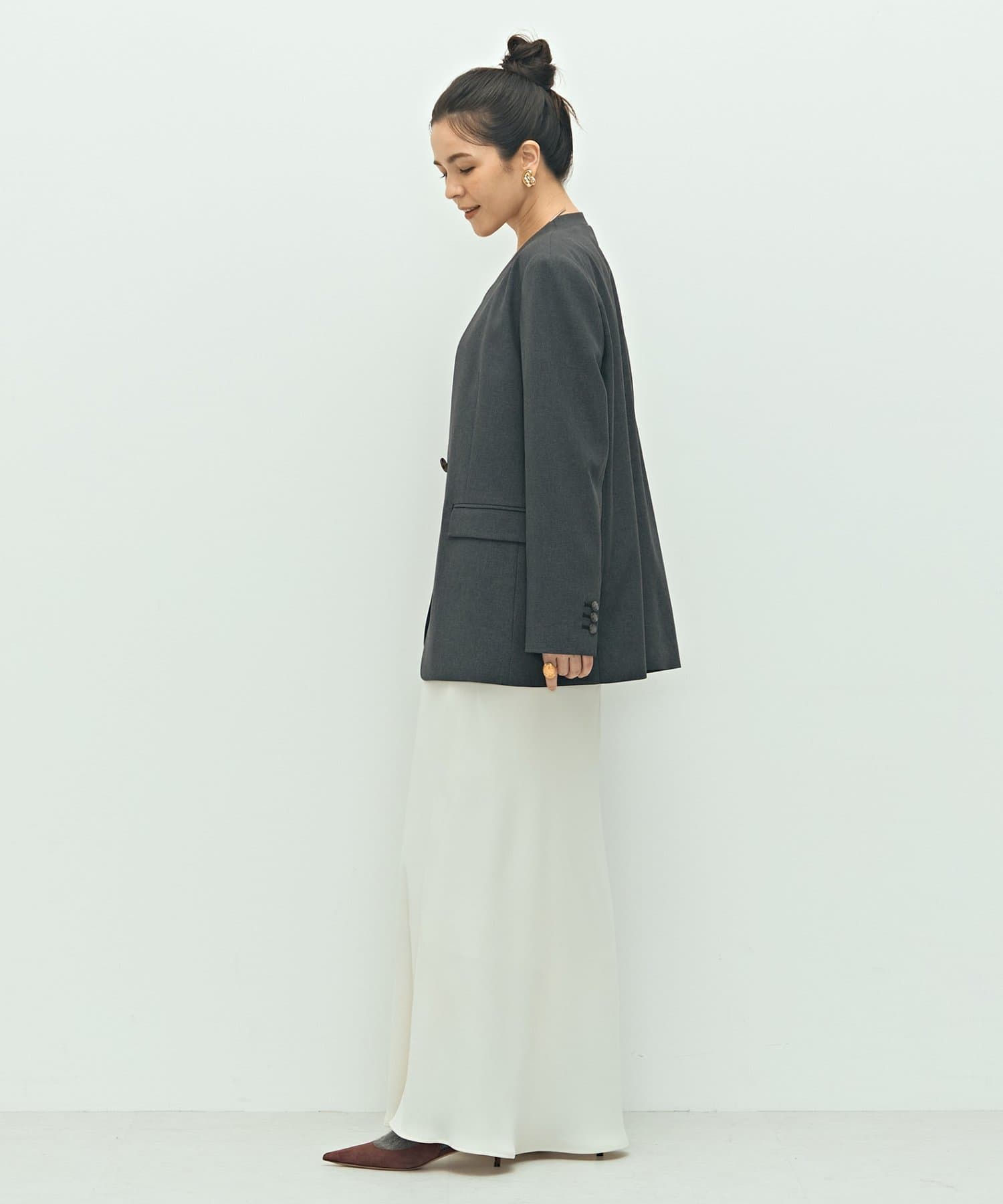 ・抜け感のあるシルエット、衿のラインなどこだわりが詰まった1着