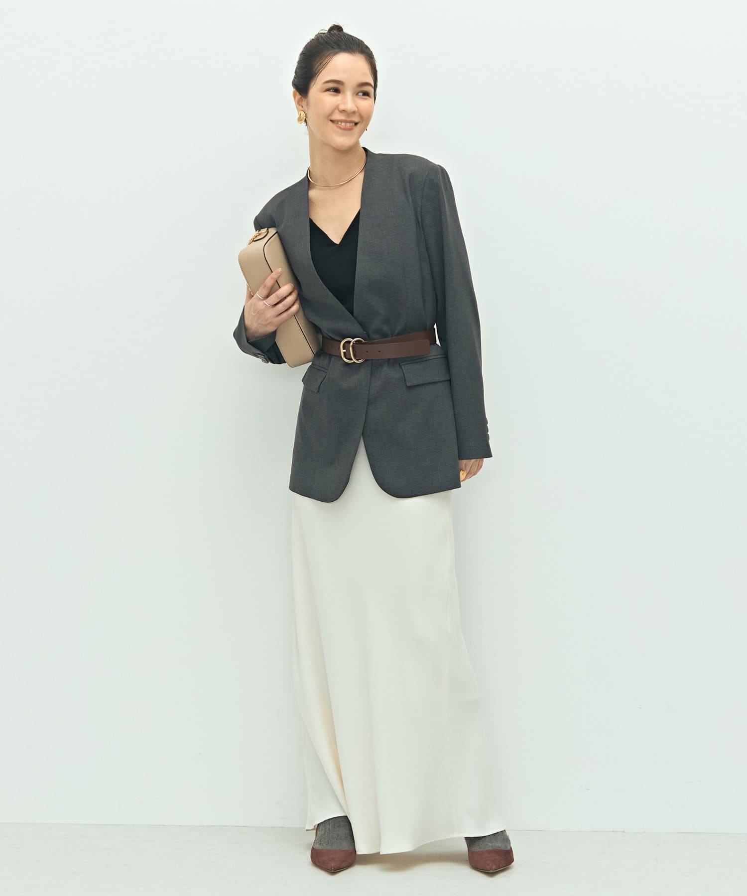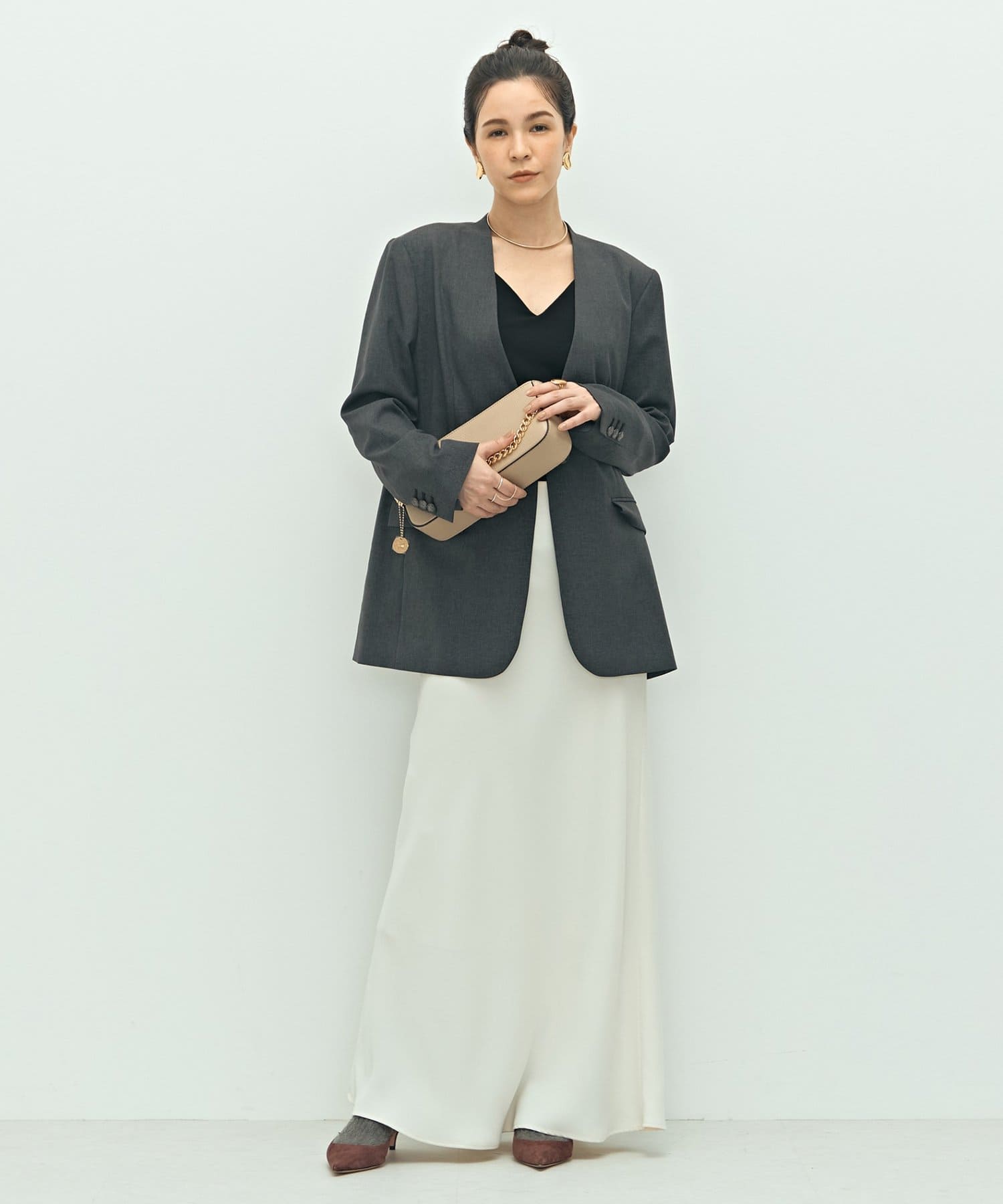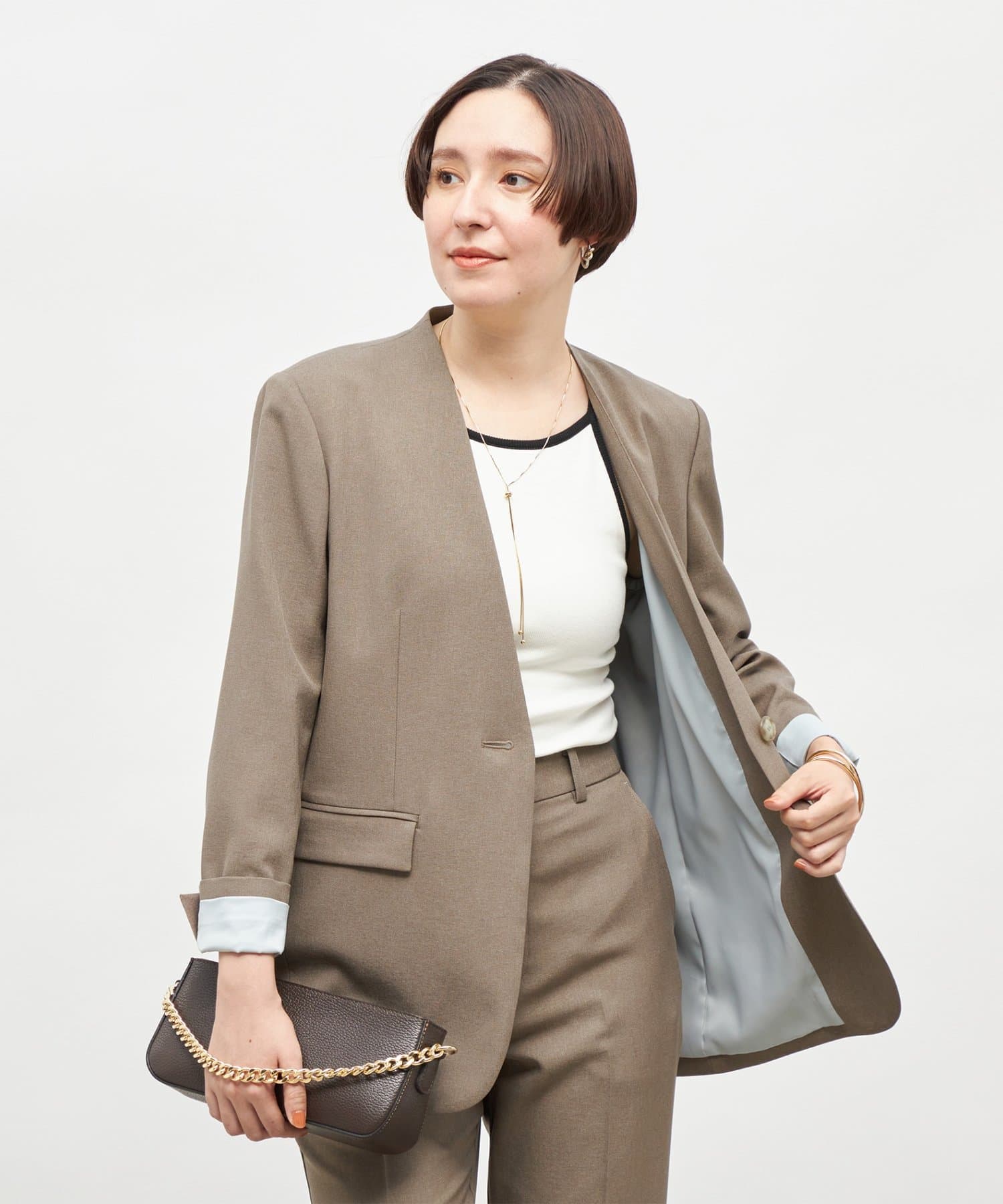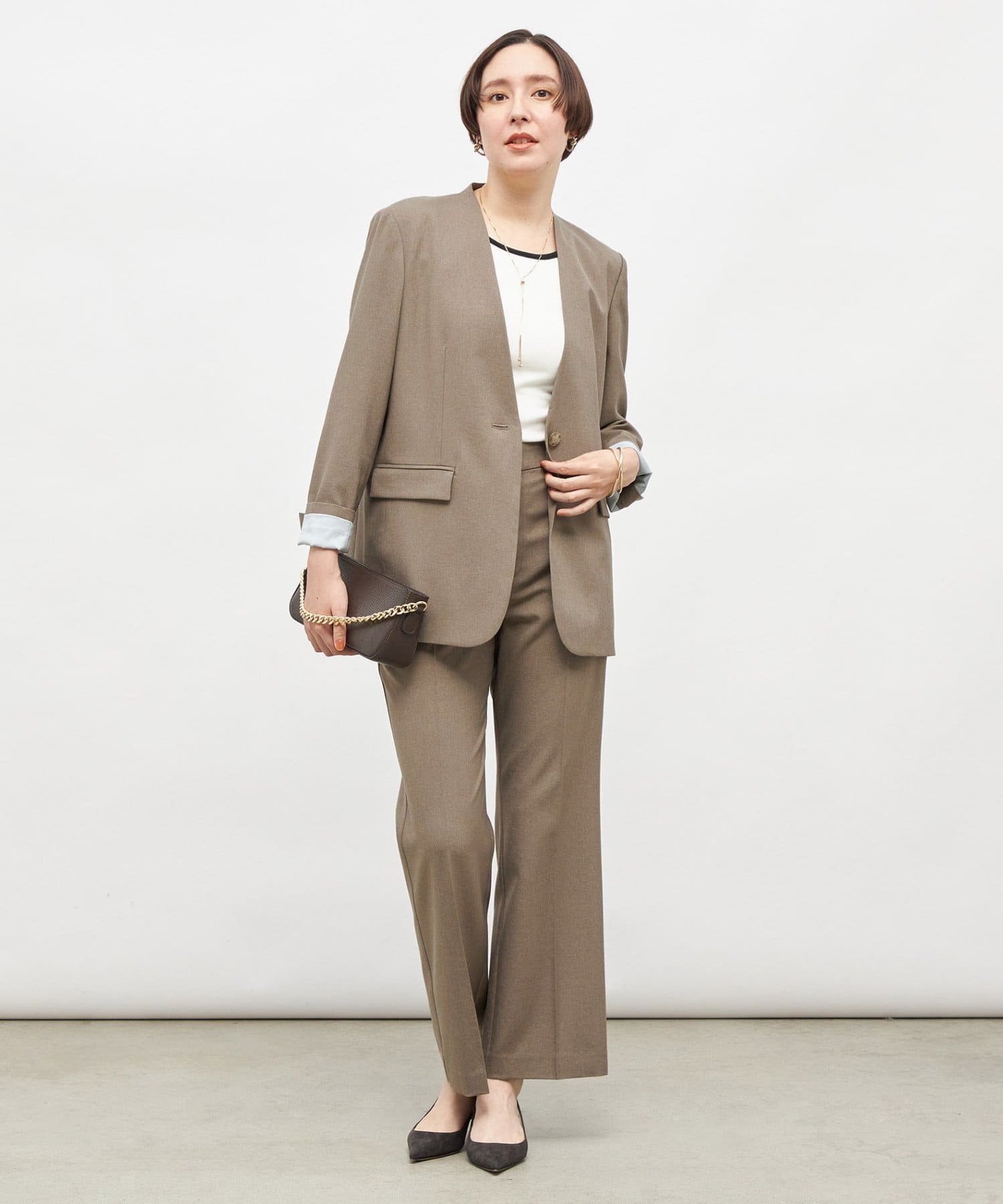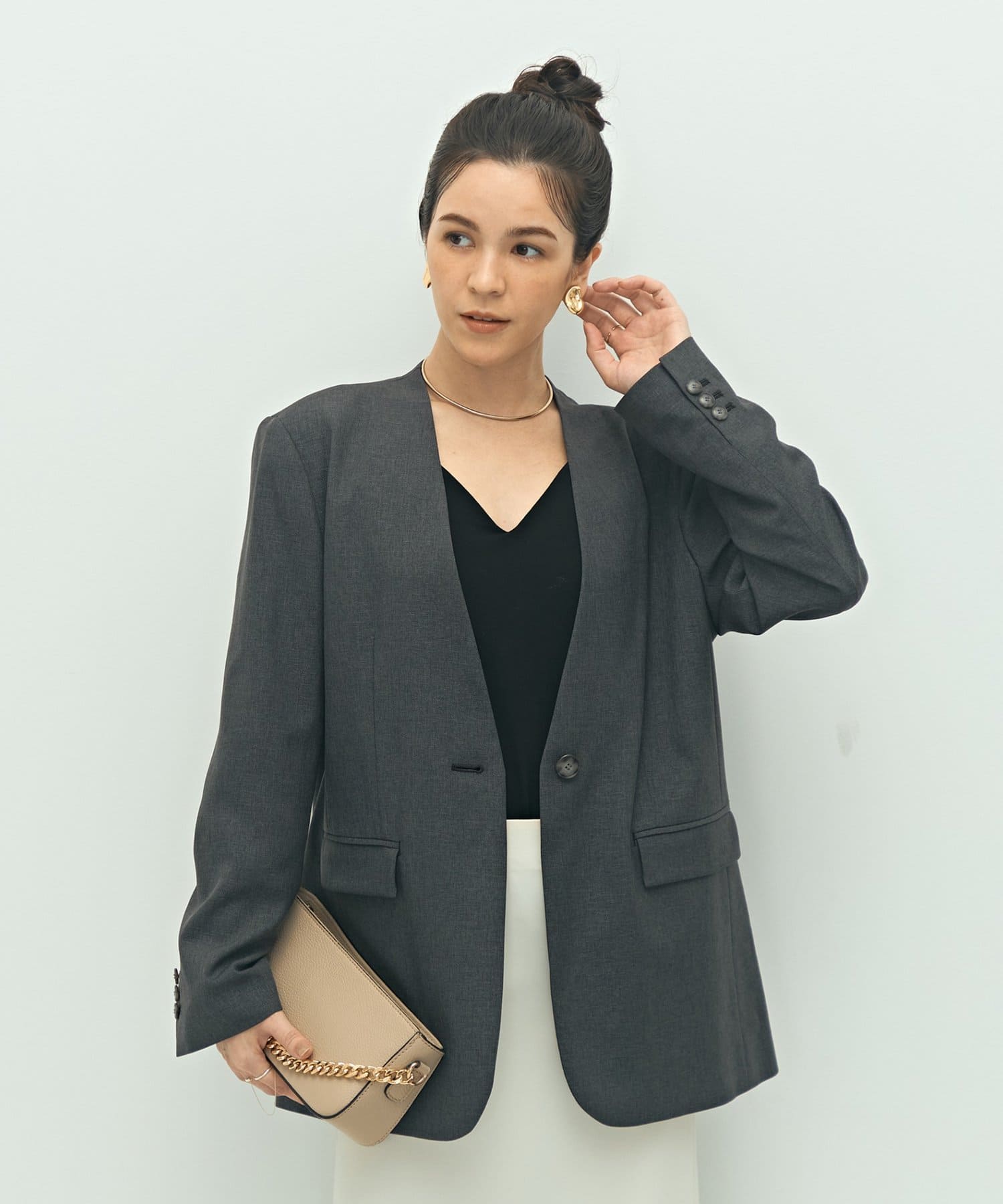 ・抜け感のあるシルエット、衿のラインなどこだわりが詰まった1着