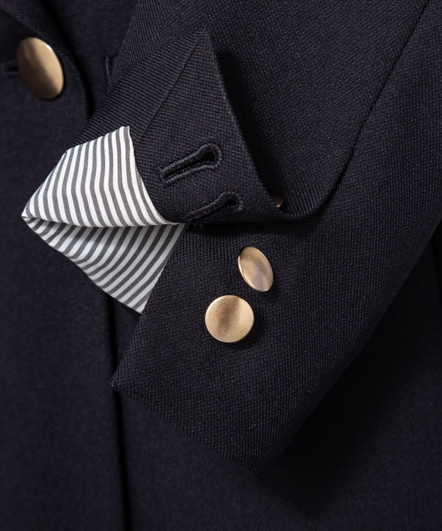 ・袖口を裏返したときのワンポイントに、袖裏のみストライプの裏地を使用