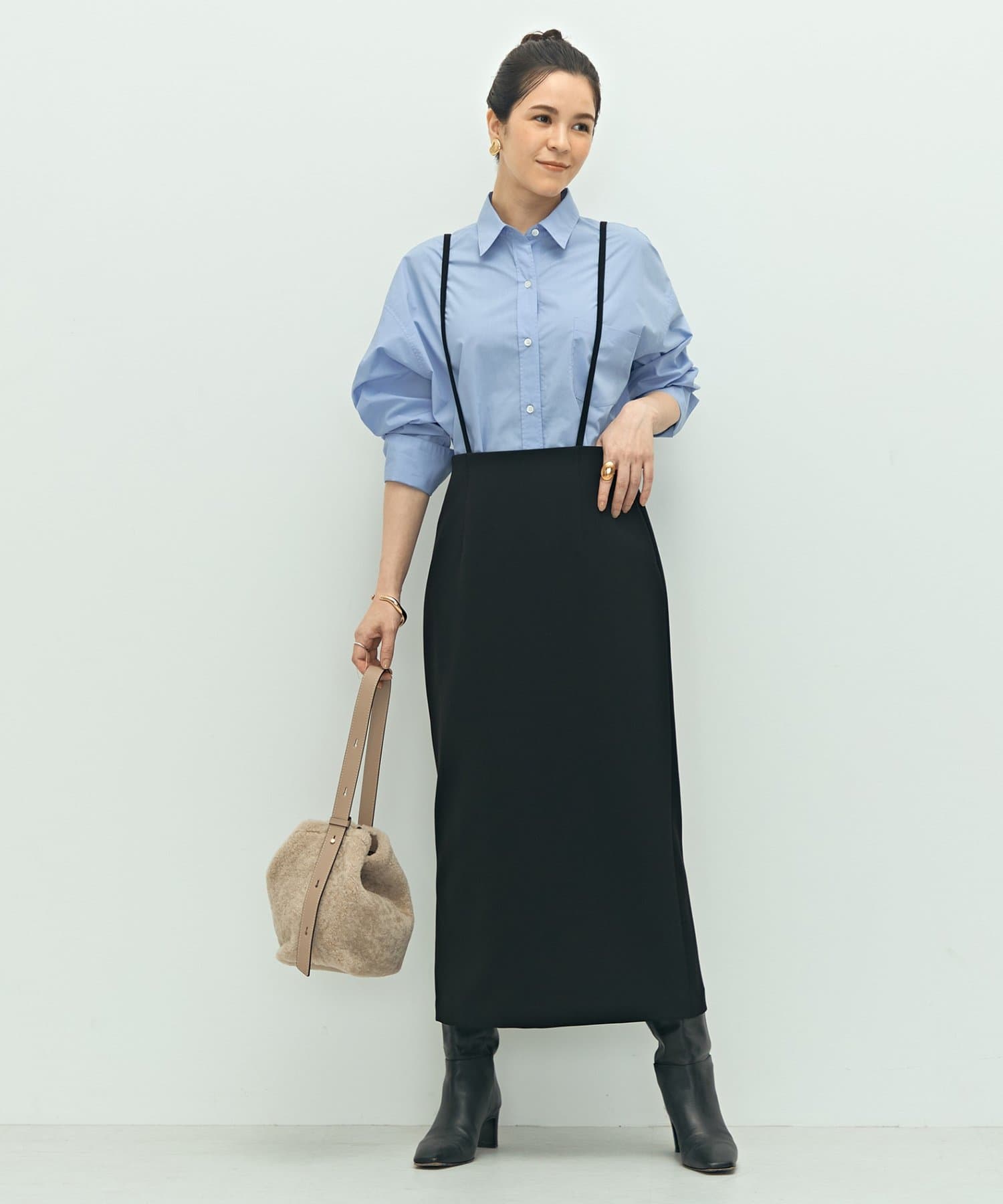 ・ストラップ付でカジュアルにも着こなせるタイトスカート