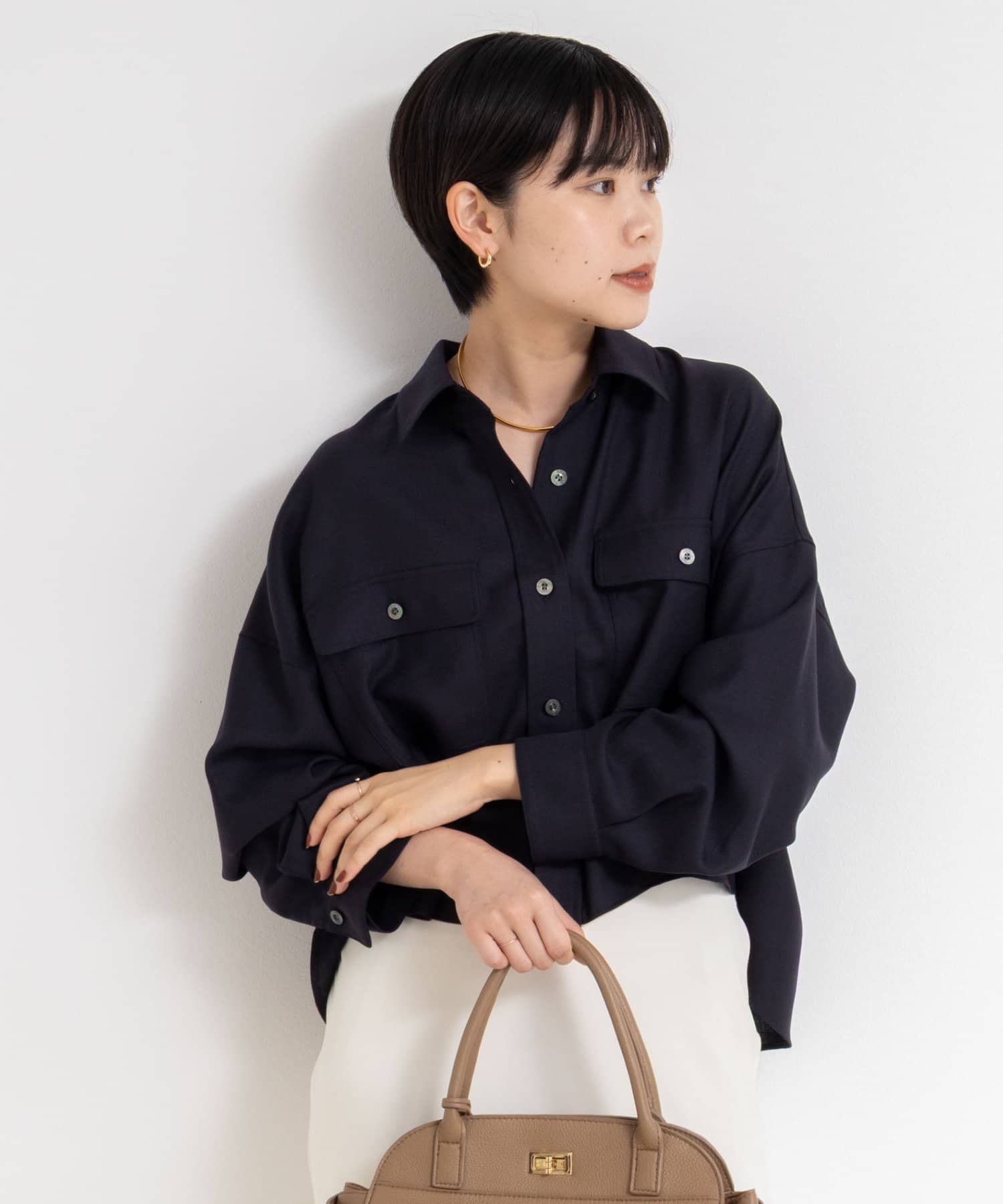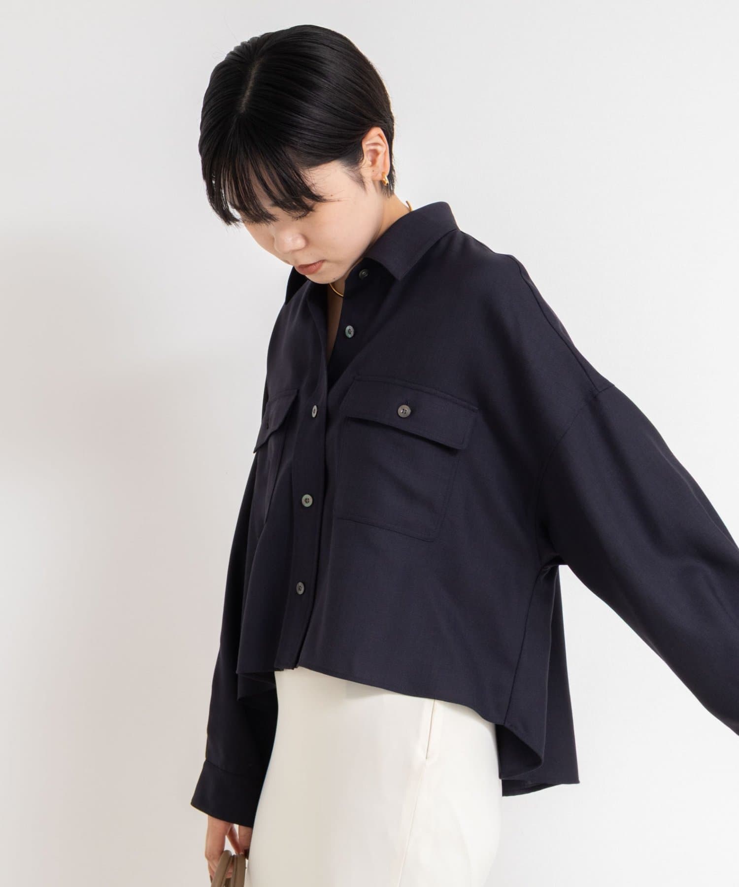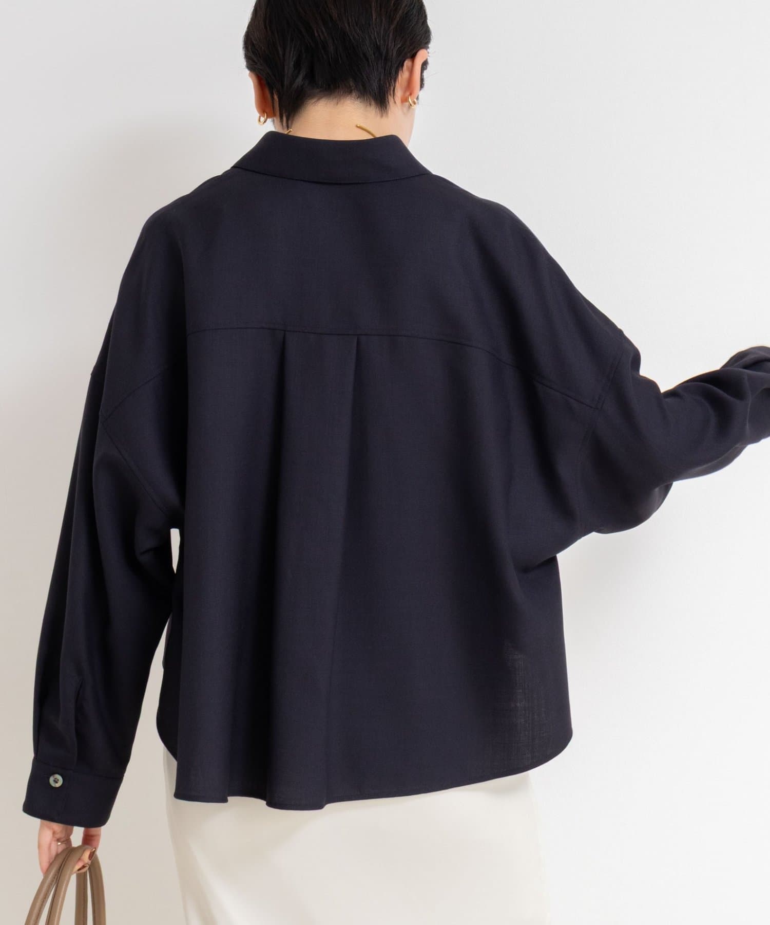 ・前後差とテールの付いたデザインで、ボタンを1~2個開けるだけで、自然な抜け感が出せる一枚