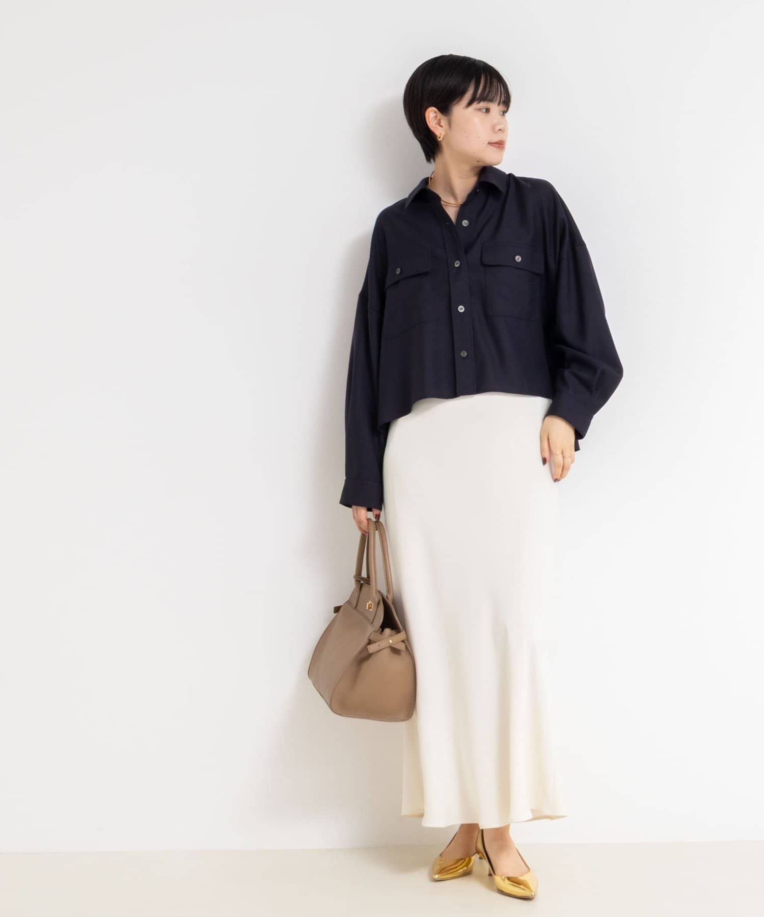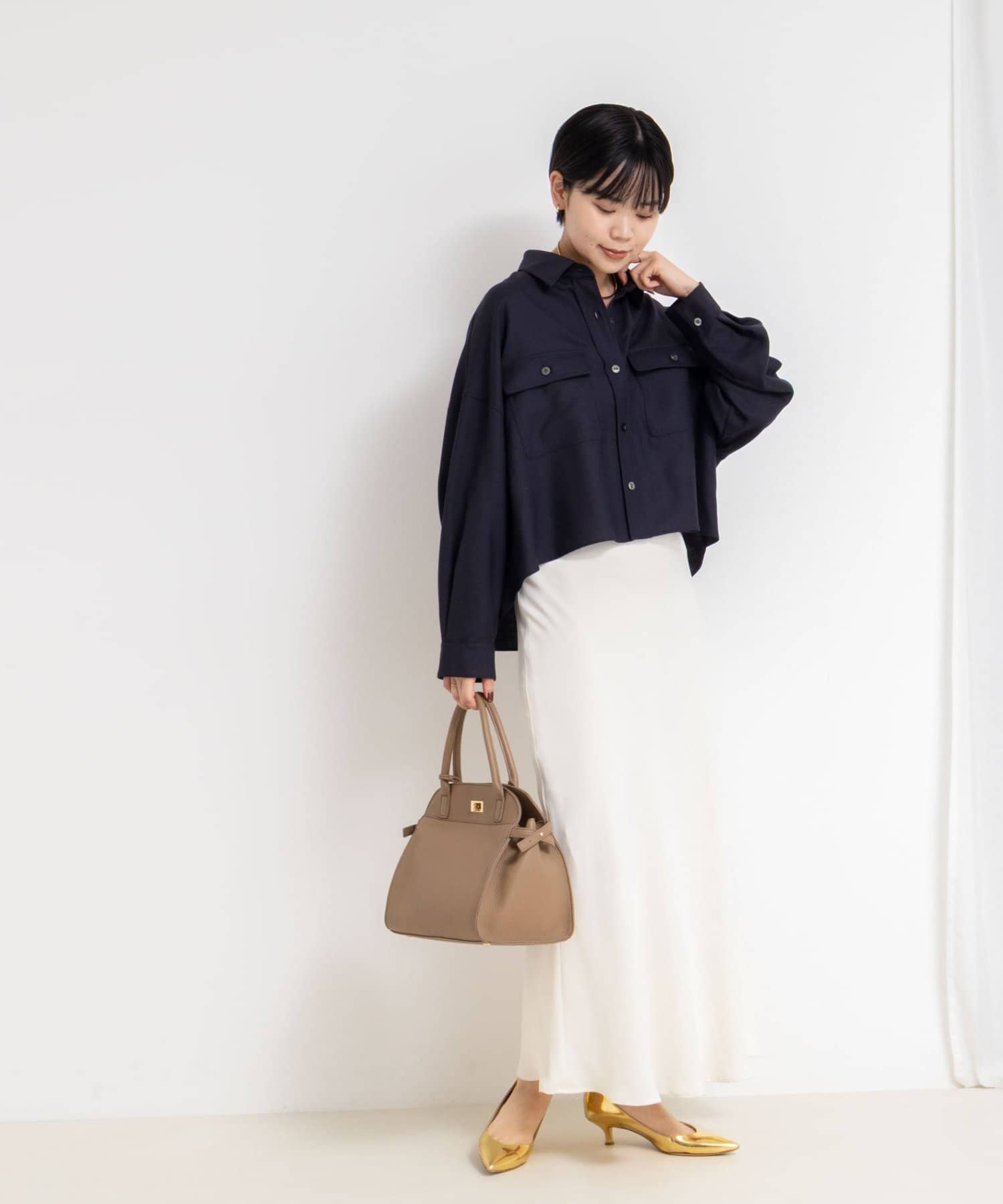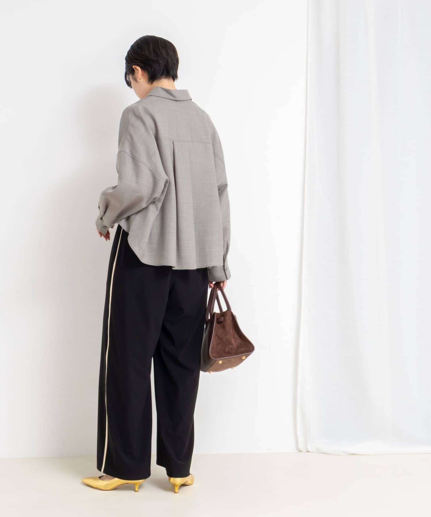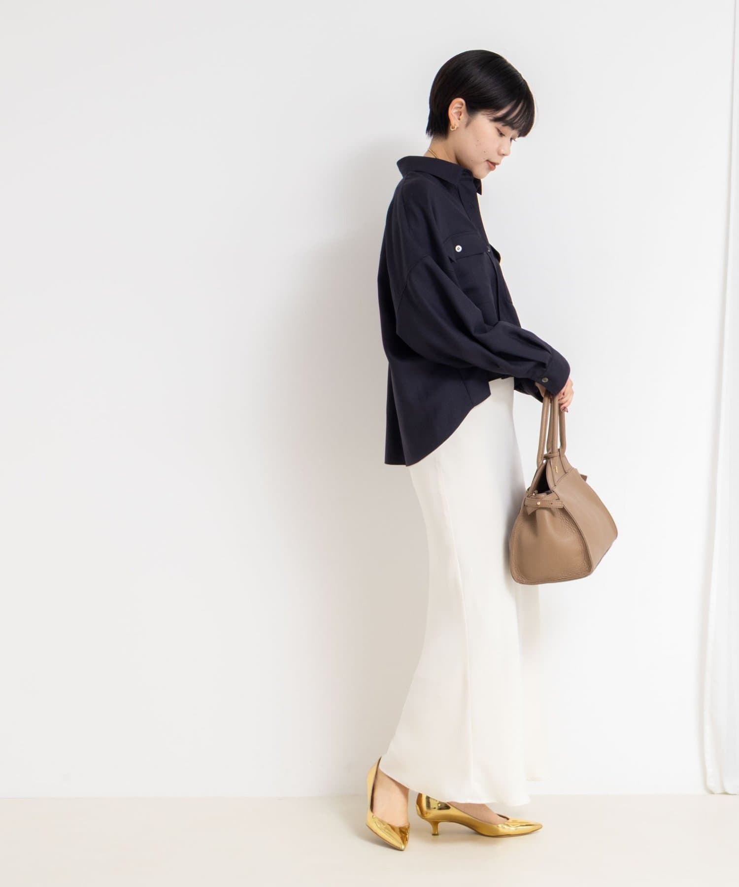 ・前後差とテールの付いたデザインで、ボタンを1~2個開けるだけで、自然な抜け感が出せる一枚
