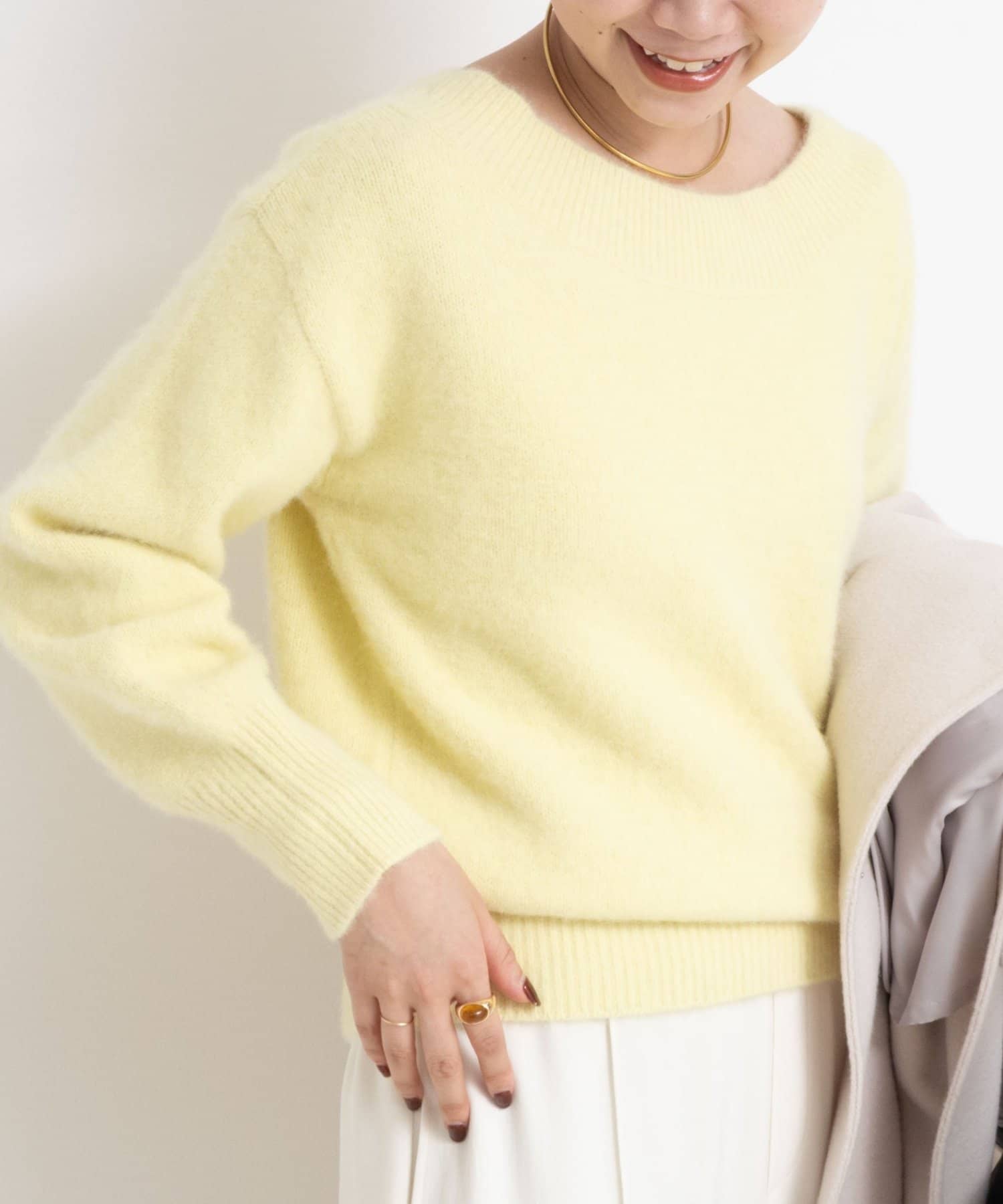 ・浅Vネック、ボートネックの両前で着用できるプルオーバーニット